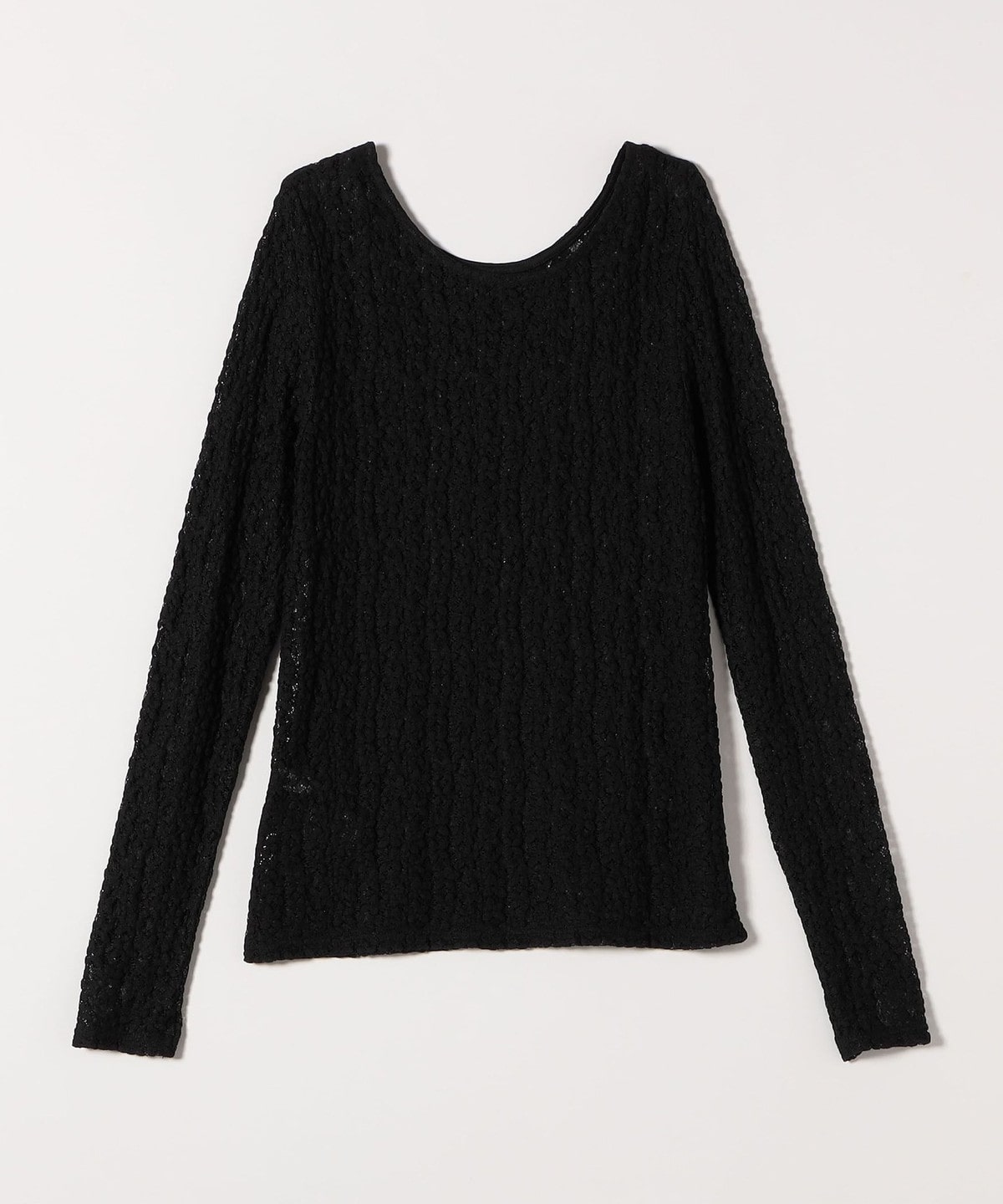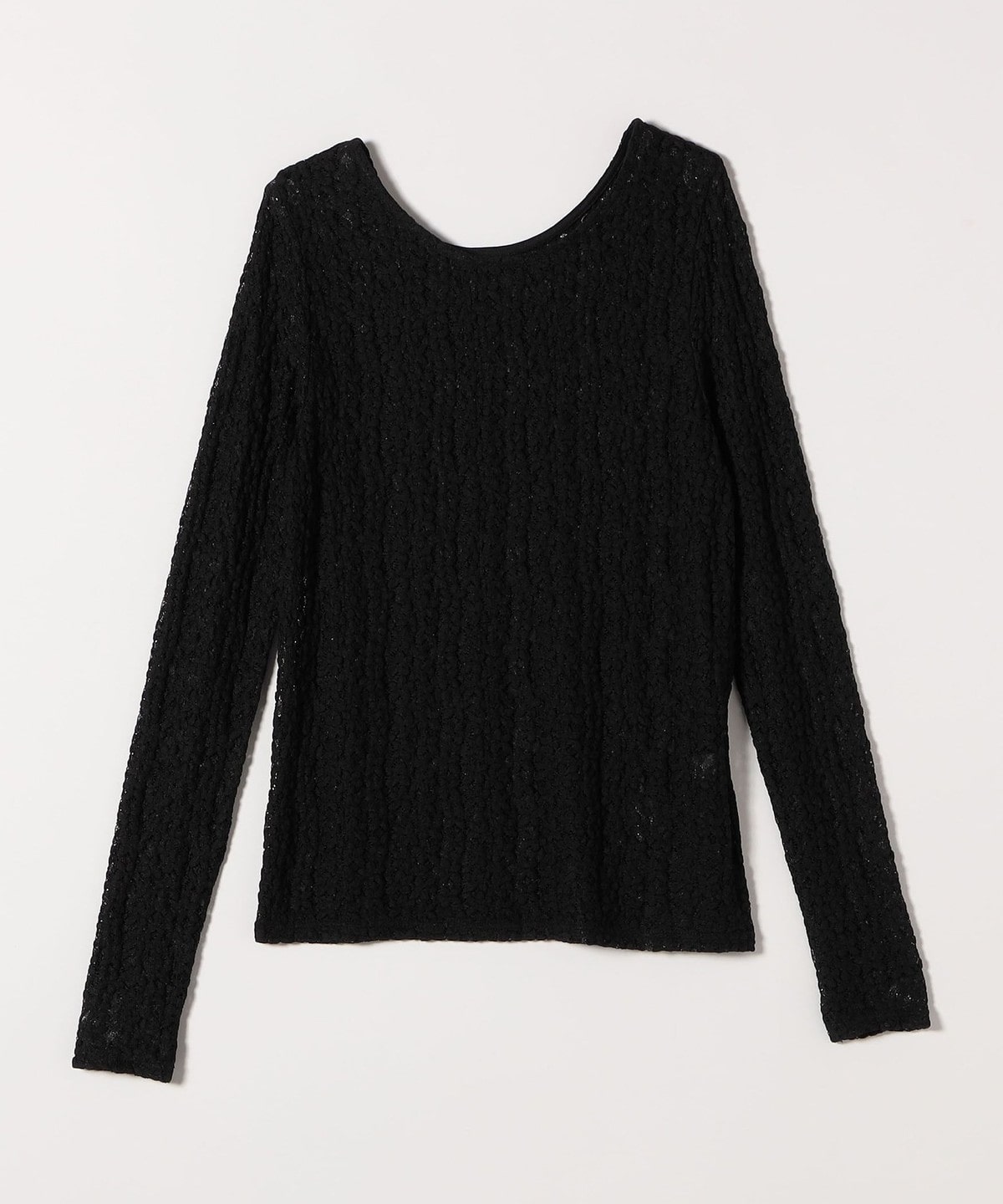 quaranciel:〈手洗い可能〉フラワー レース ストレッチ クルーネック プルオーバー