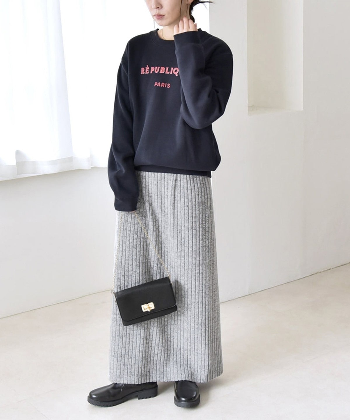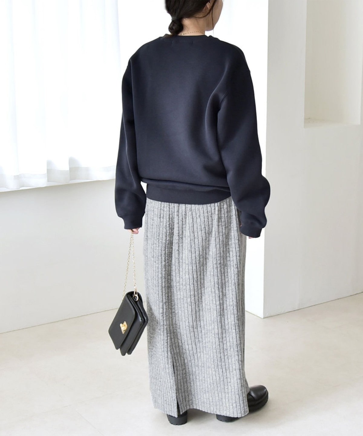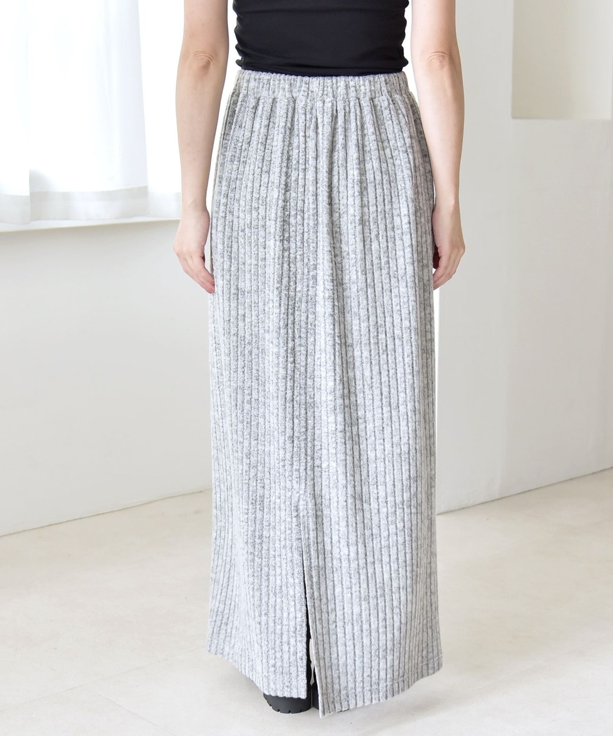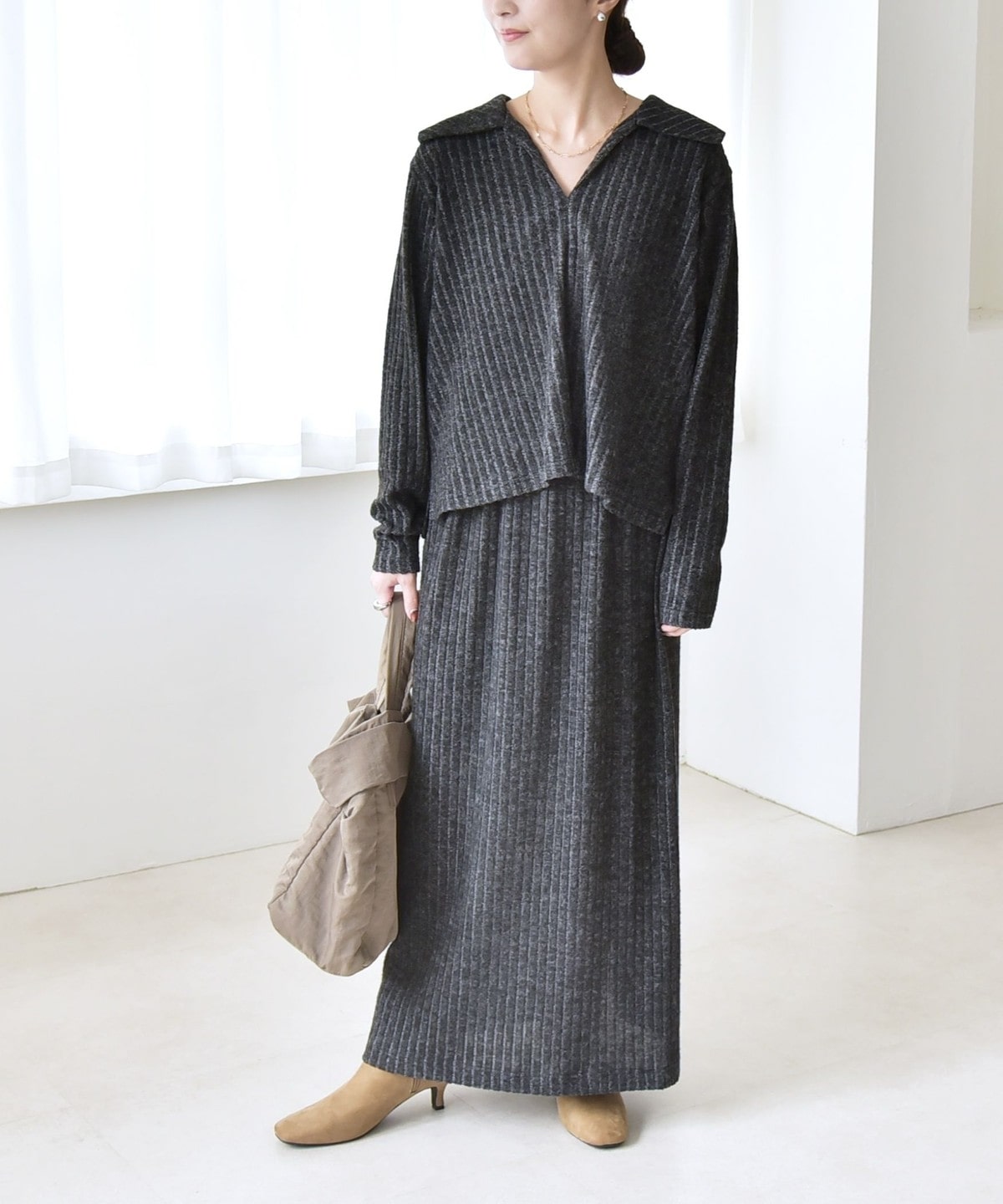 起毛感があり、柔らかく着心地の良いリブニット素材のトップス×スカートセットアップ。