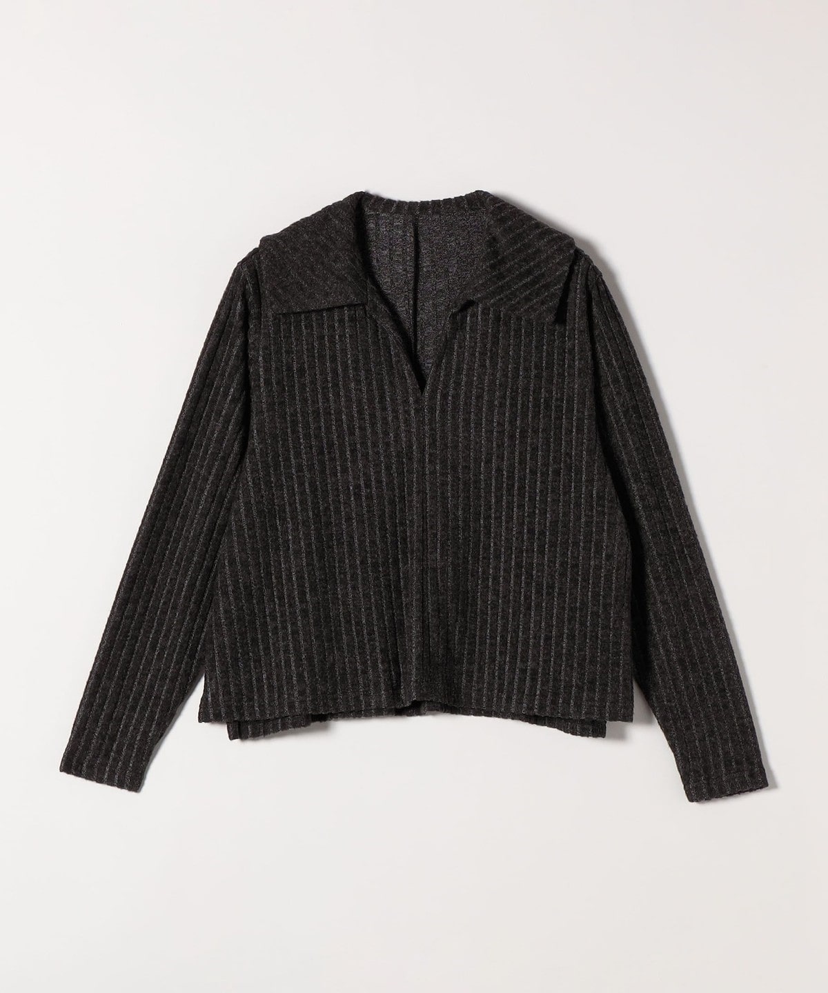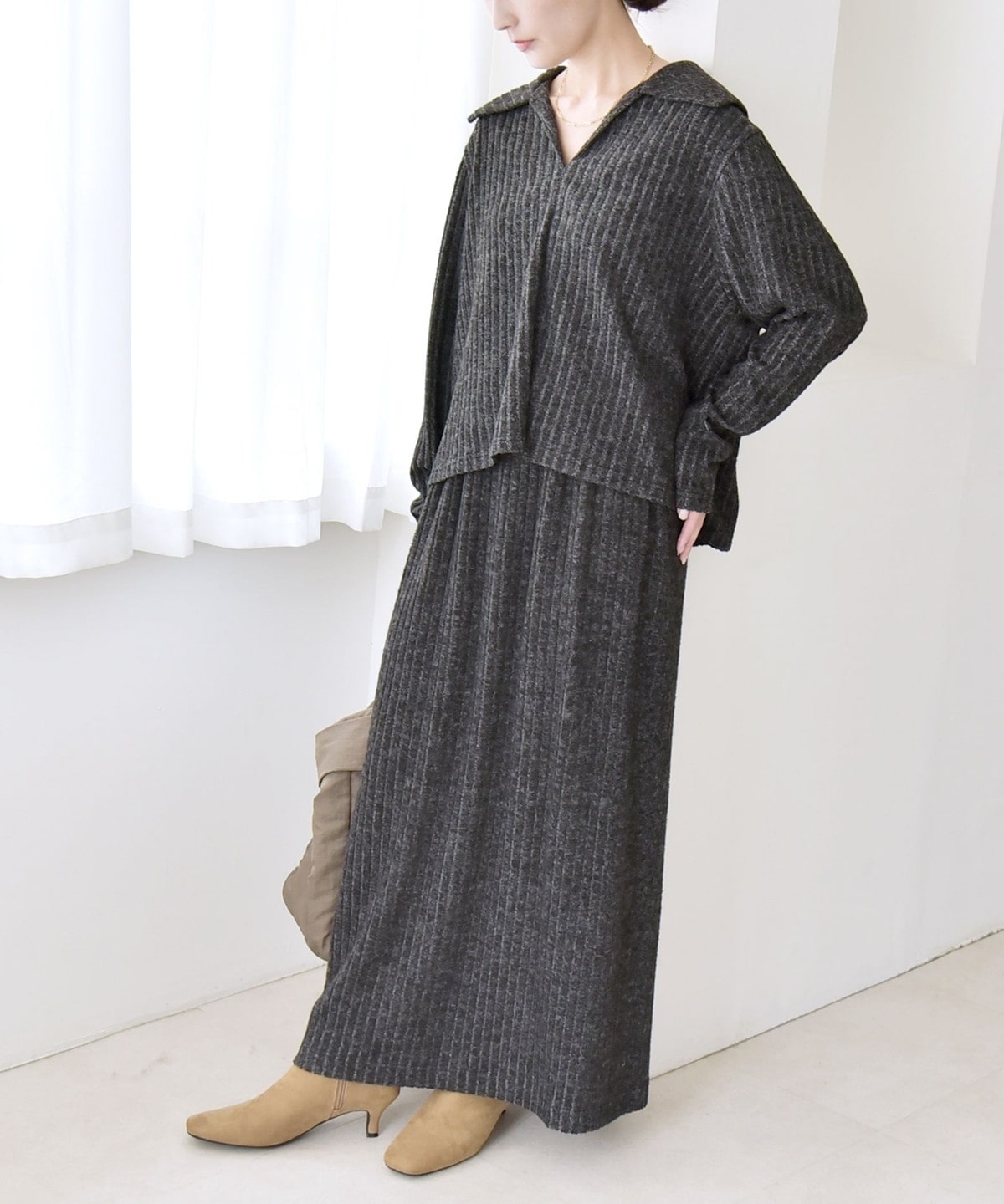 2. quaranciel:〈手洗い可能〉リブニット ポロ プルオーバー  & スカート セットアップ チャコールグレー