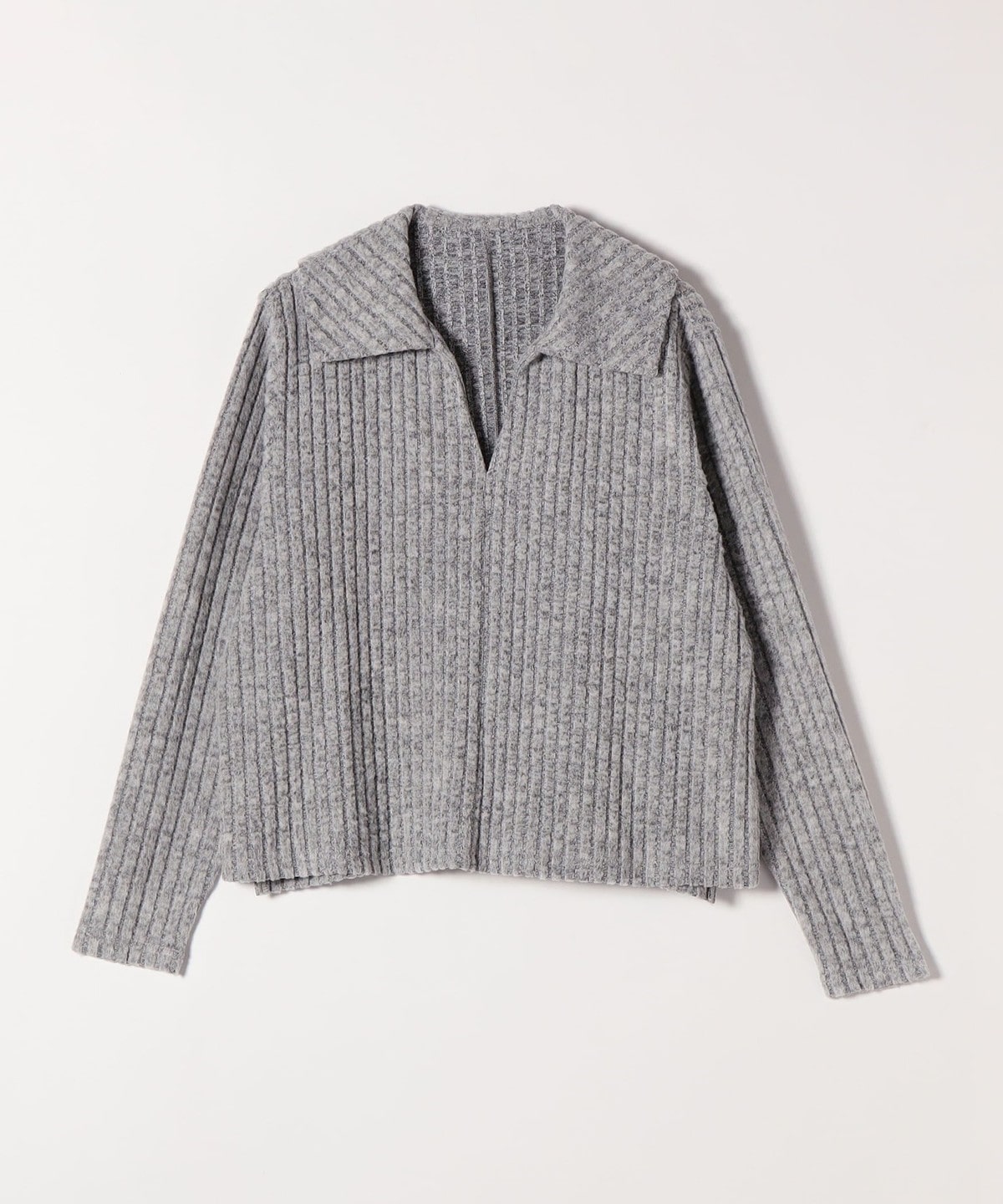 1. quaranciel:〈手洗い可能〉リブニット ポロ プルオーバー  & スカート セットアップ ライトグレー