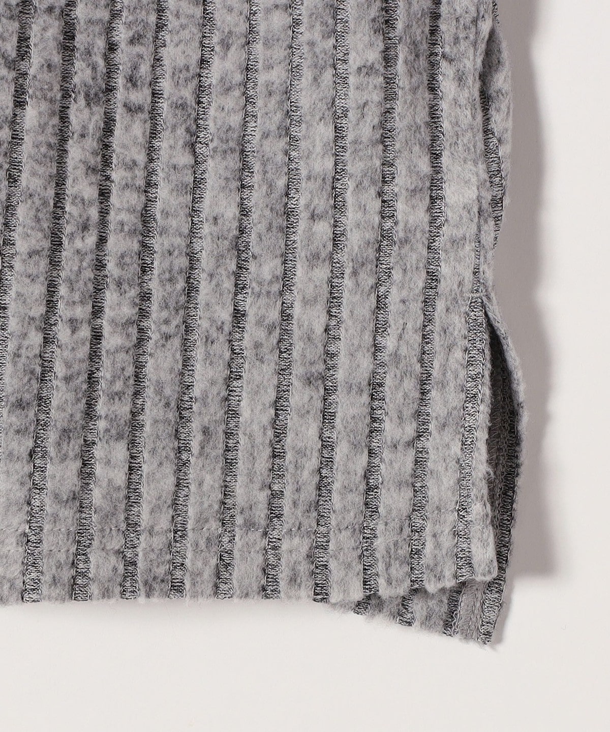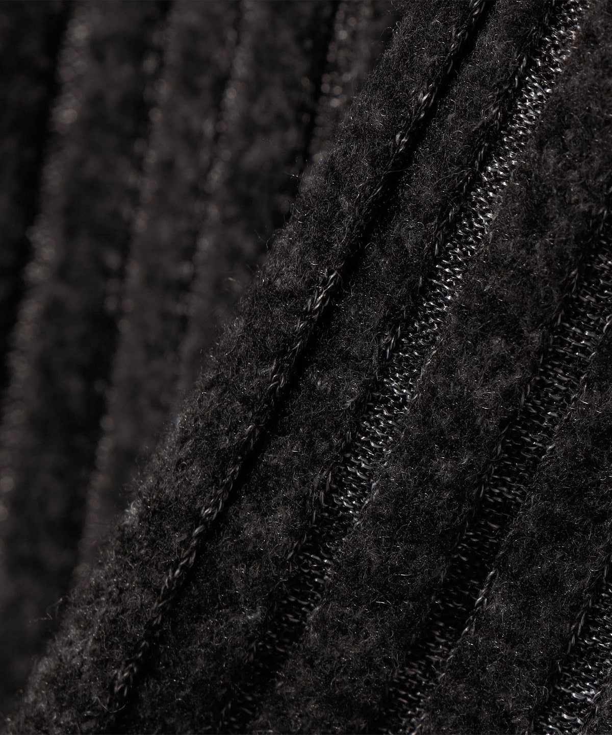 太めのリブ編みが縦のラインを強調し、すっきりときれいなシルエットに見せてくれます。