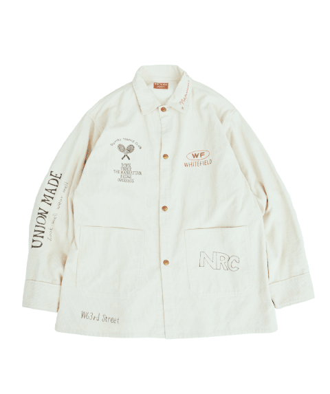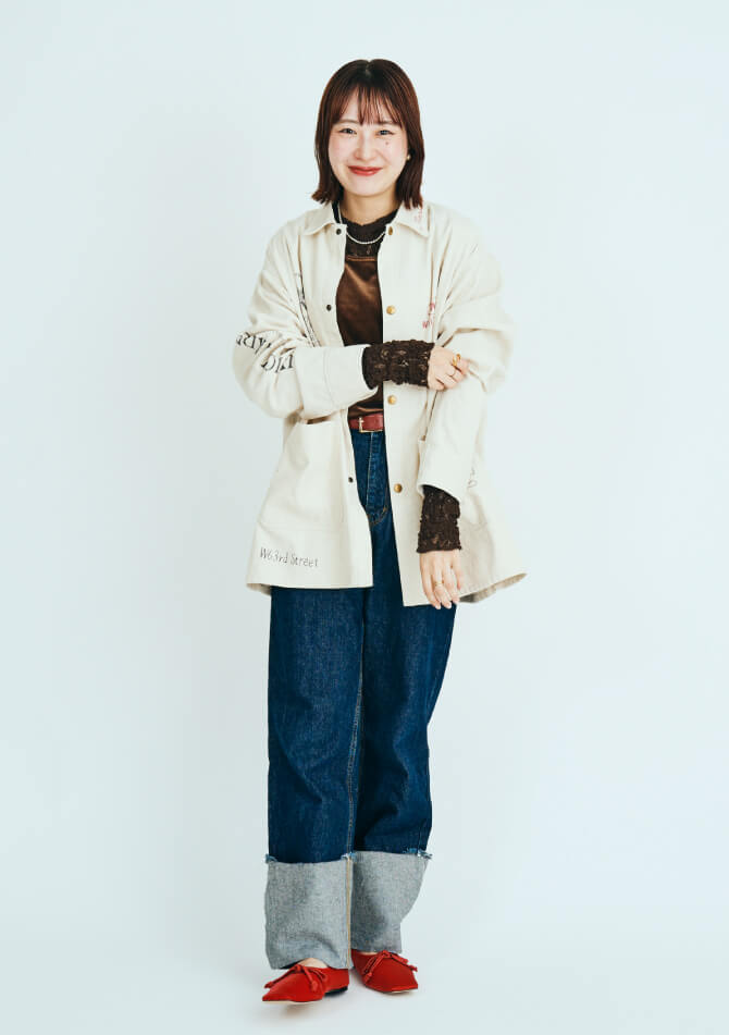 全体に配した総柄プリントは、SHIPS 50周年のミューズ、女優ダイアン・キートンの代表作『アニー・ホール』から着想したフレーズとイラストを散りばめた特別なもの。物語をまとうように着こなしを楽しめるメモリアルピースです。