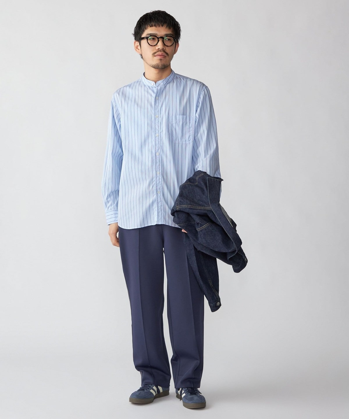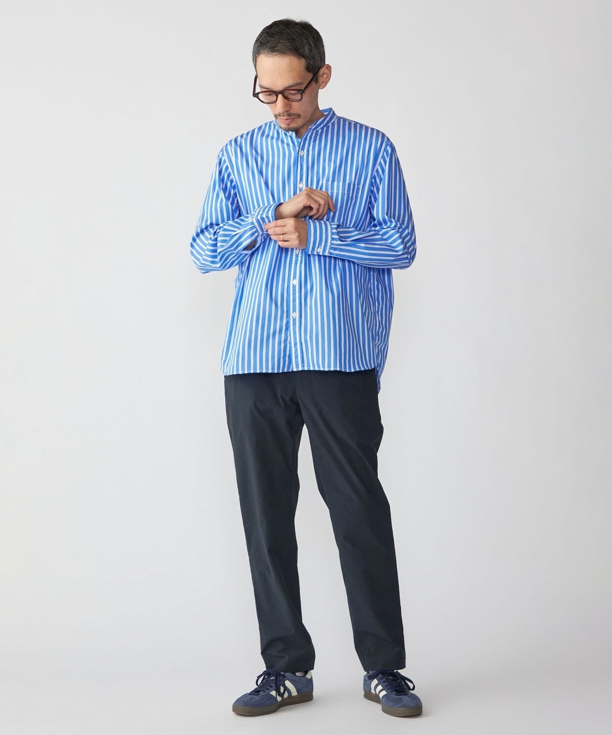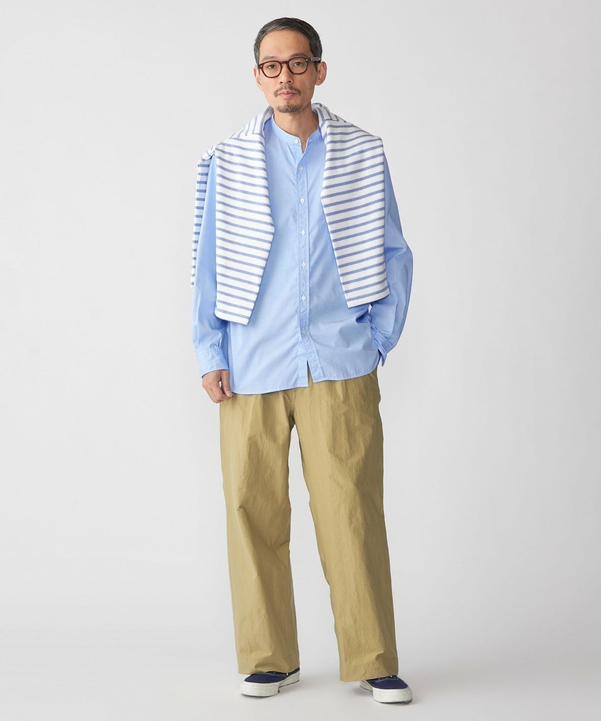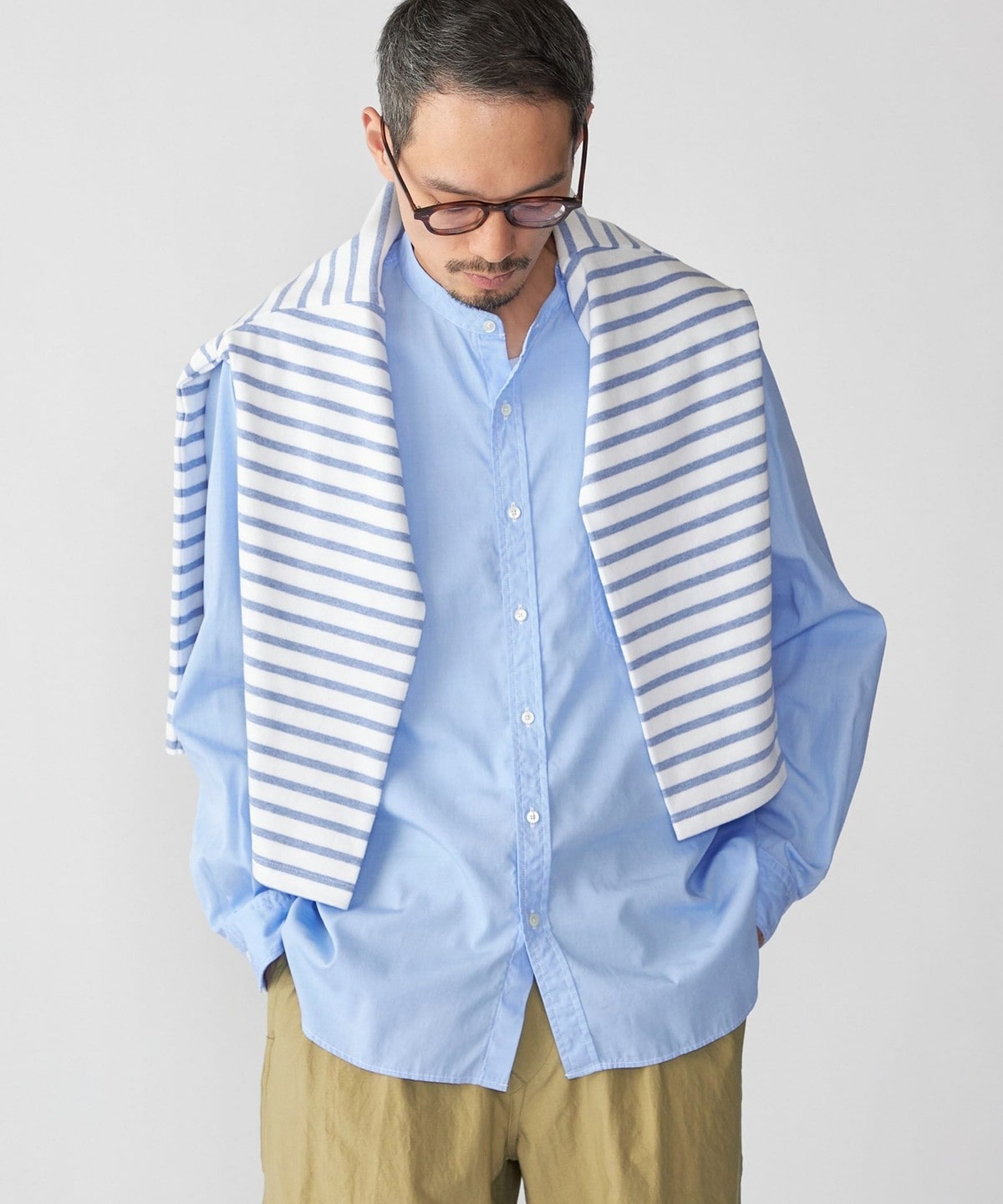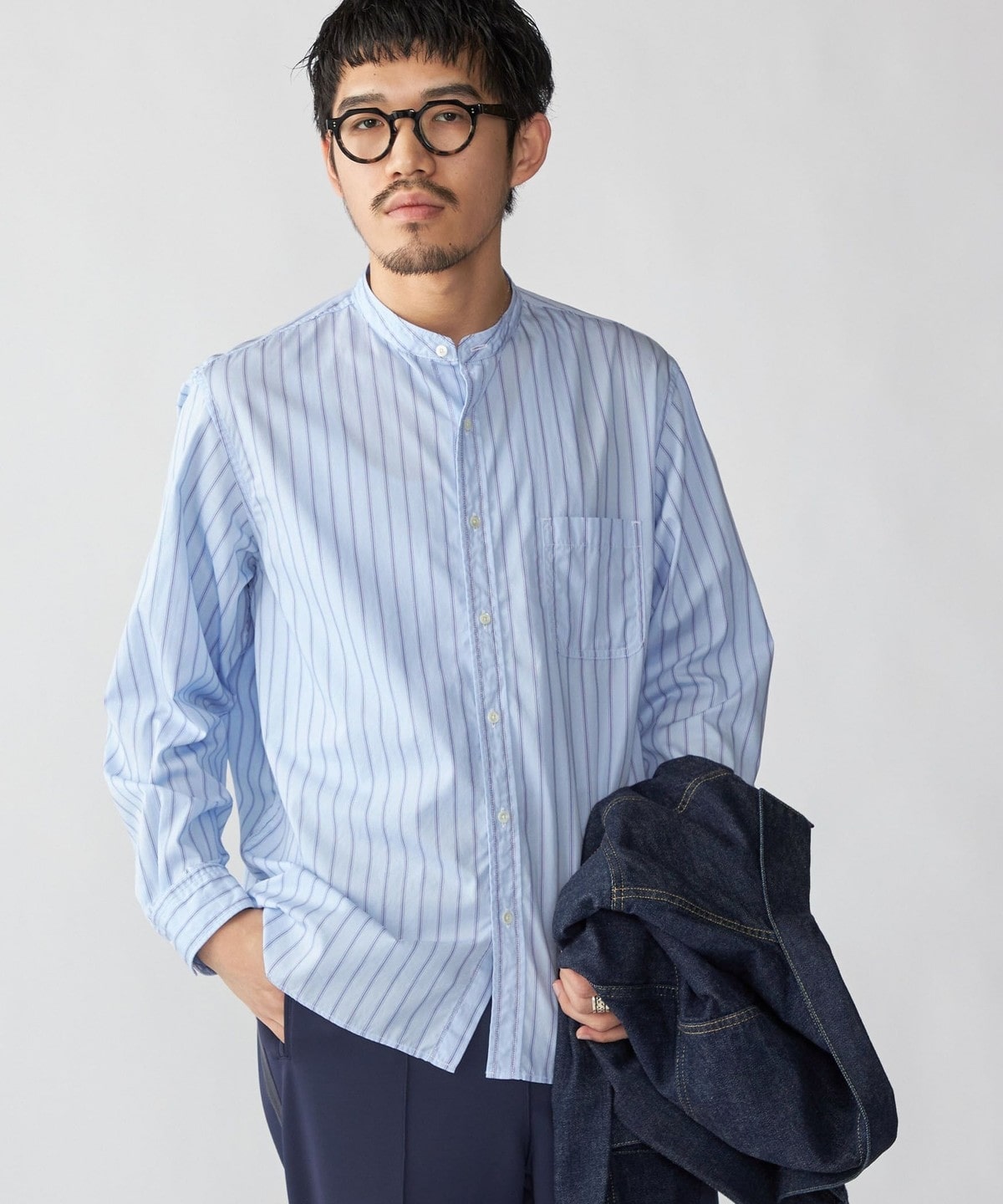 春夏の始まりを感じさせる爽やかなバンドカラーシャツ