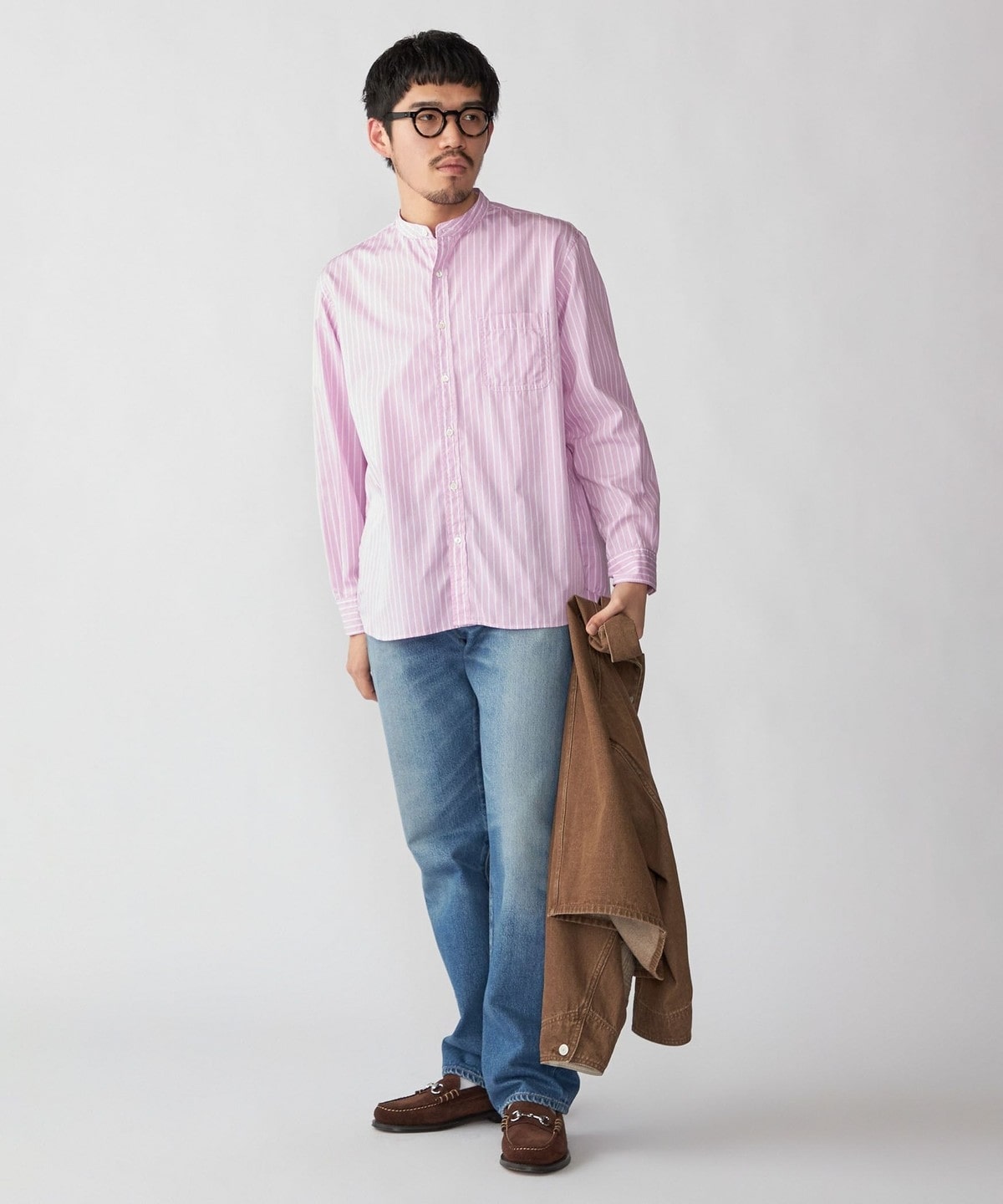 SHIPS: バンドカラー ブロード シャツ ロングスリーブ