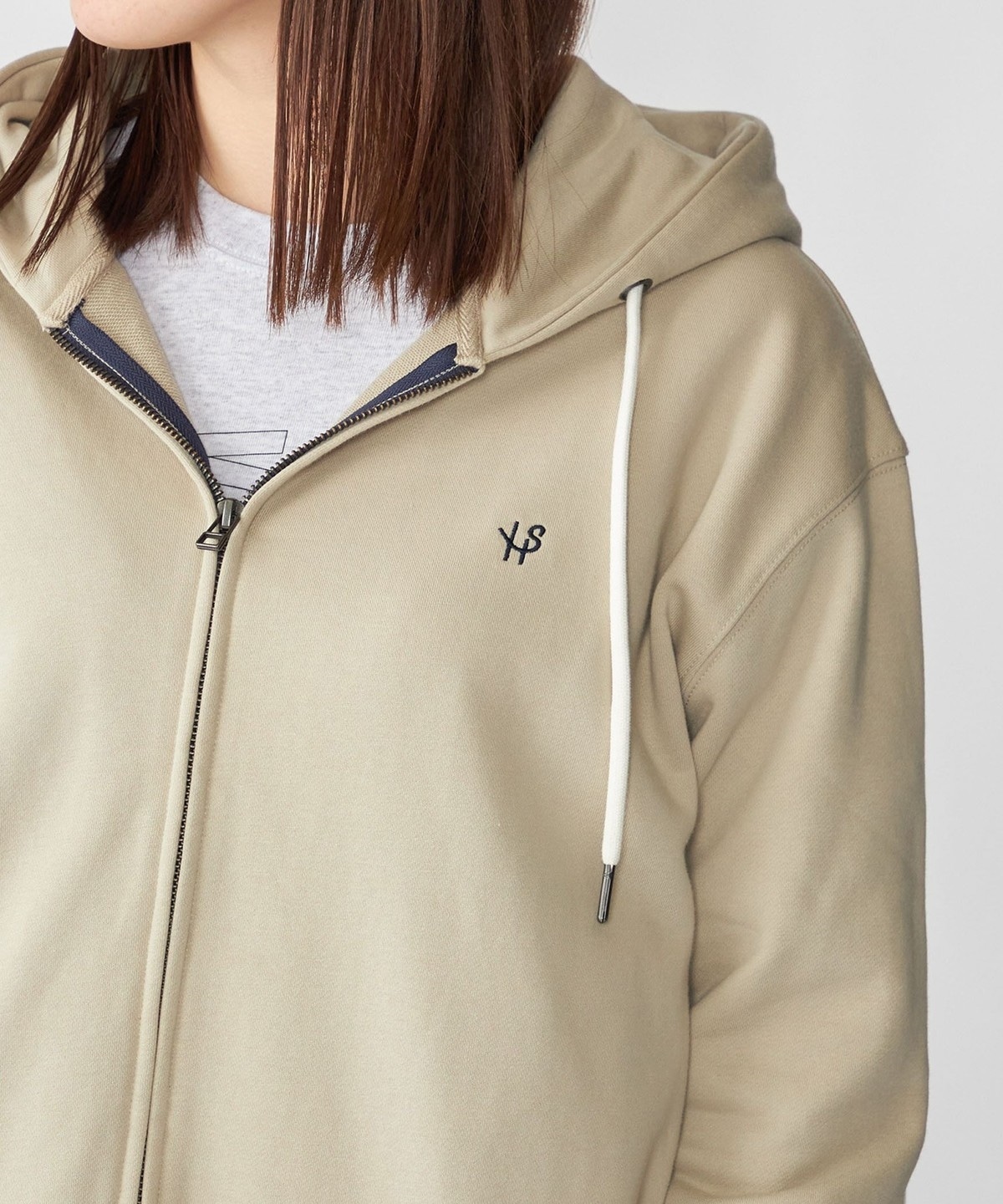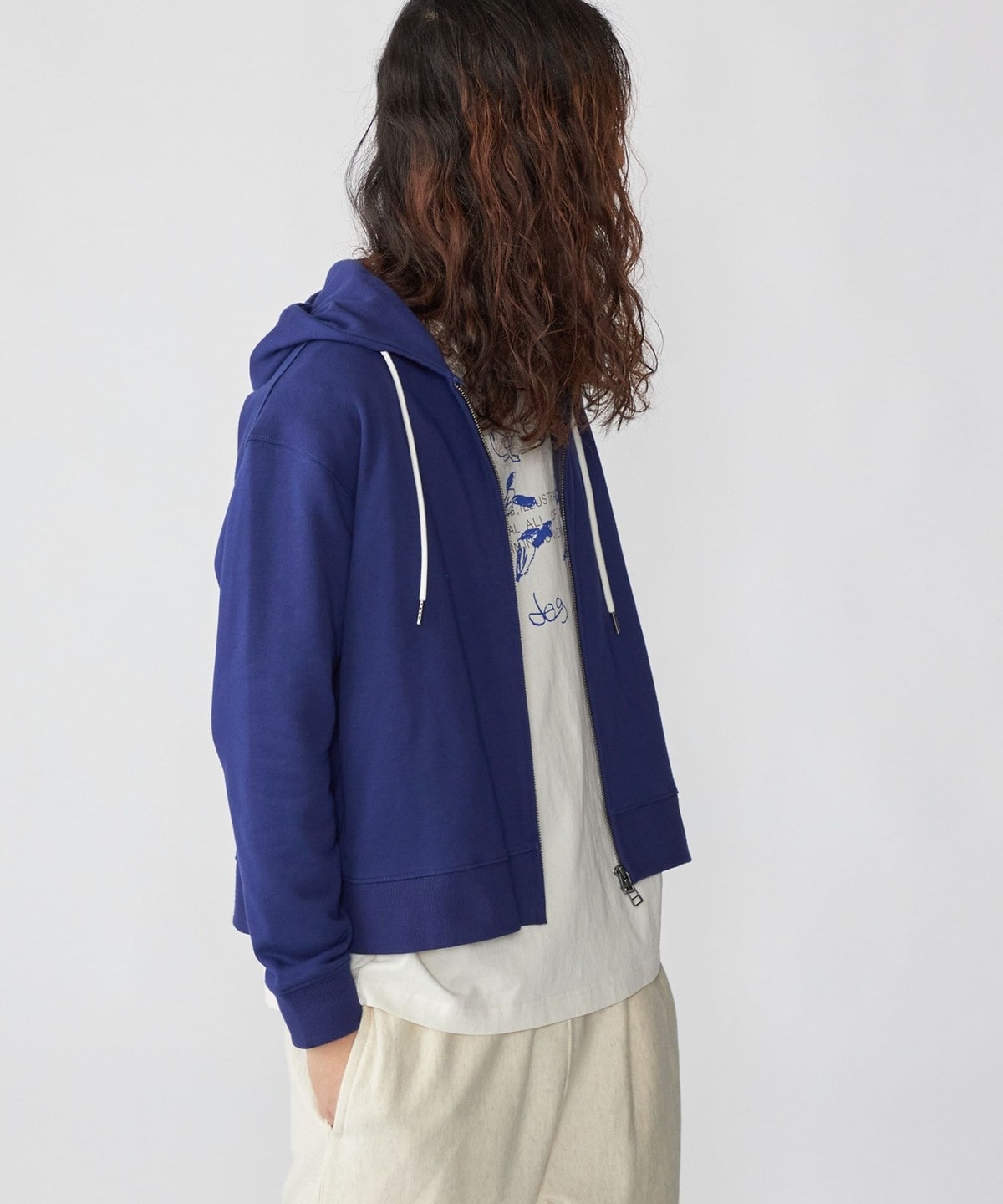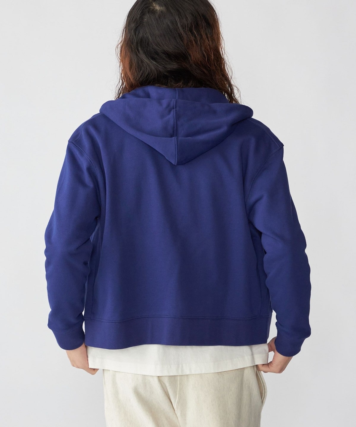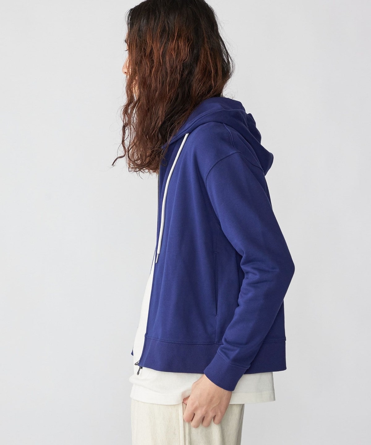 体にフィットする大きすぎないシルエットで仕上げたジップフーディー。