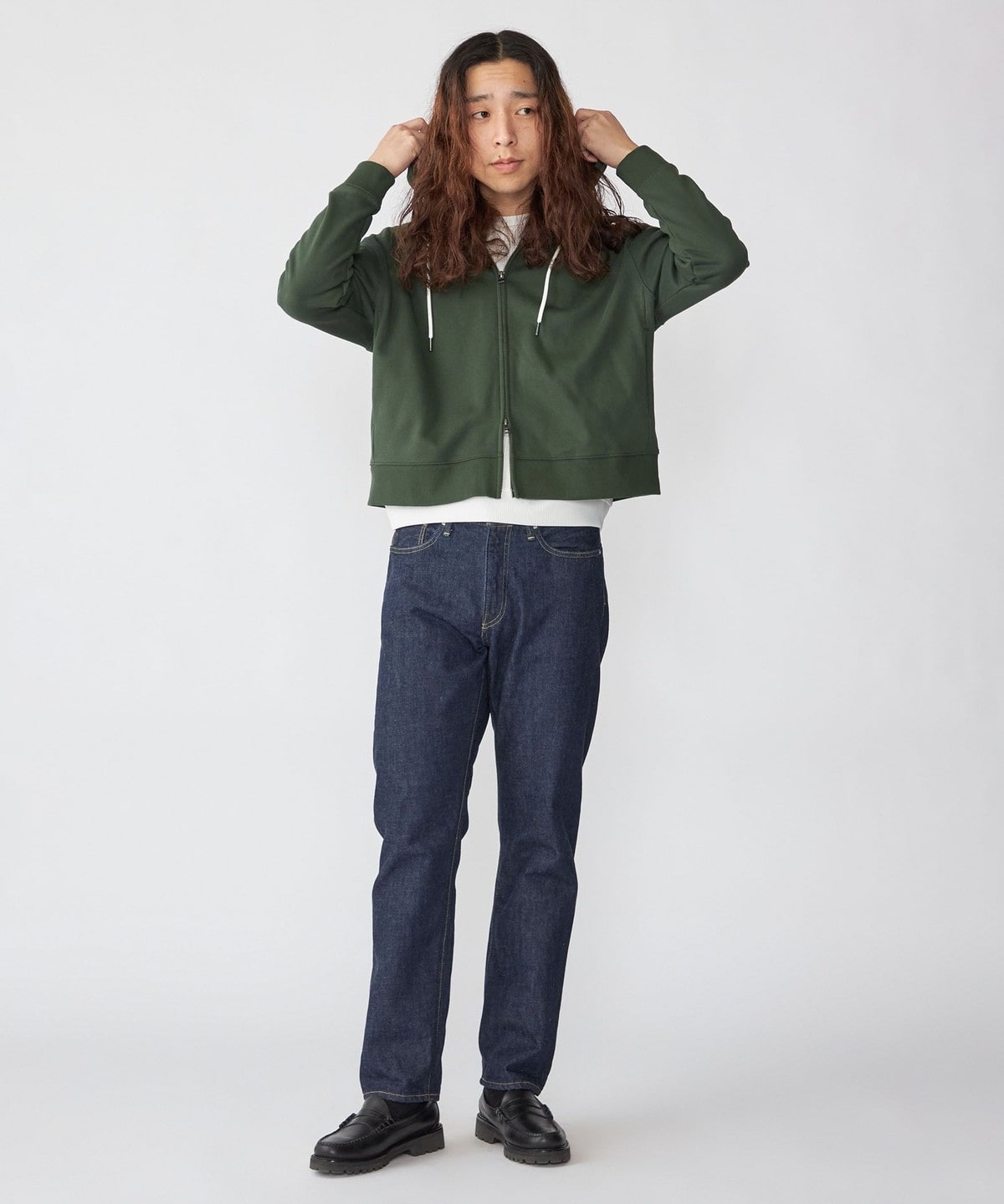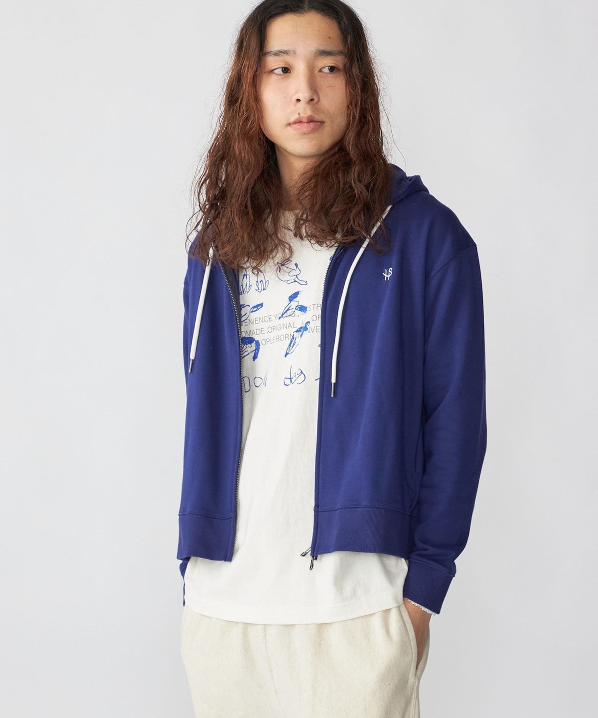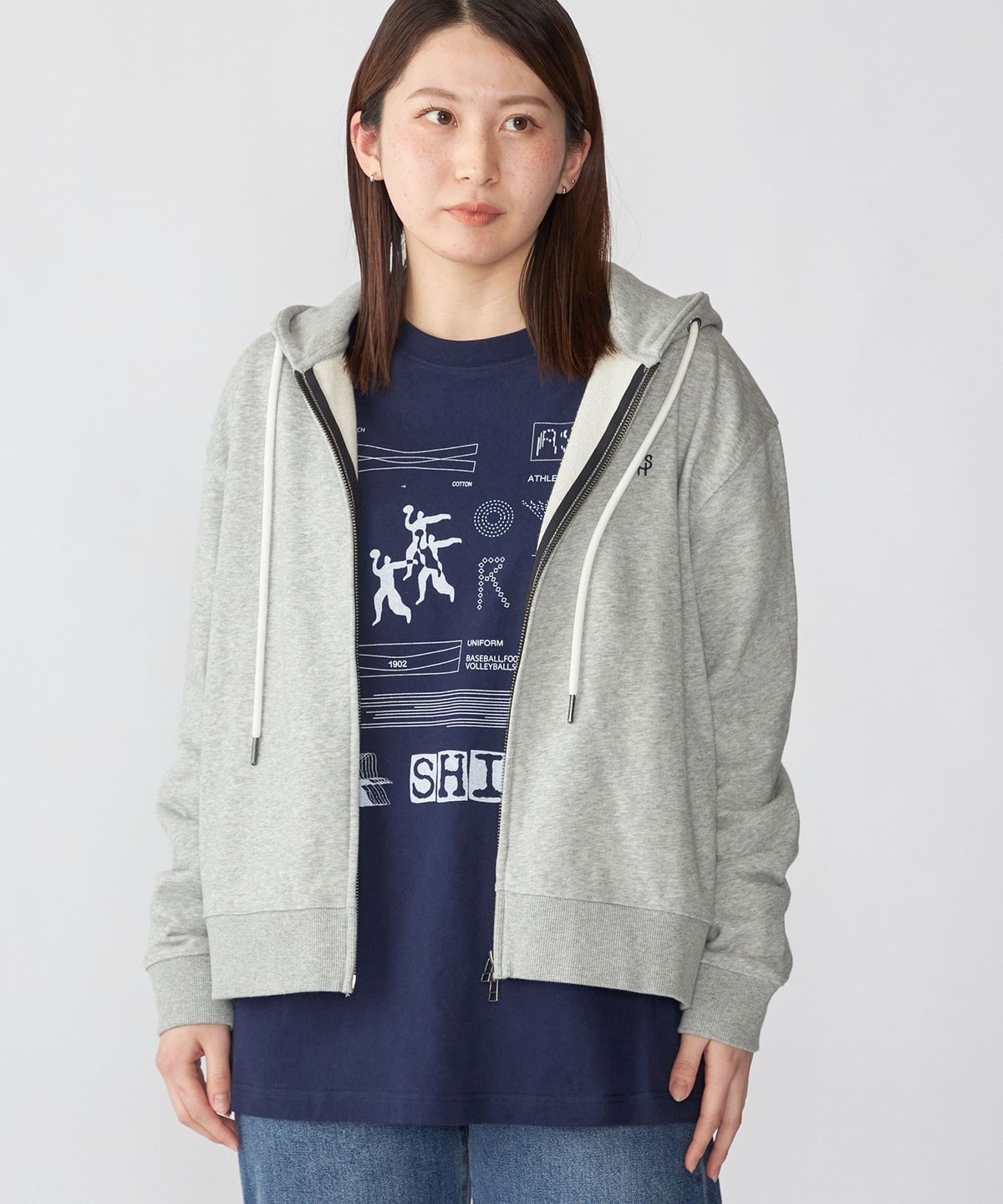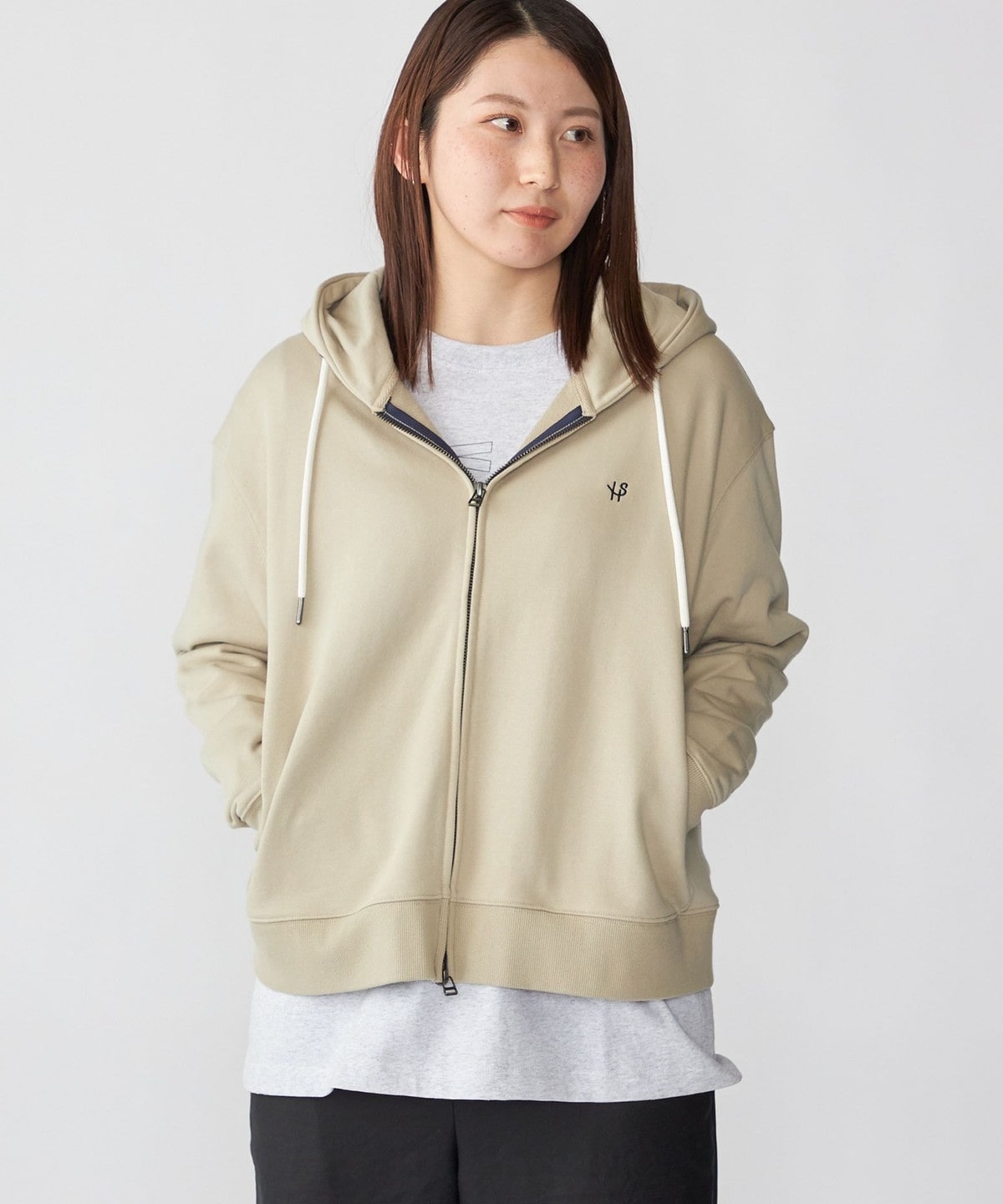 体にフィットする大きすぎないシルエットで仕上げたジップフーディー。