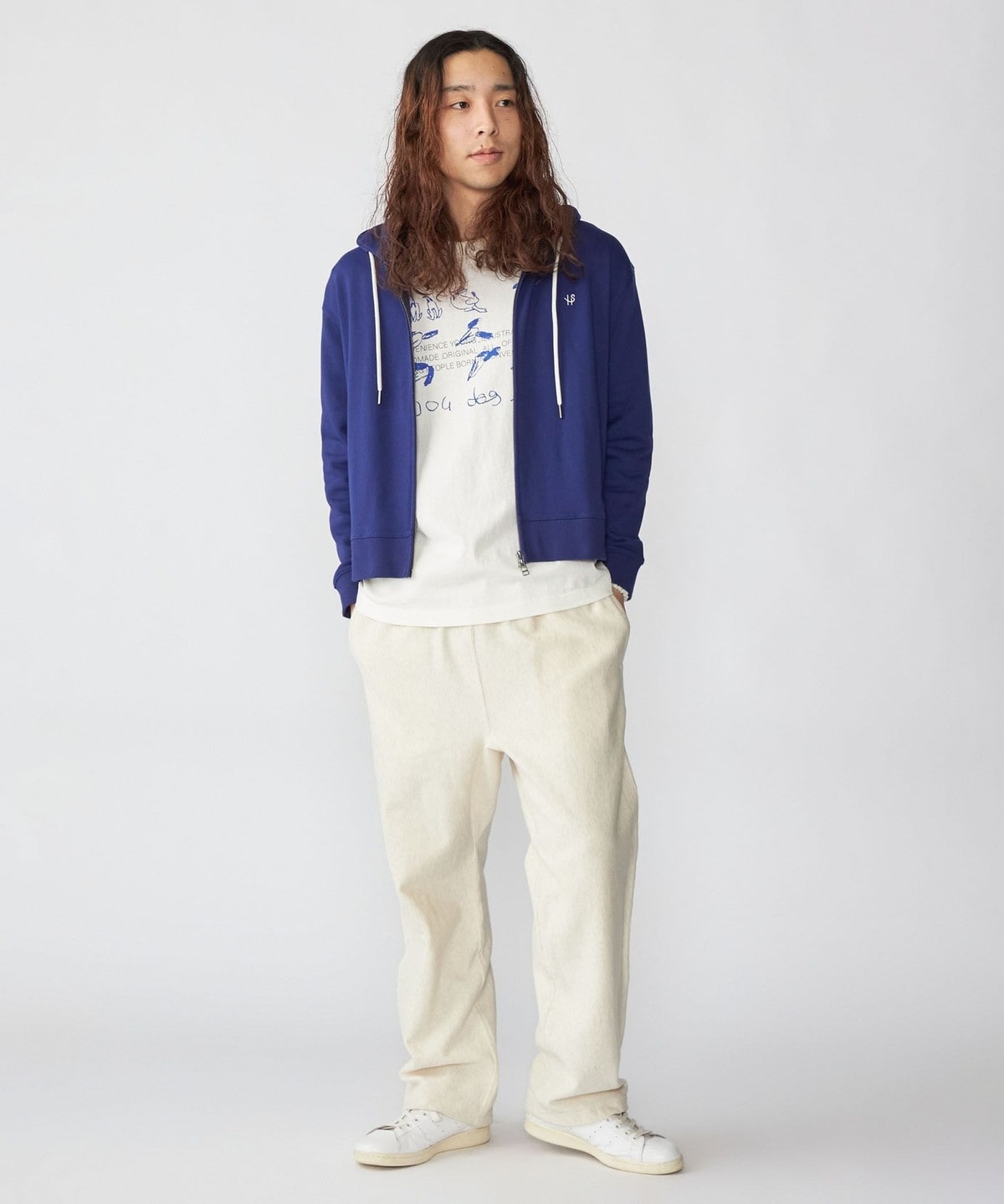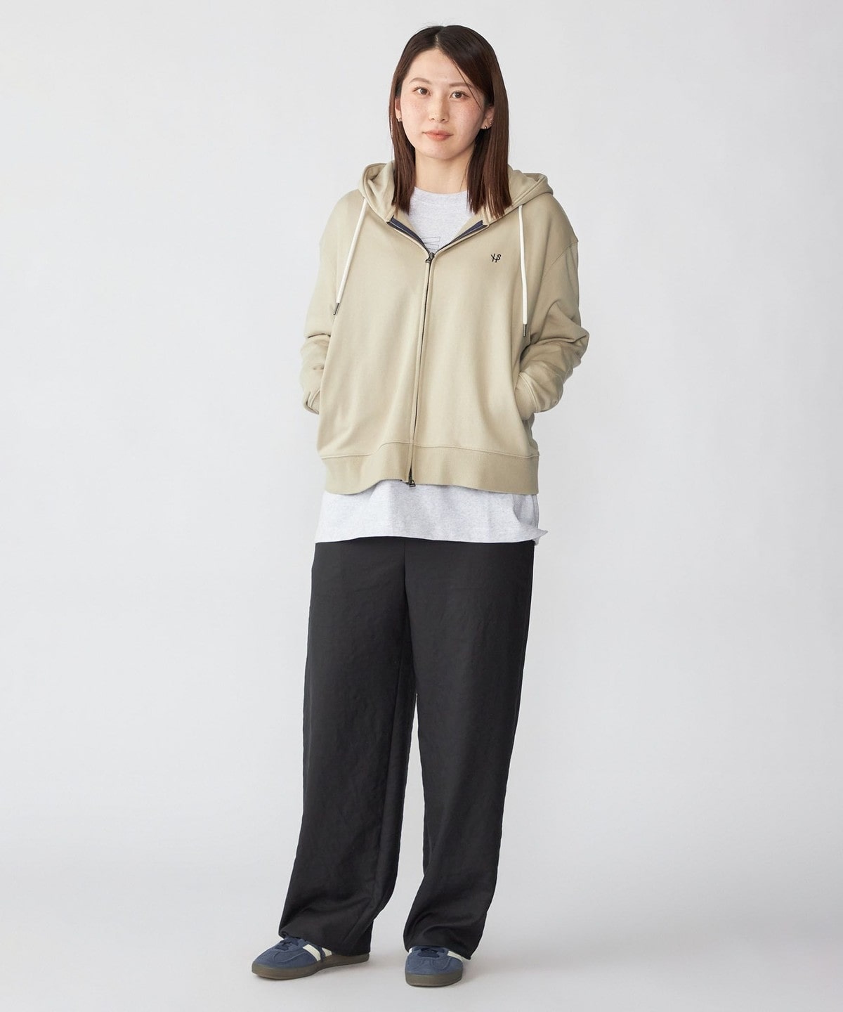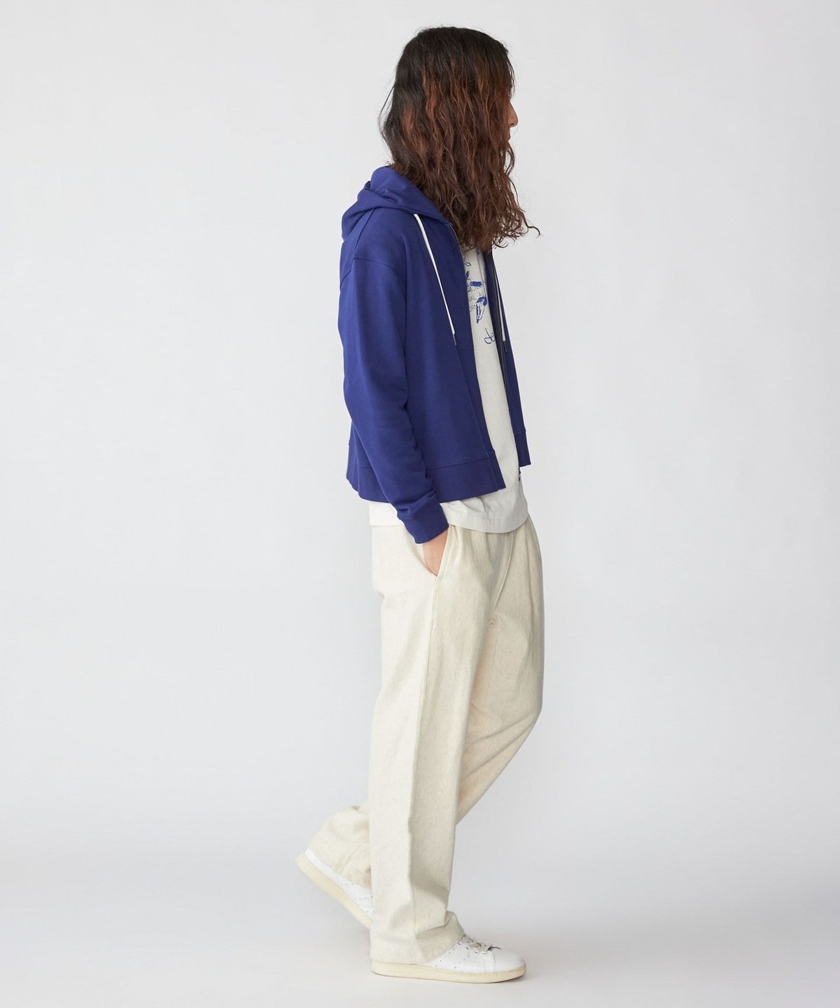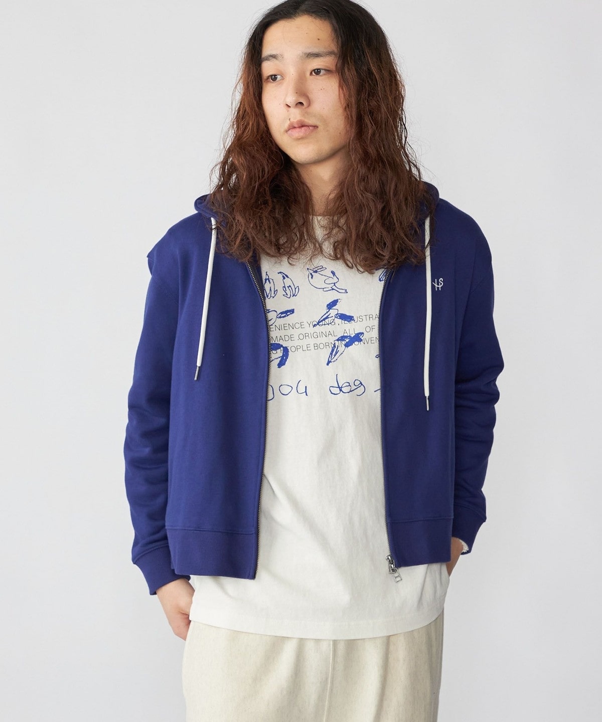 体にフィットする大きすぎないシルエットで仕上げたジップフーディー。