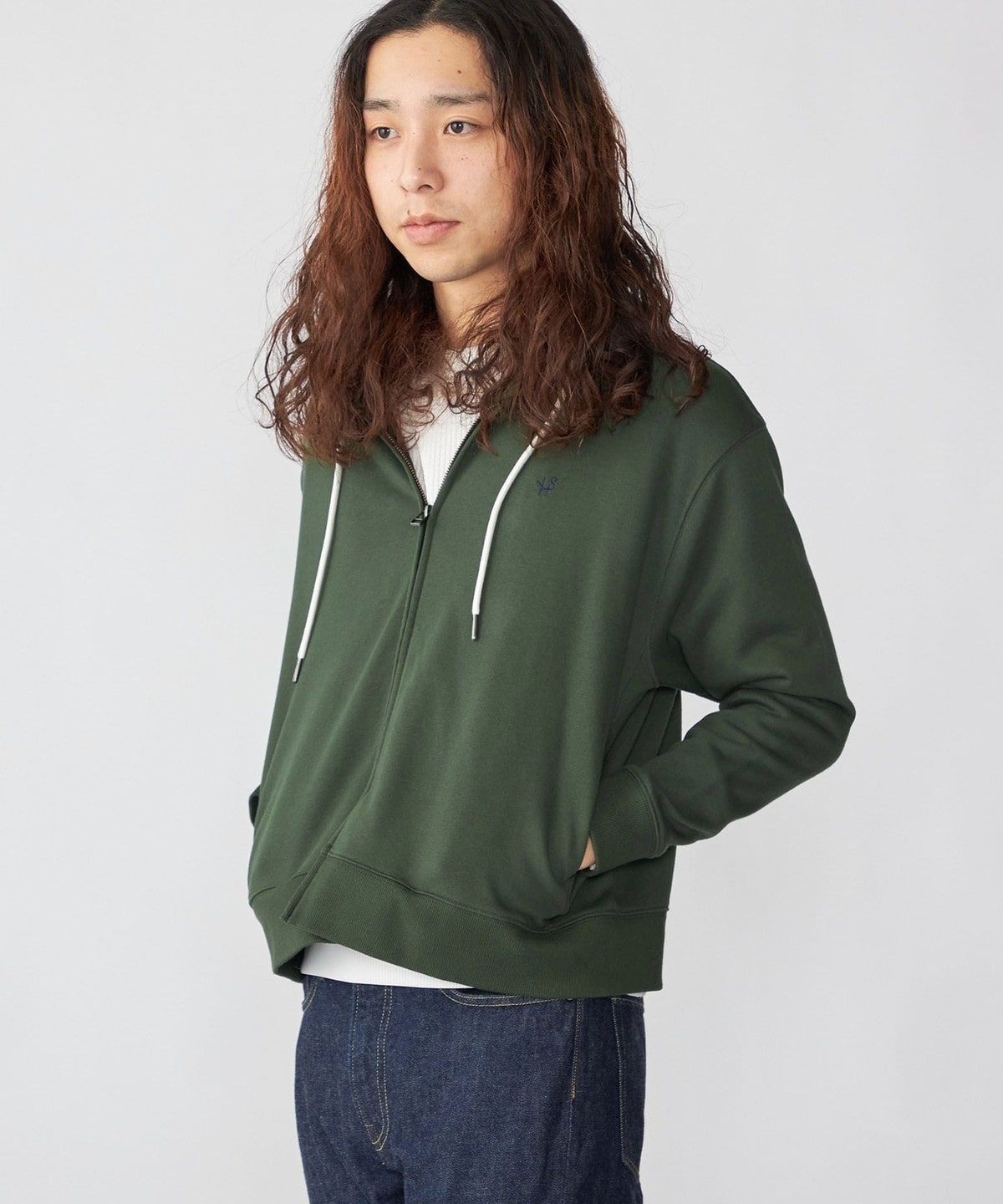 【WEB限定】SHIPS: クロップド ワイド ワンポイント ロゴ ジップアップ フーディー