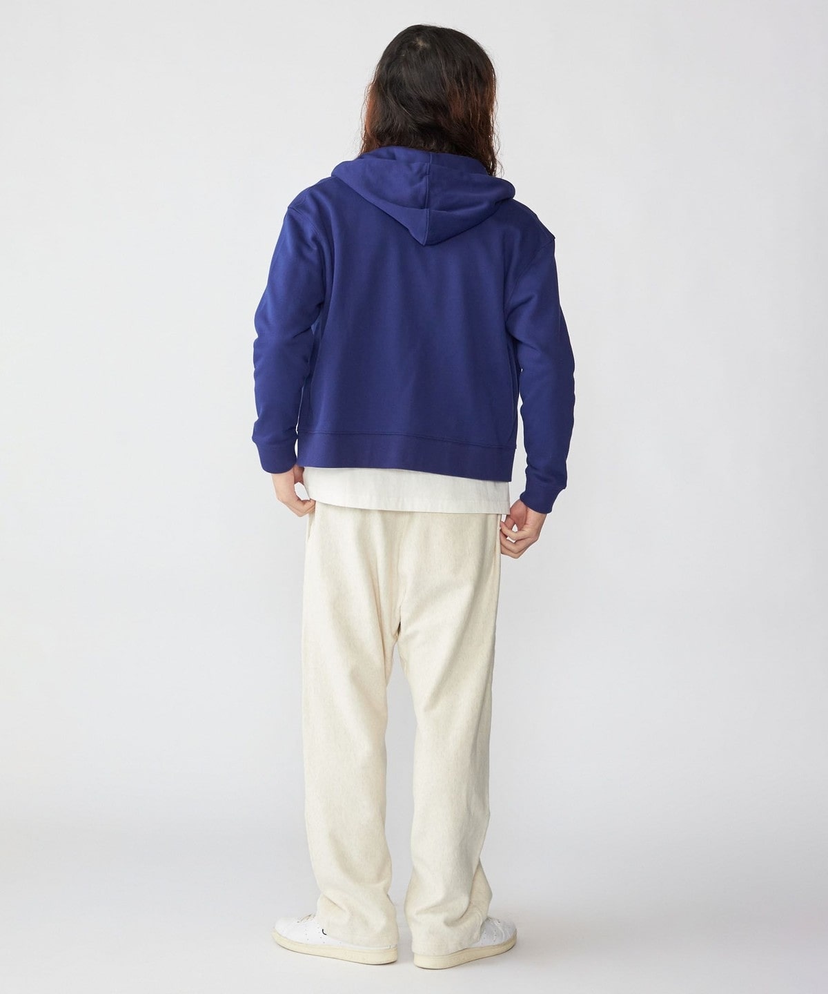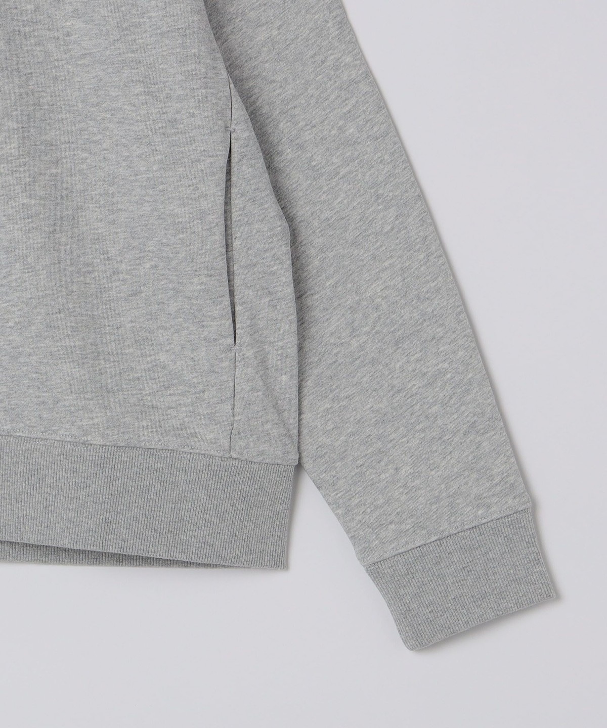 パーカの特徴である、フロント部分にあるポケットはサイドに変更。シームポケット仕様になっており、すっきりとした印象を与えます。