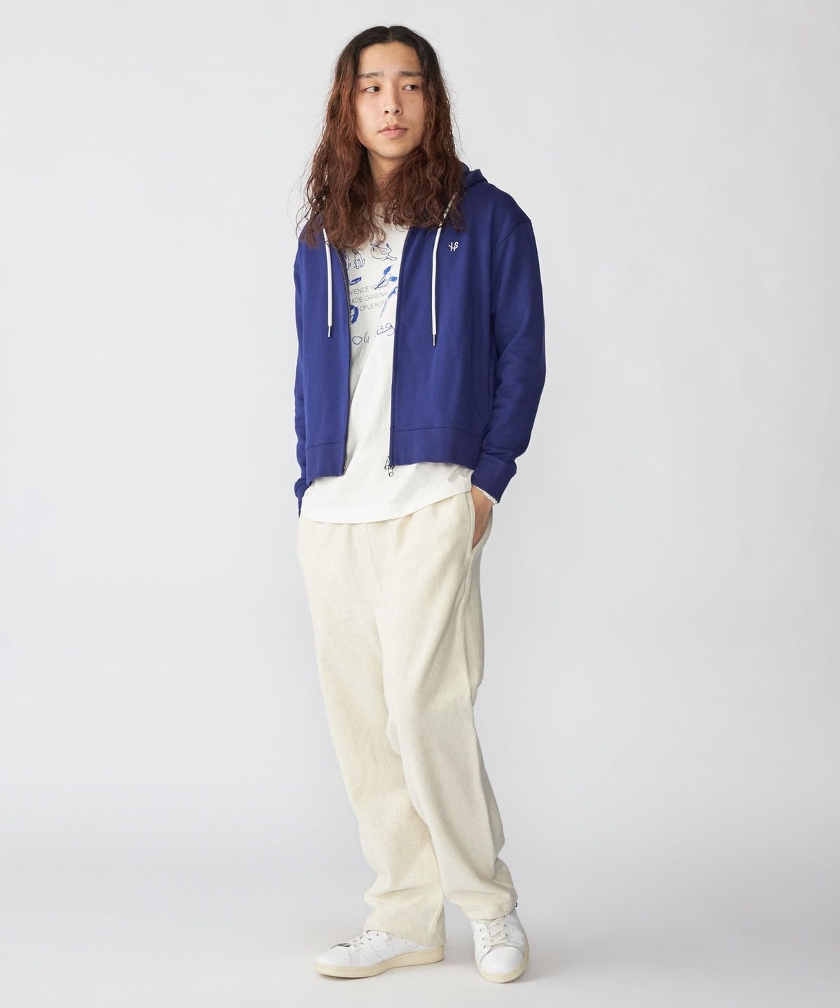 さりげない刺繍ロゴがポイントのジップフーディー