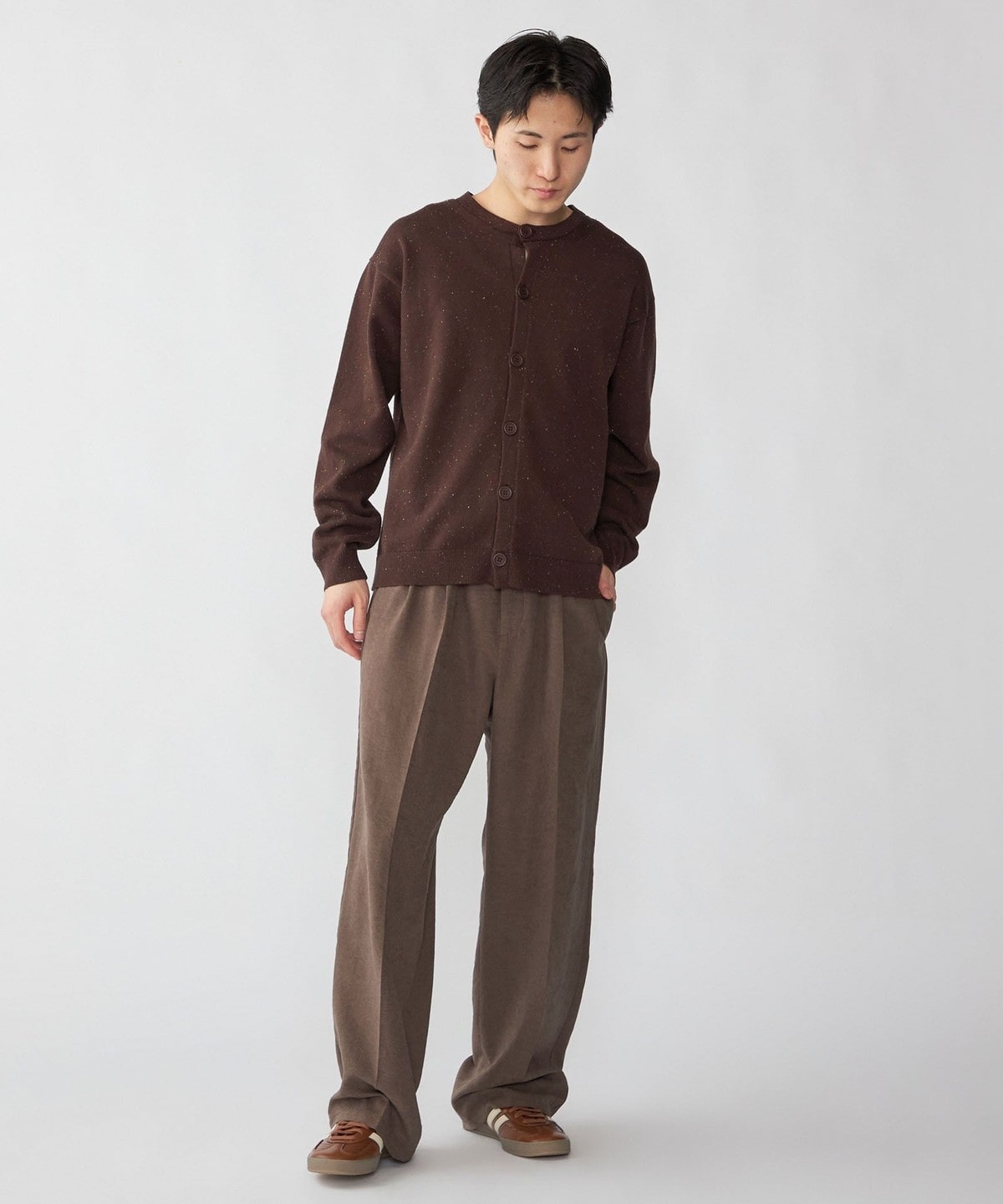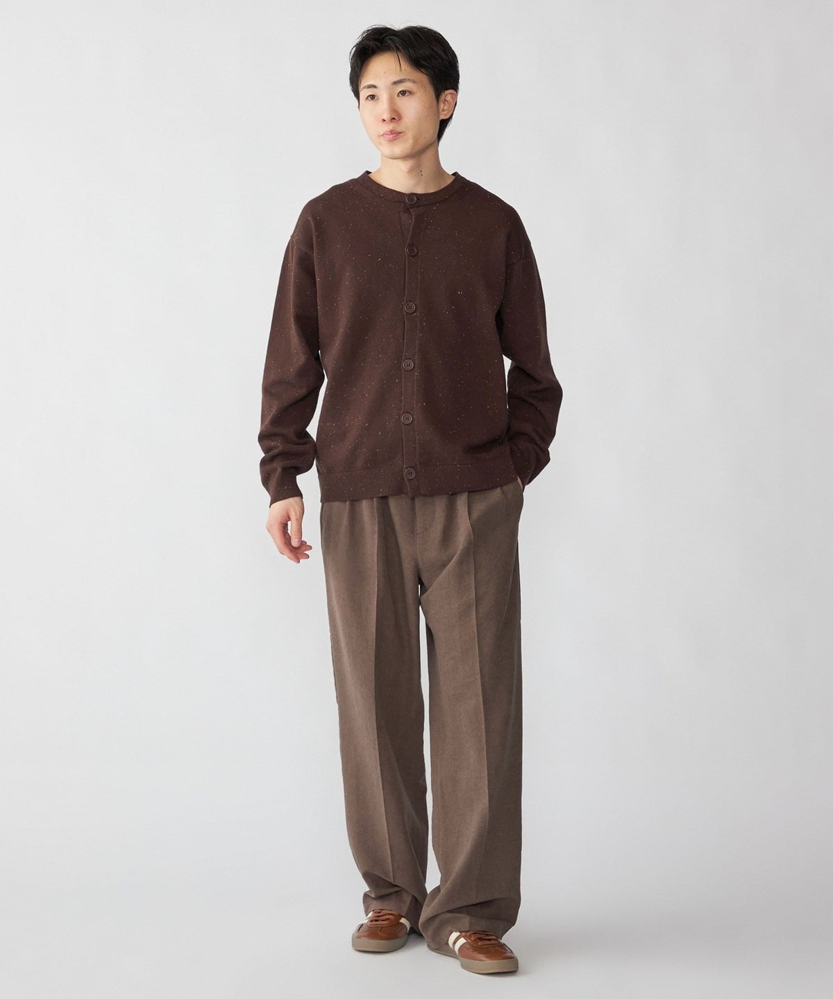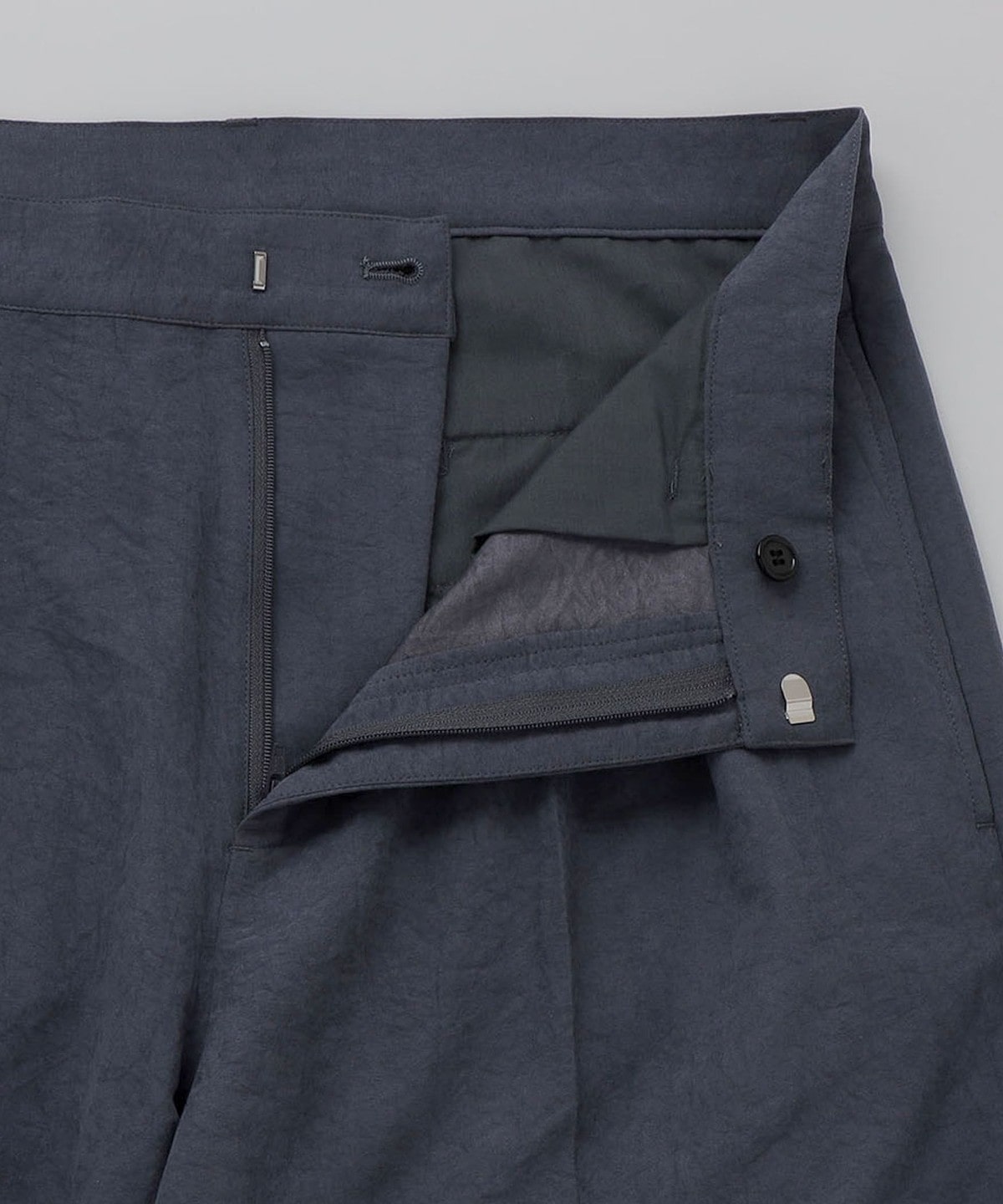 腰回りは2タックが入っていますが、大きくなりすぎない様に設計し、ワタリから裾までストンと落ちていくシルエットになっています。