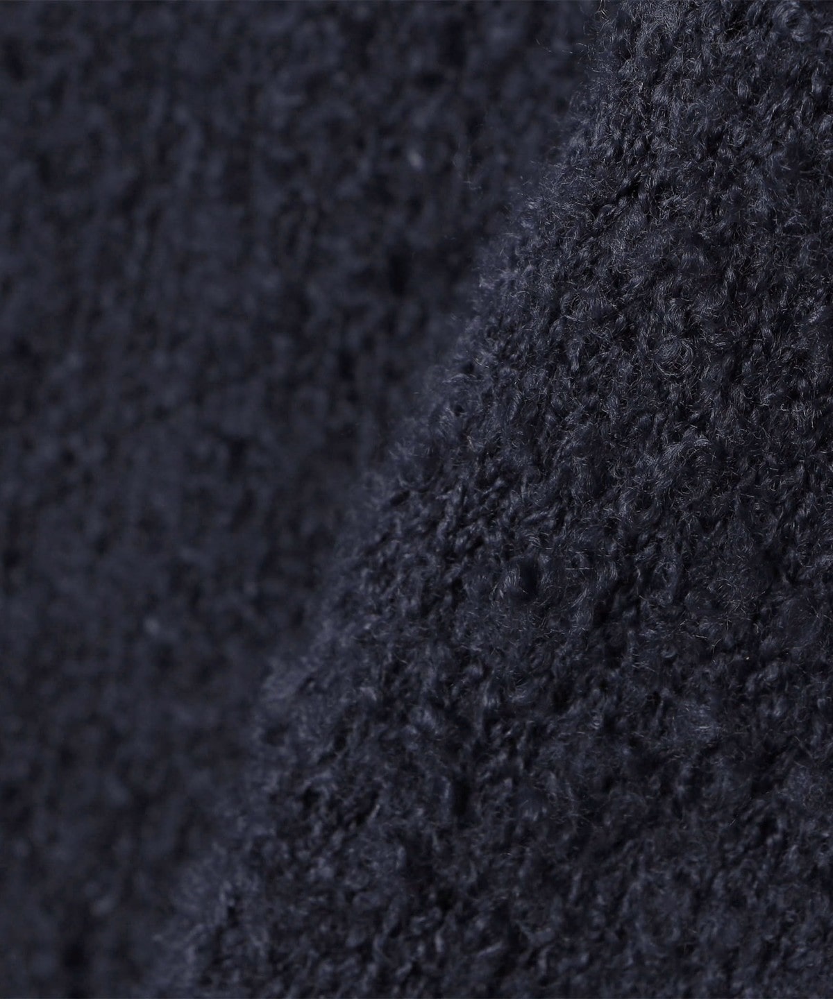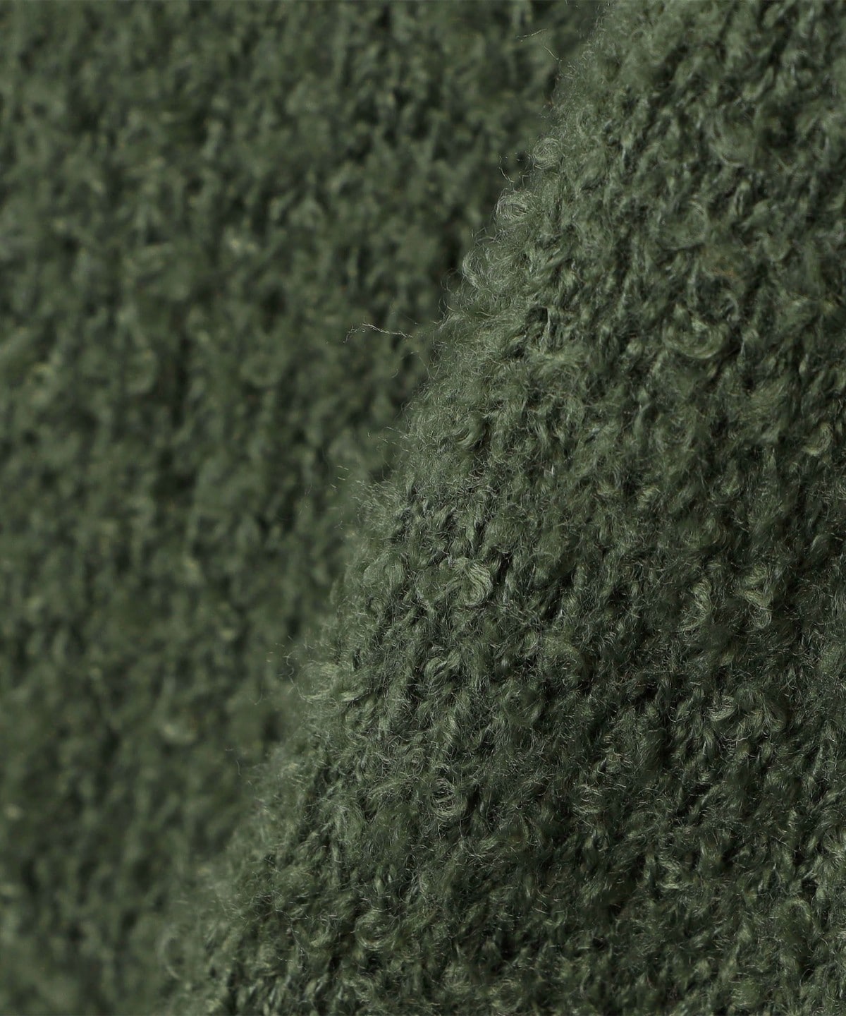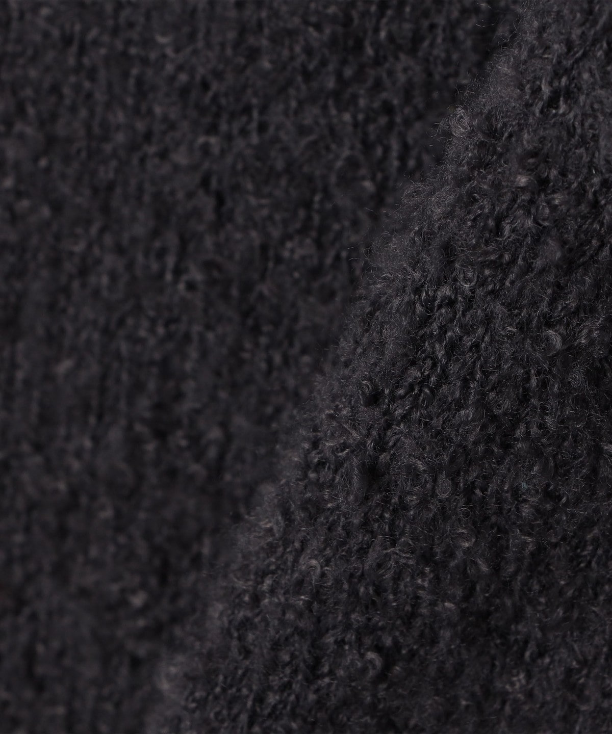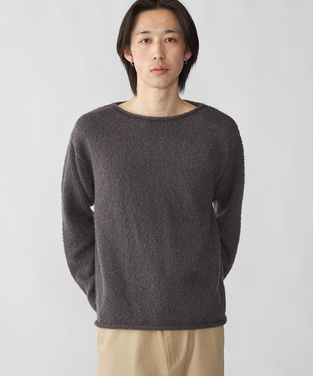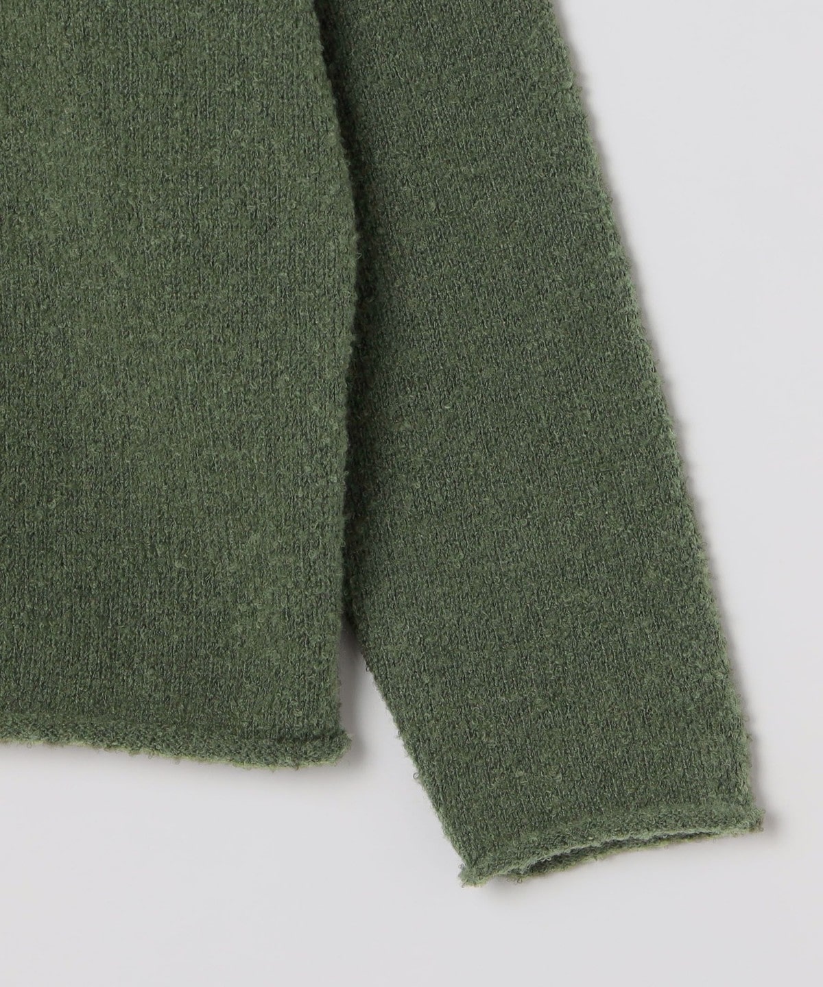 フリースのような柔らかいブークレヤーンを使用したソフトで着心地の良いニットプルオーバーです。