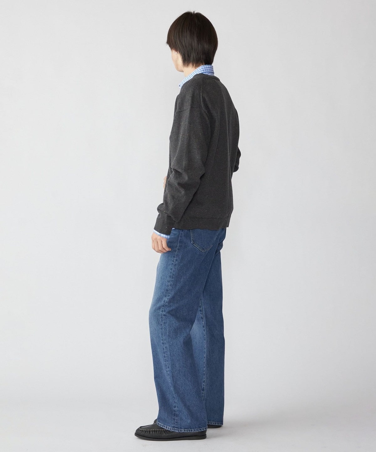 ワイドストレートシルエットのボトムスと相性の良い一着です。