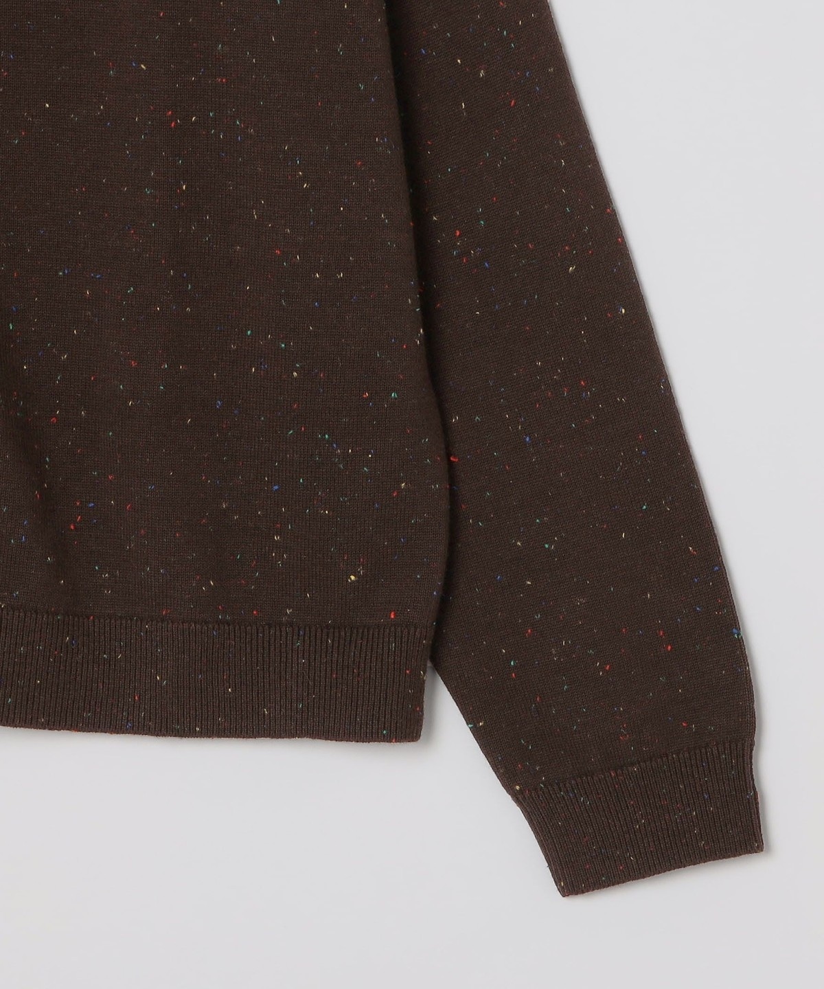 様々なカラーのネップが表面に散りばめられた、表情のある一枚です。