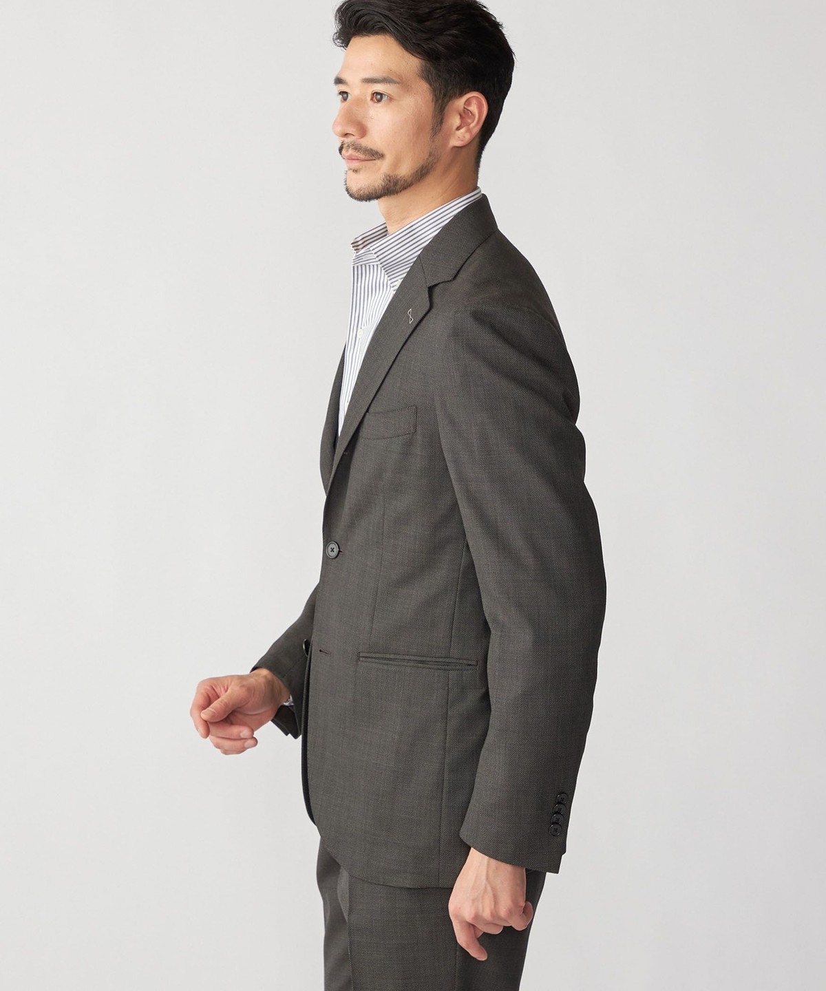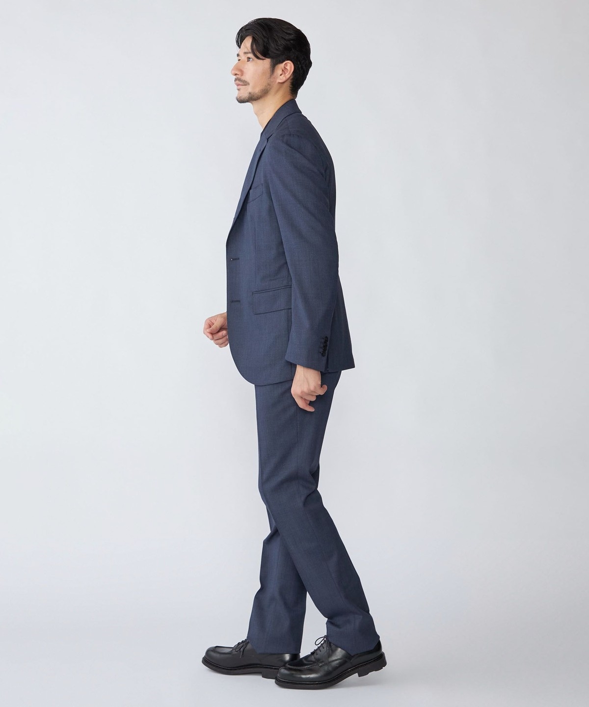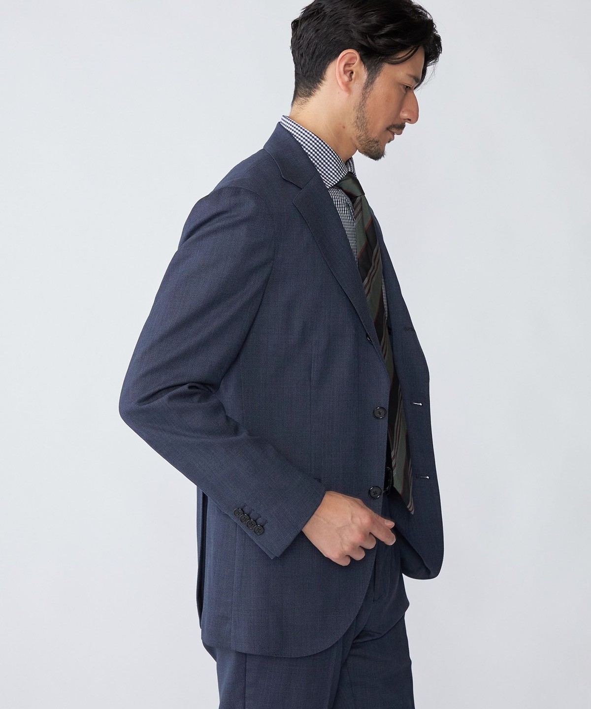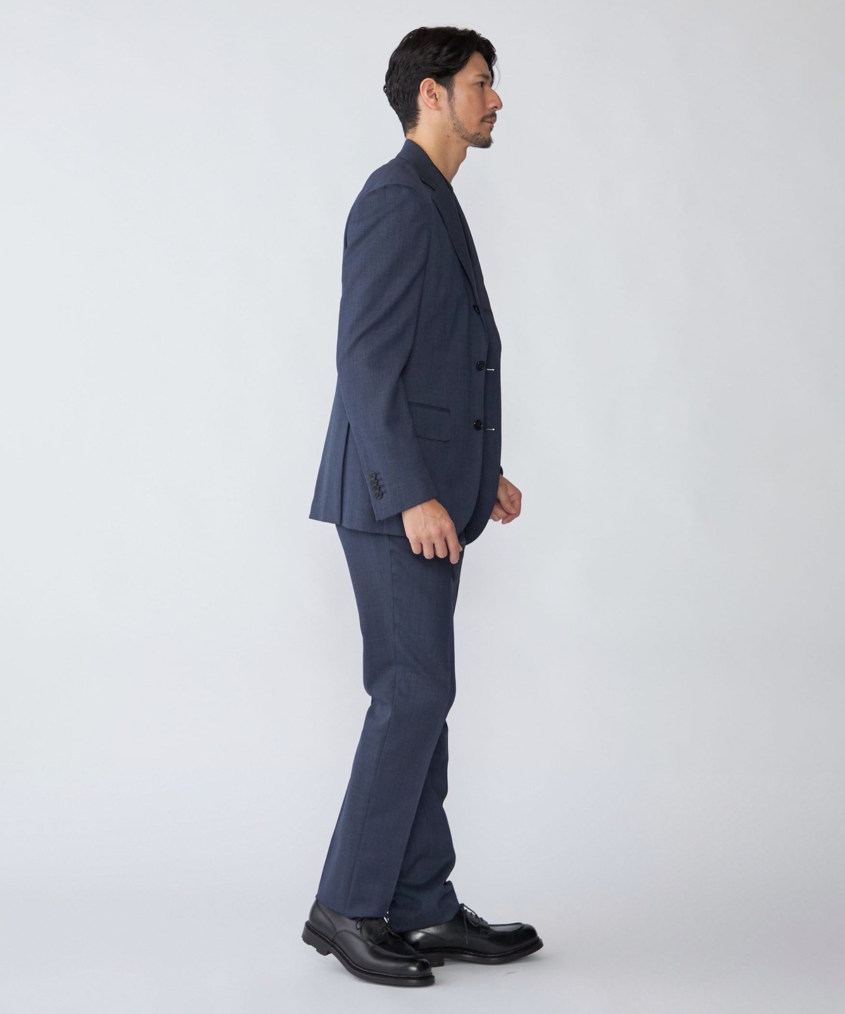 シングルブレスト 段返り3つボタン、サイドベンツ、アンコンストラクテッド仕様。