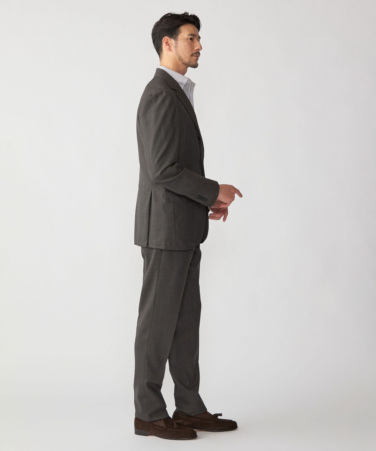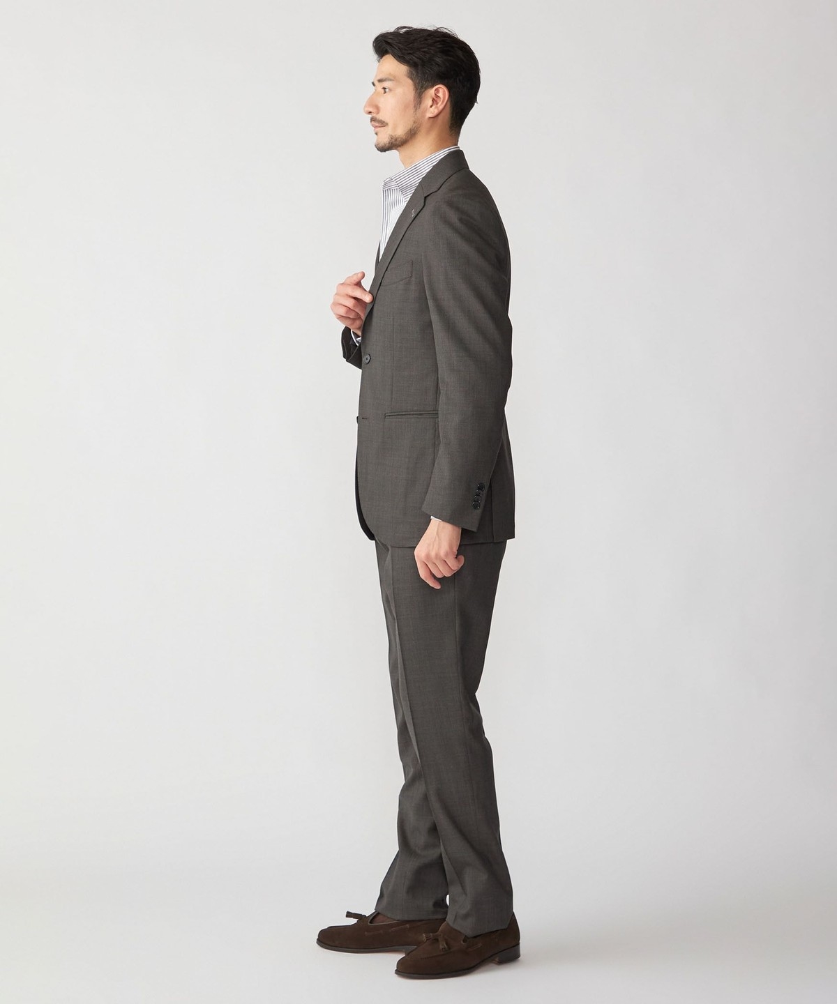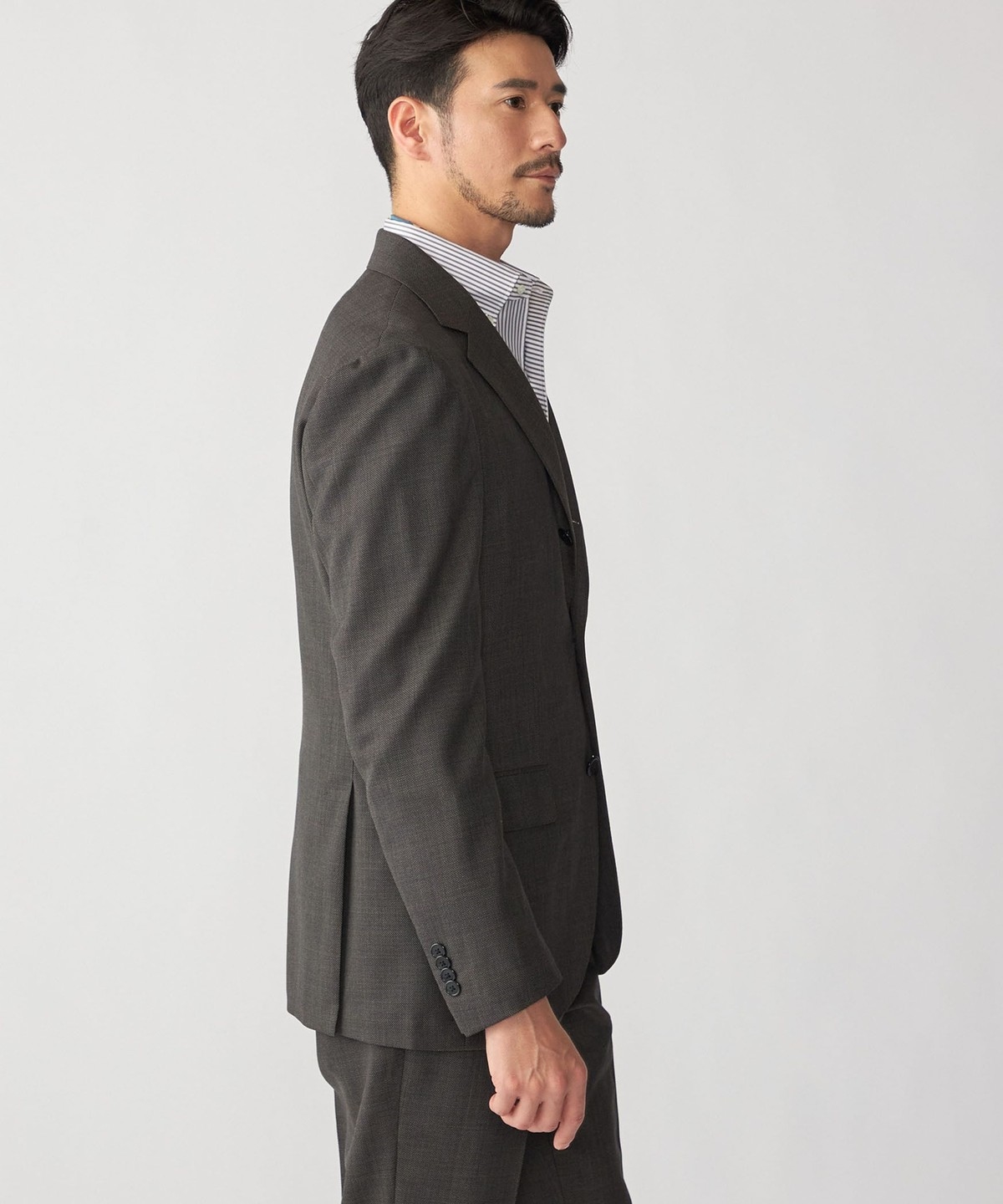 シングルブレスト 段返り3つボタン、サイドベンツ、アンコンストラクテッド仕様。