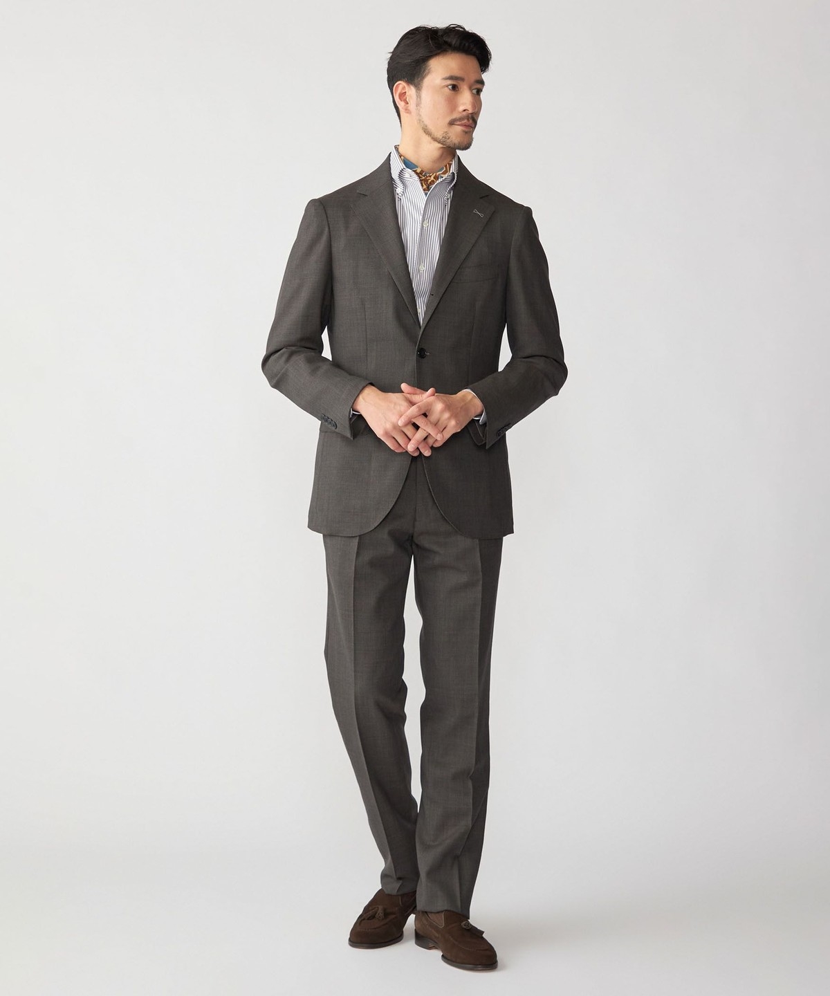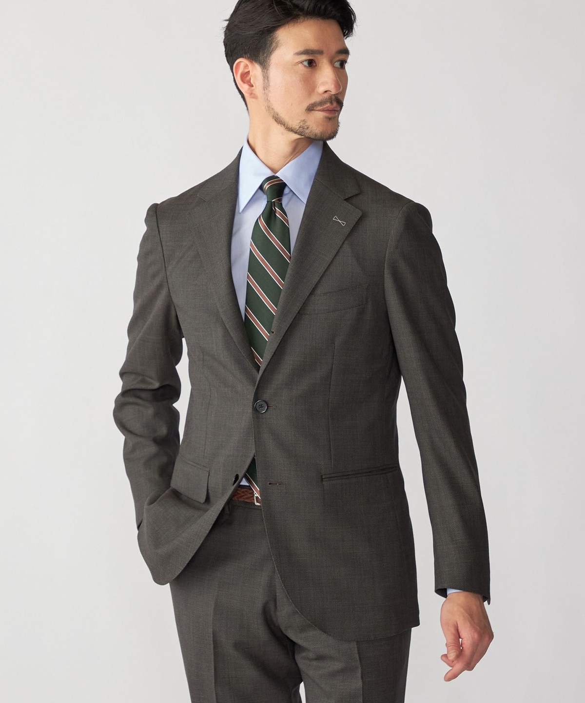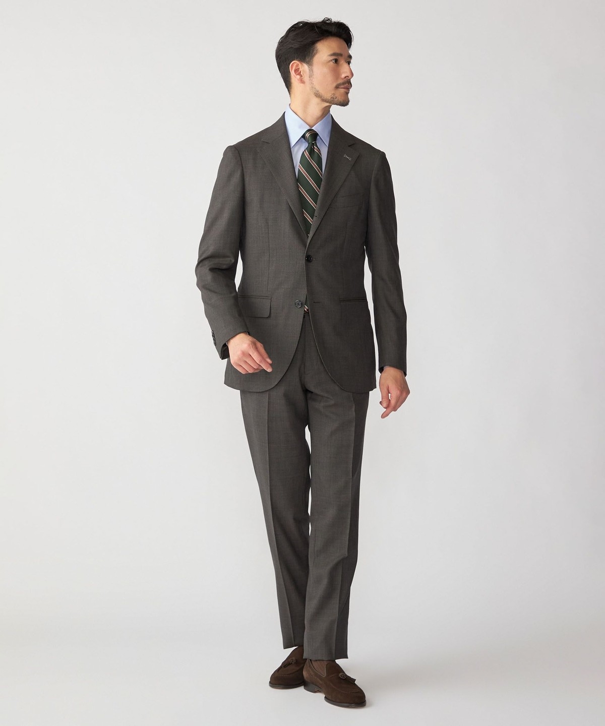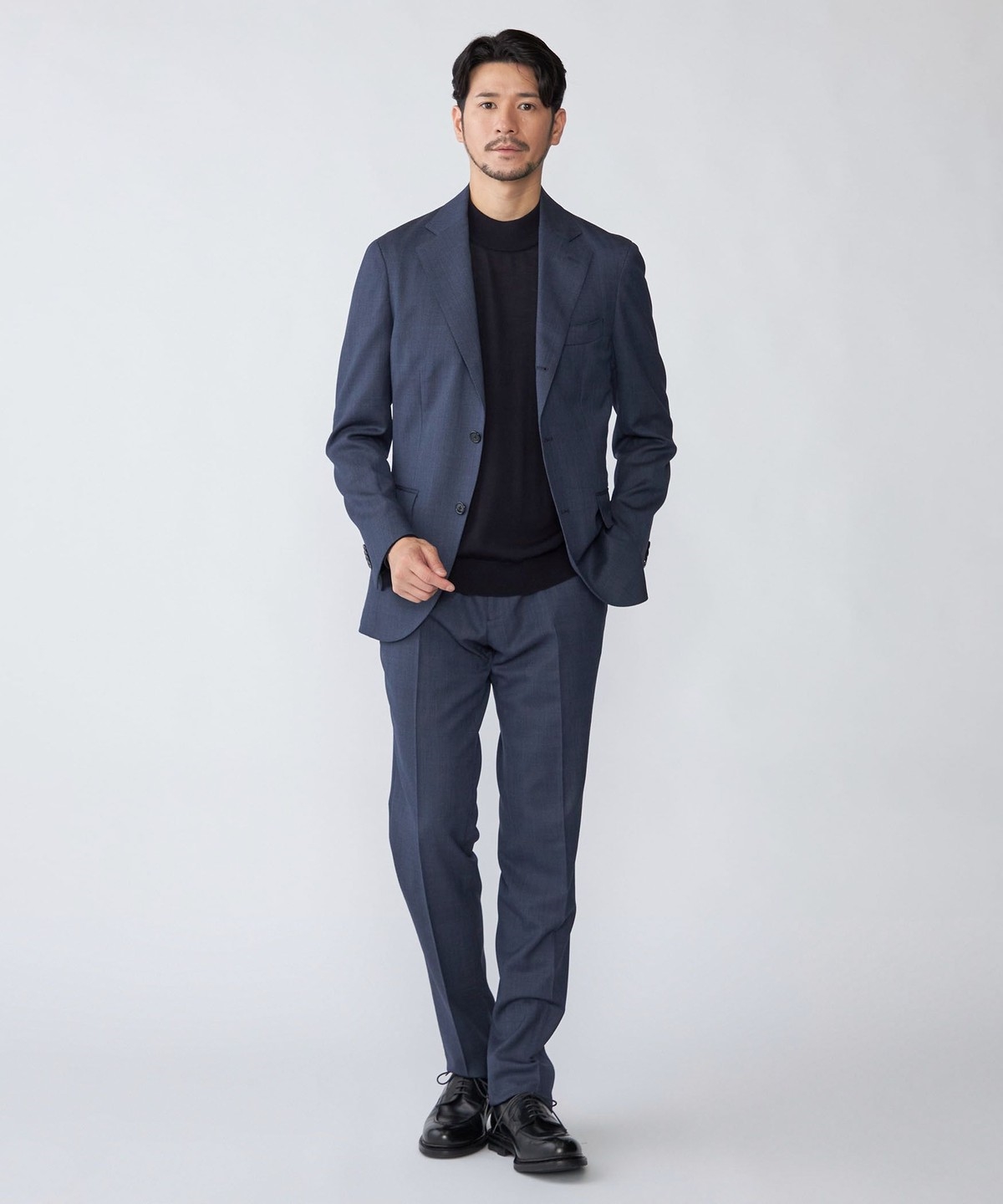 シングルブレスト 段返り3つボタン、サイドベンツ、アンコンストラクテッド仕様。