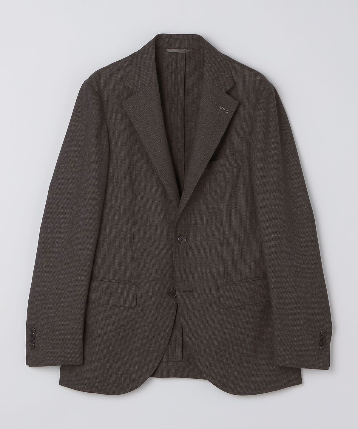 ストレッチ加工とウォッシャブル加工を施した素材を使用したバーズアイ生地のジャケット。