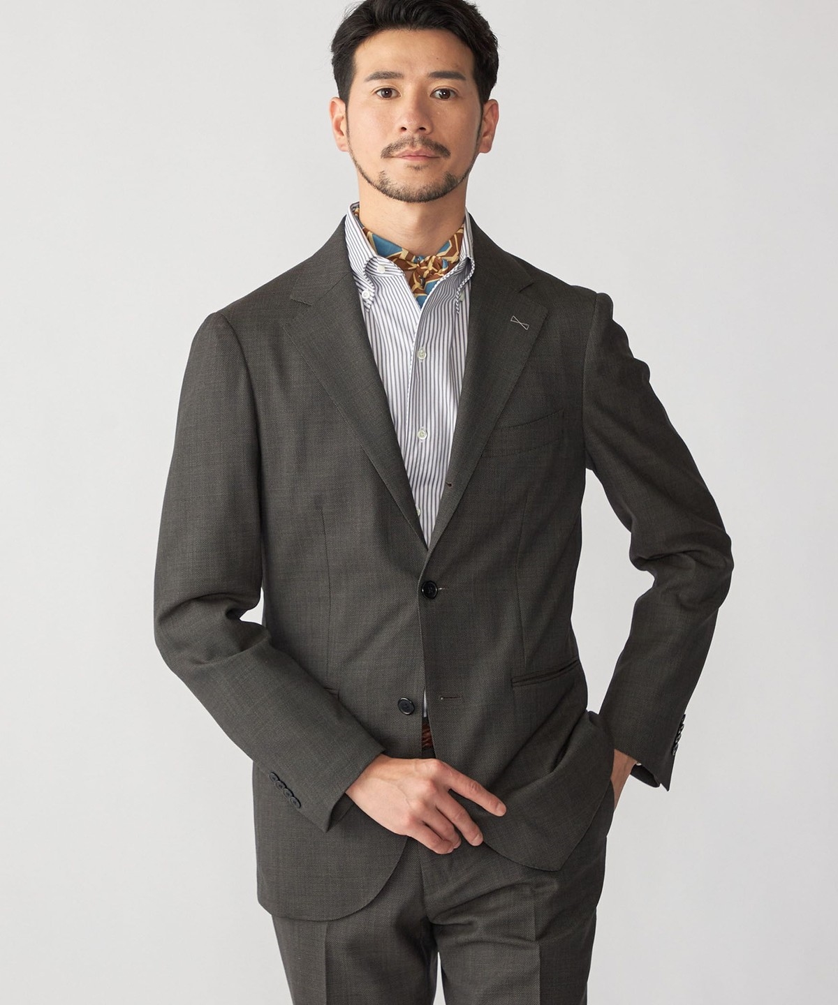 タイドアップはもちろん、タートルネックなどのニットとコーディネートしてビジネスカジュアルでも活躍するアイテムです。