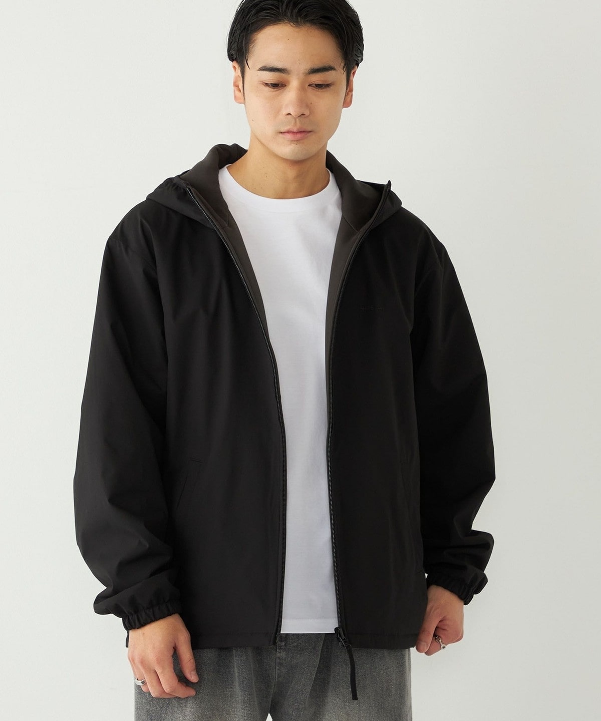 表側は無地仕様に仕上げ、裏側はパーカーのふち部分のみ色を切り替えており、シンプルながら表側と裏側で雰囲気を変えた着こなしをお楽しみいただけます。