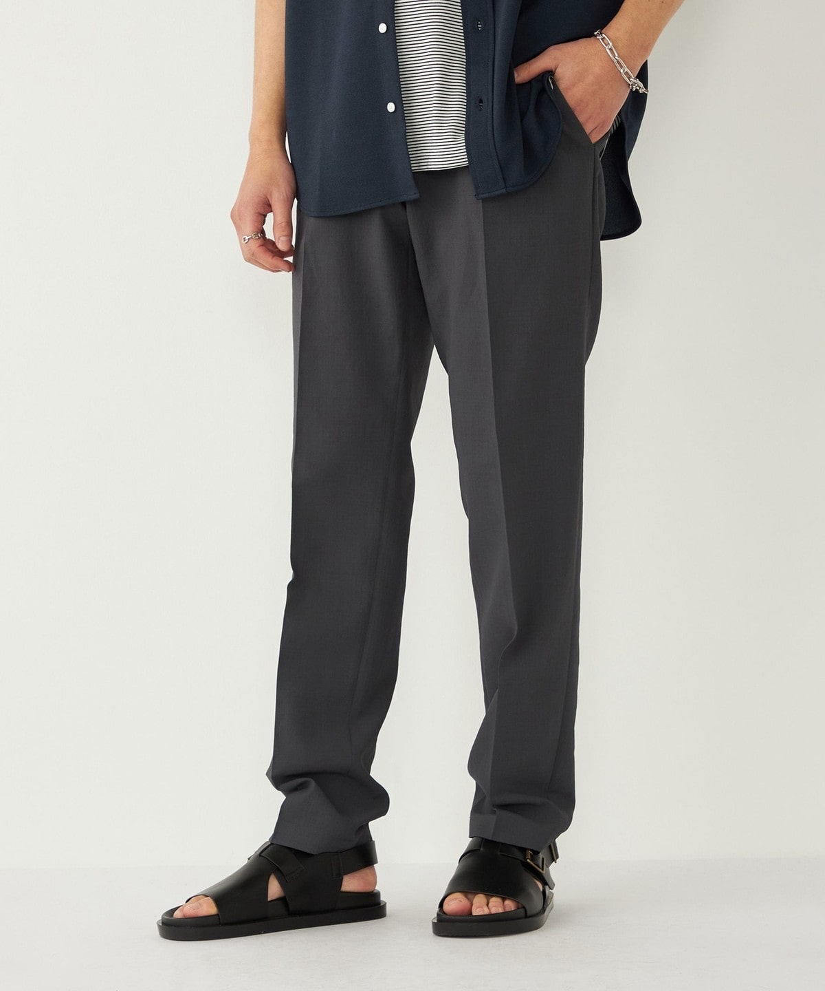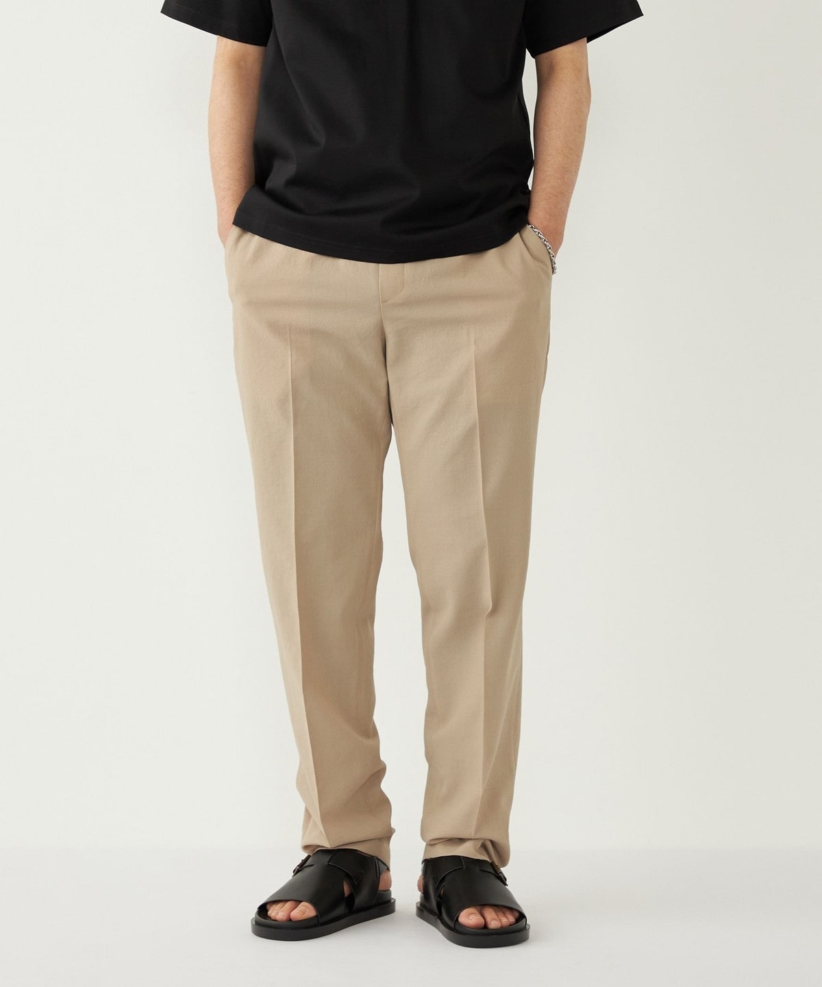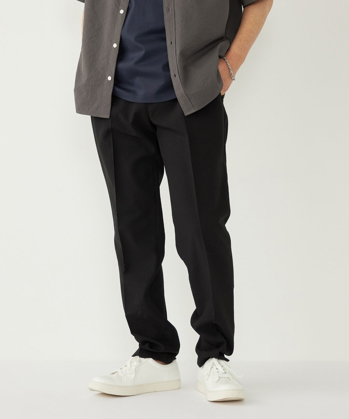 センタープレスを入れ、裾に向けてテーパードをかけることで、きれいめなシルエットに仕上げました。
