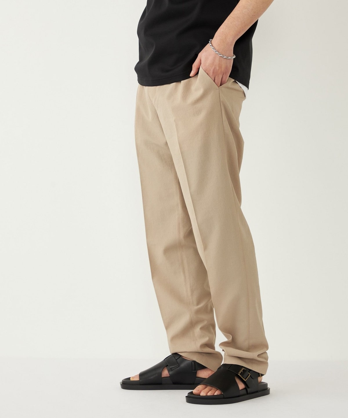 シャリッとした清涼感のある素材を使用したイージーパンツ。