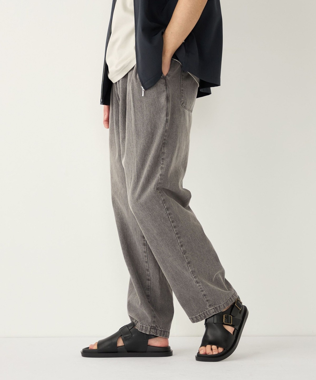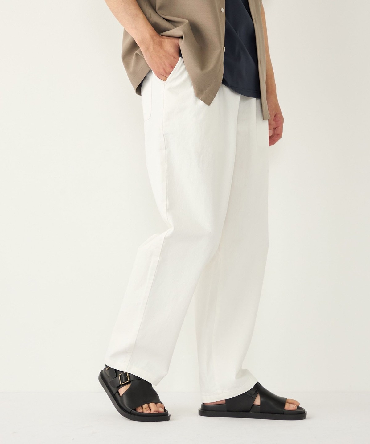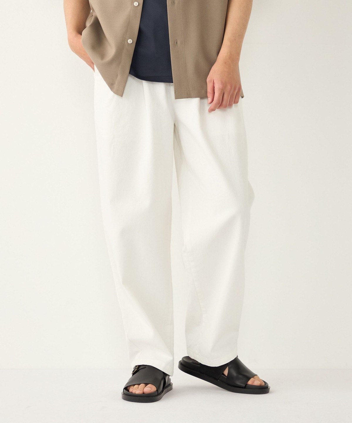 ゆとりのあるワイドなサイジングながら、裾にかけてテーパードをかけることですっきりとしたシルエットに仕上げました。