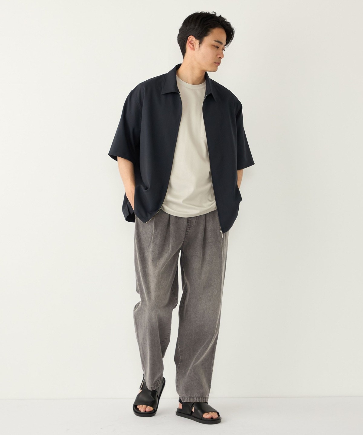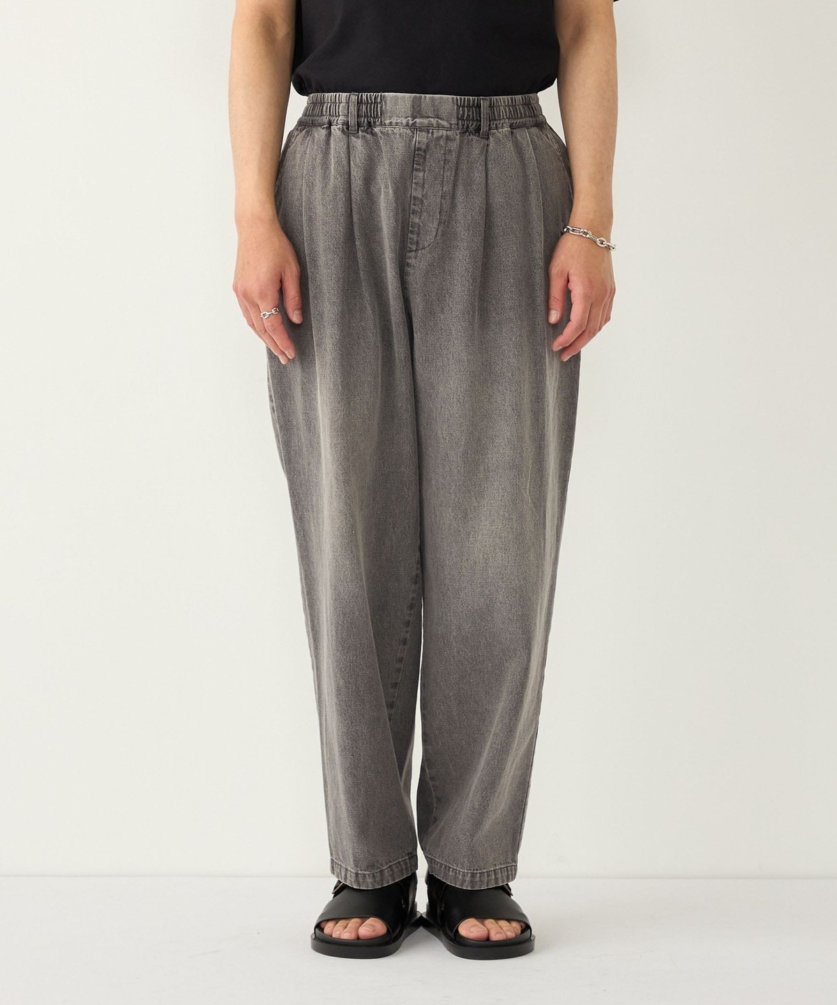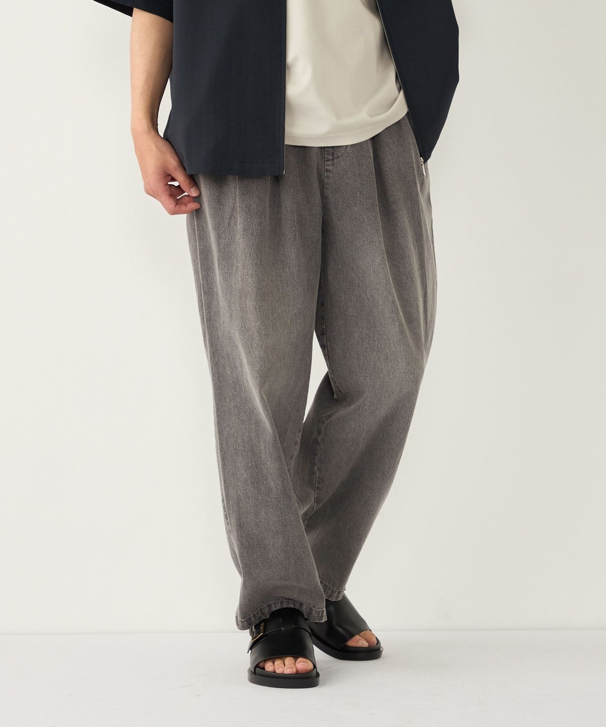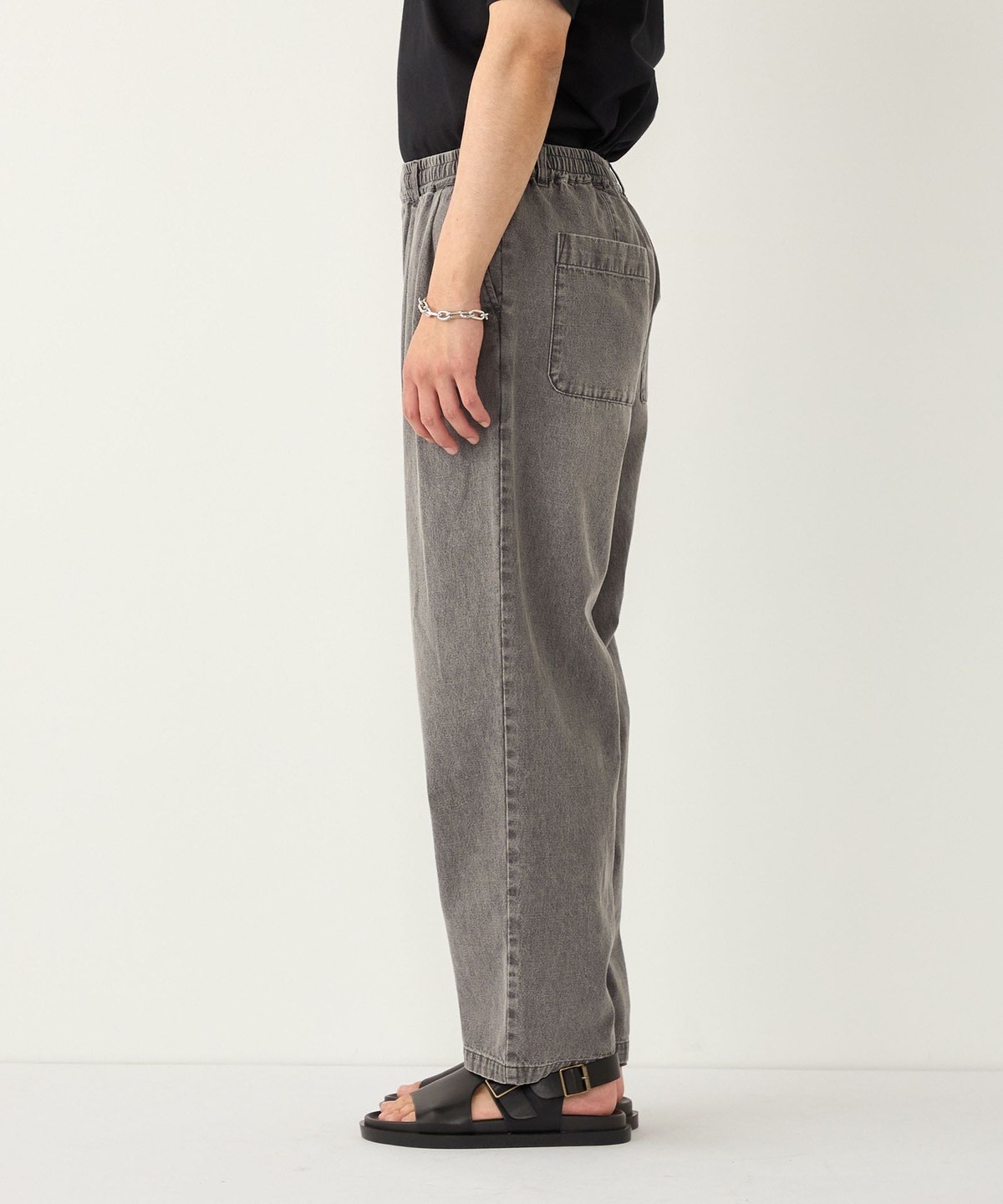 ゆとりのあるワイドなサイジングながら、裾にかけてテーパードをかけることですっきりとしたシルエットに仕上げました。