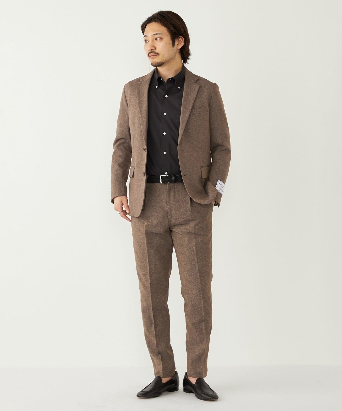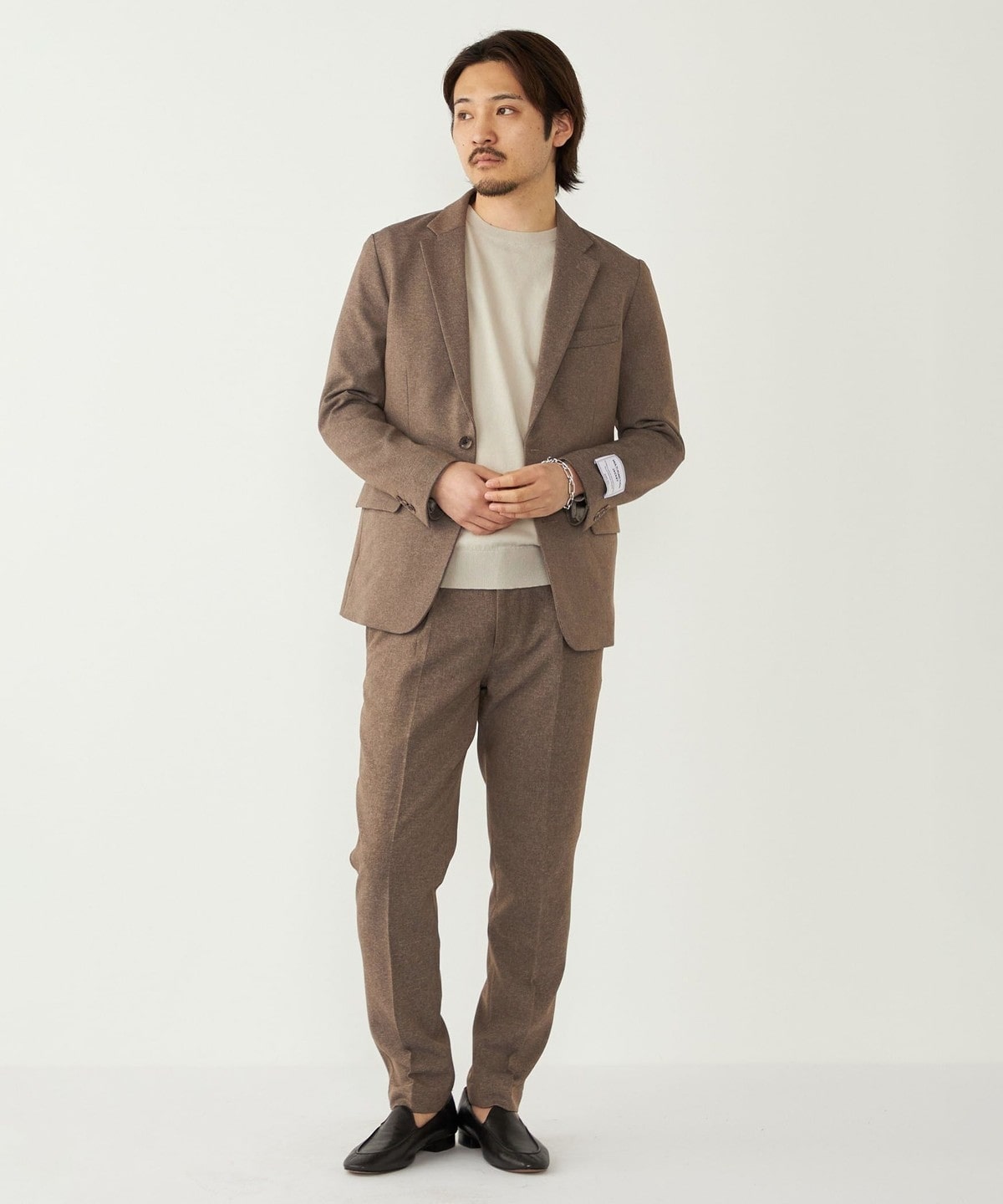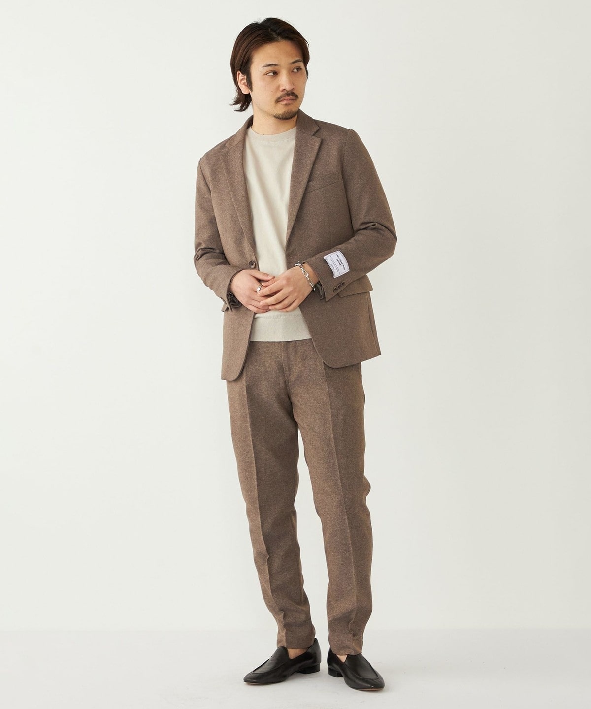 同素材のジャケットとのセットアップでの着用もおすすめです。