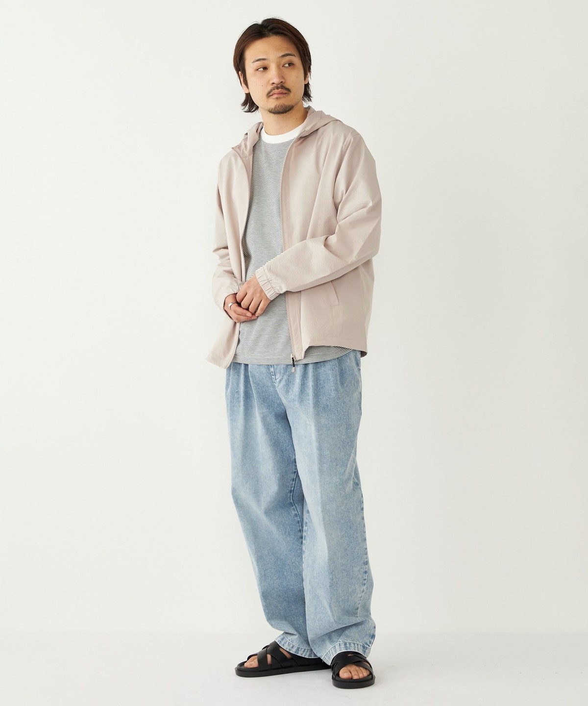 ややゆとりのあるサイジングで着こなしに都会的な印象を与えてくれます。