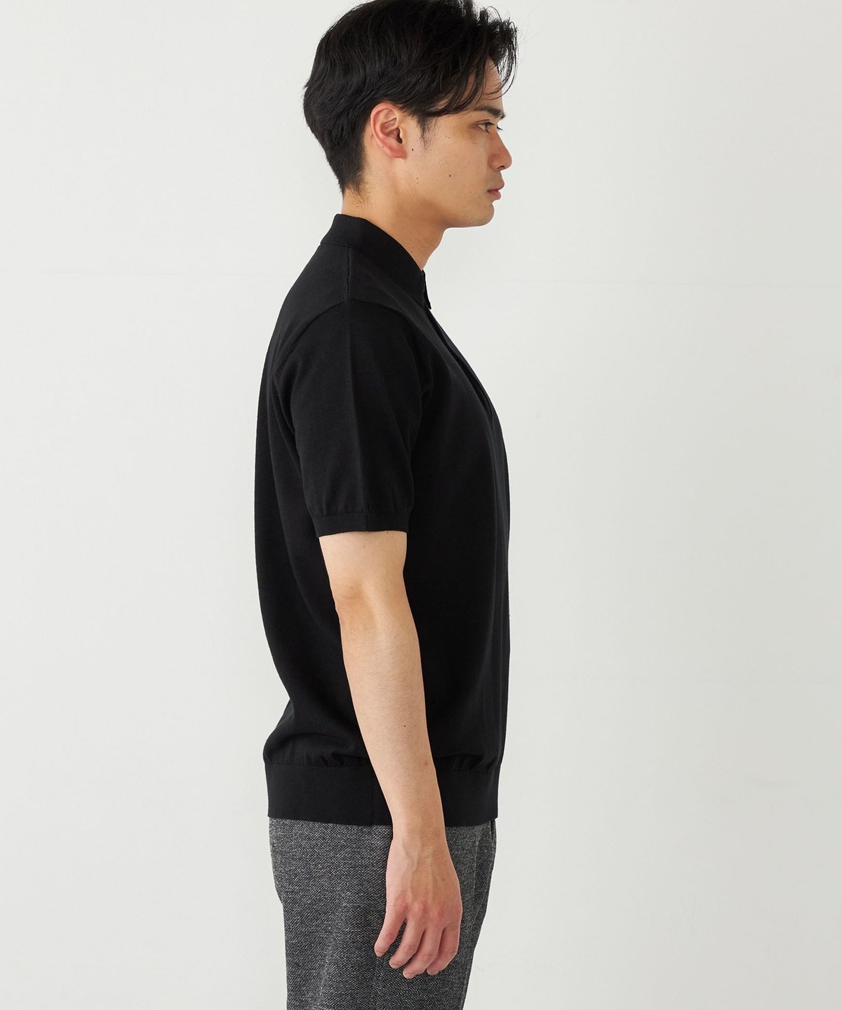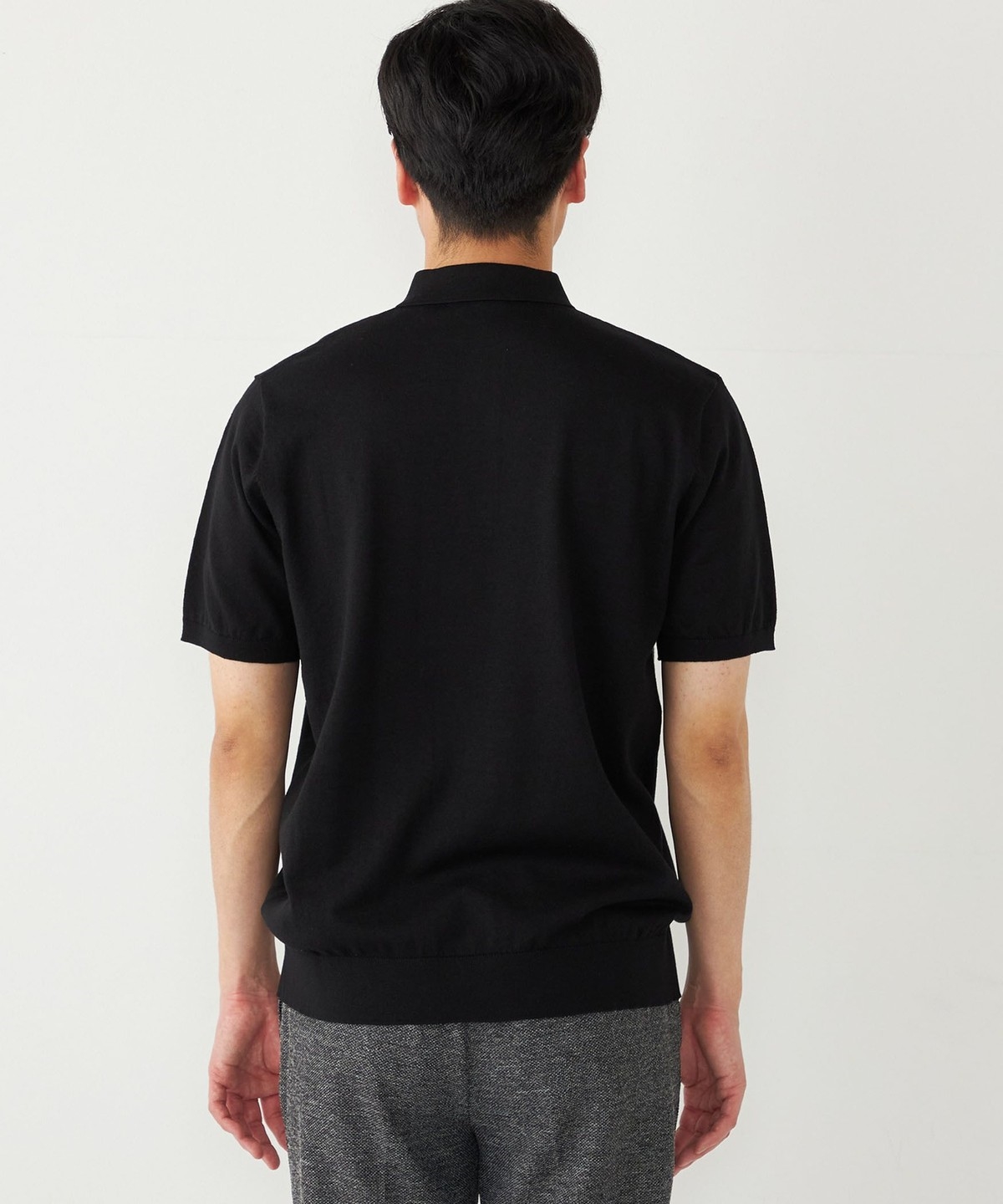 コットンとポリエステル混紡の天竺素材で編み立てた、14ゲージのニットポロシャツ。
