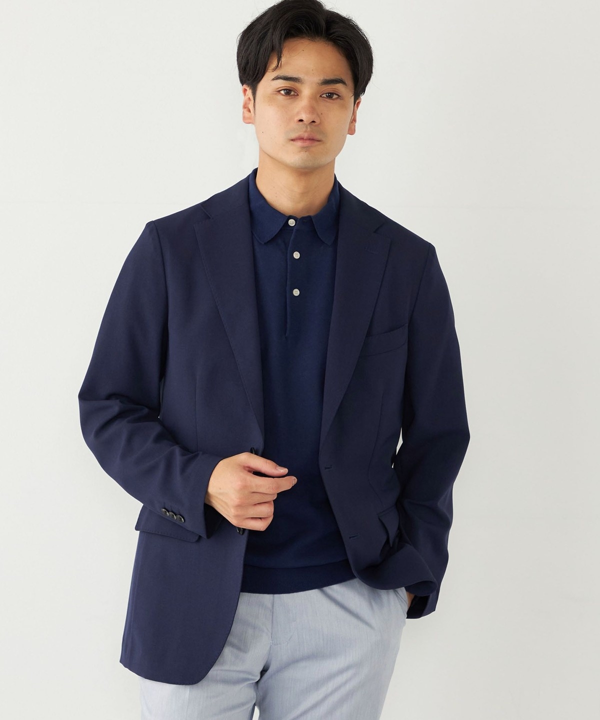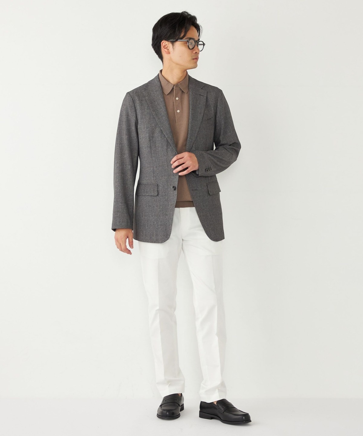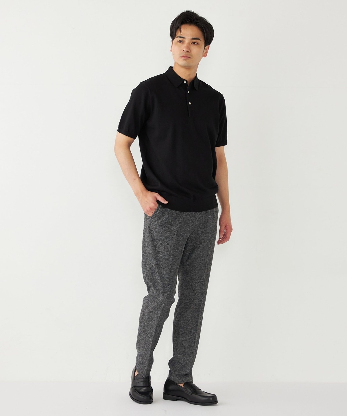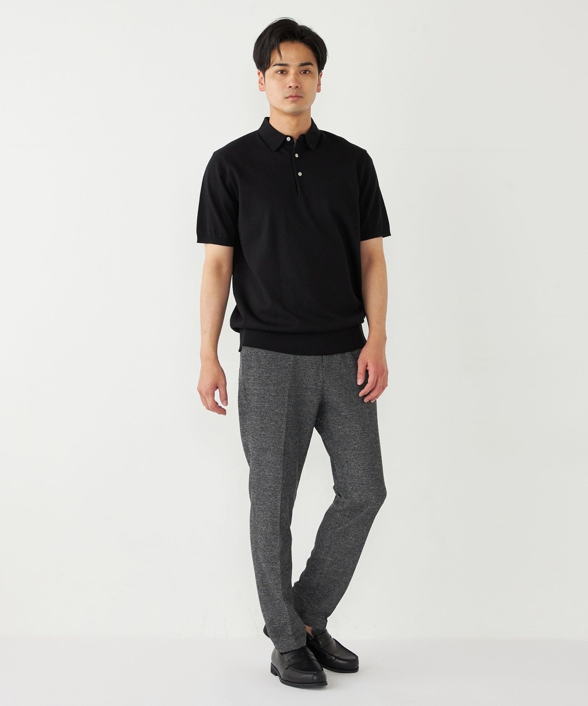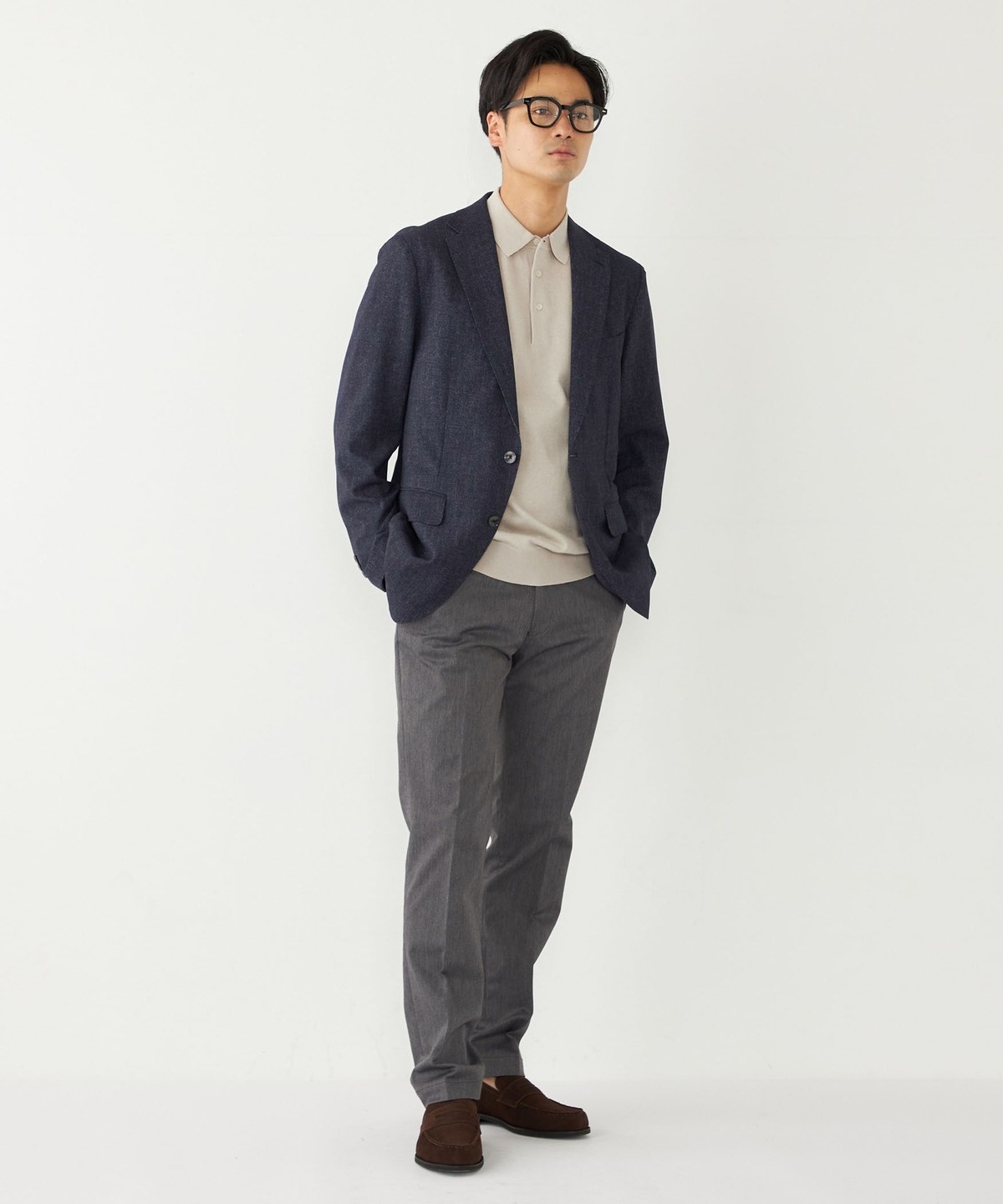 鹿の子素材のポロシャツにくらべ、上品さのあるニットポロはジャケットのインナーにもおすすめです。