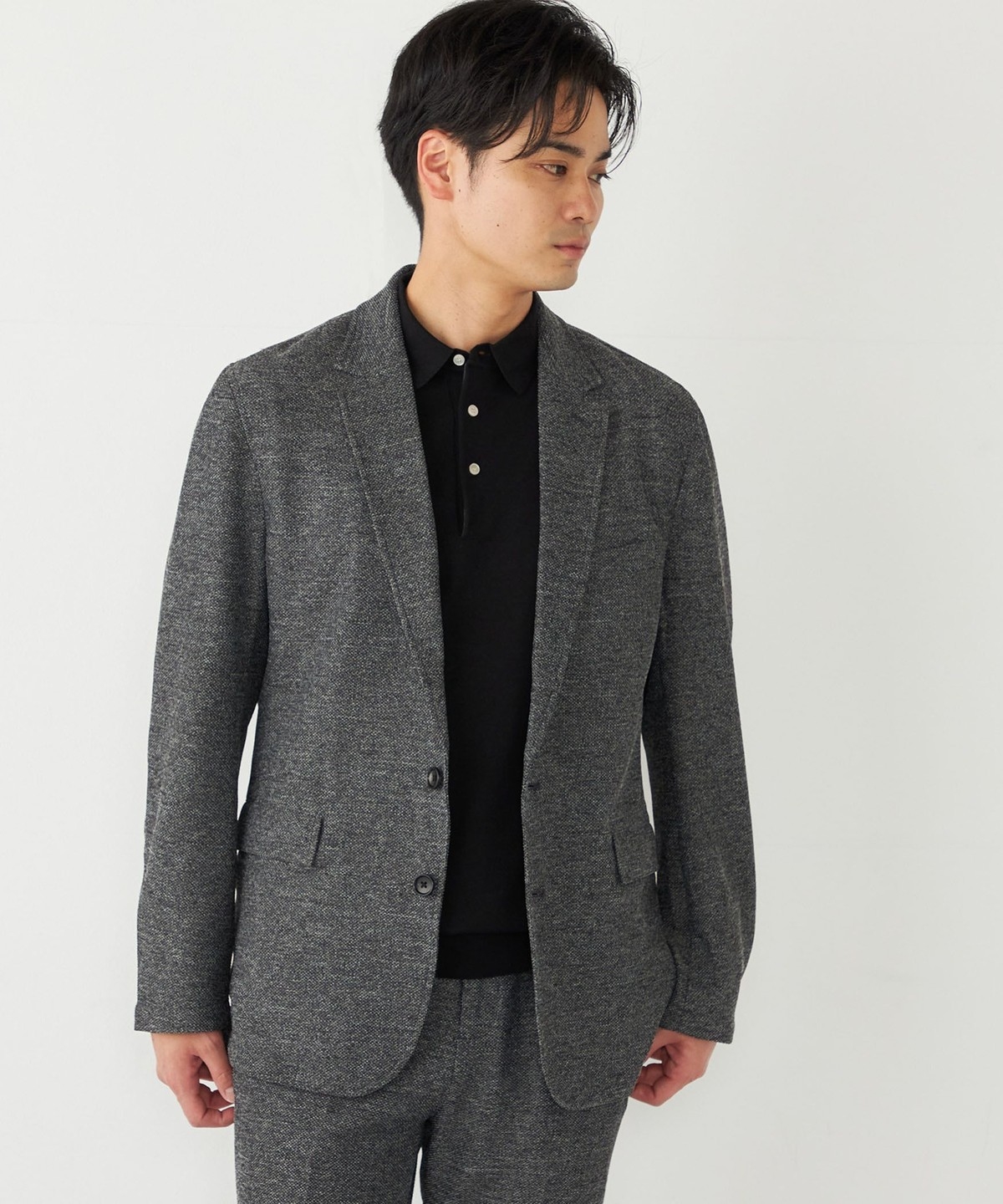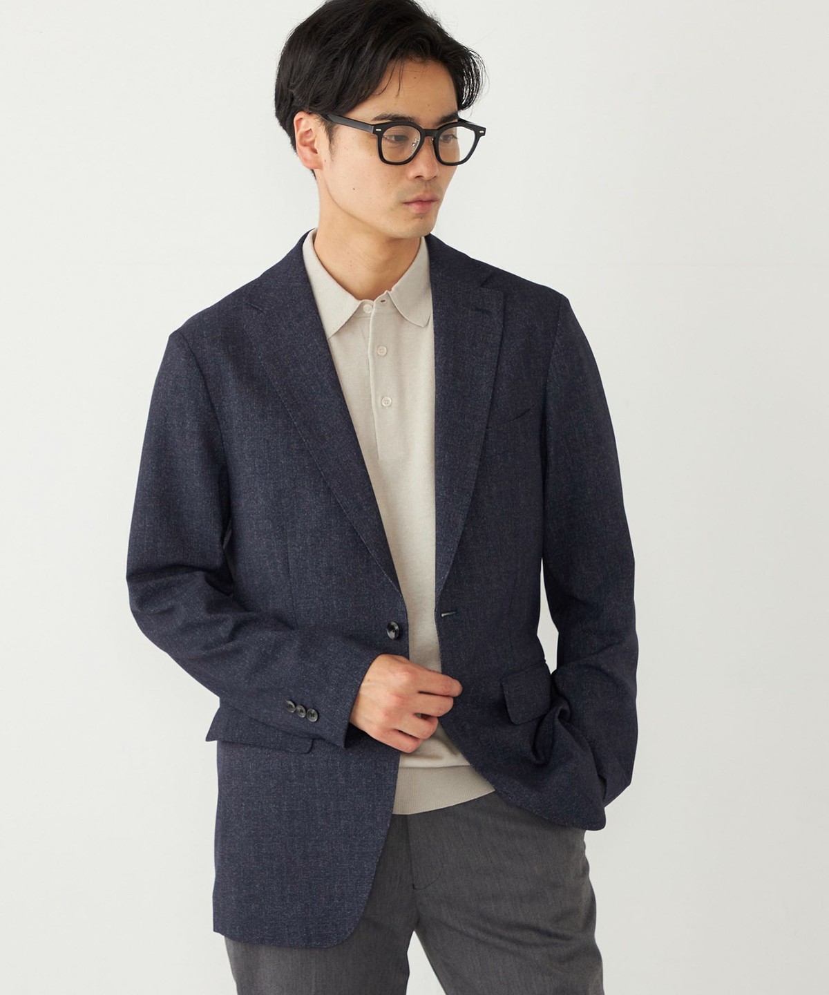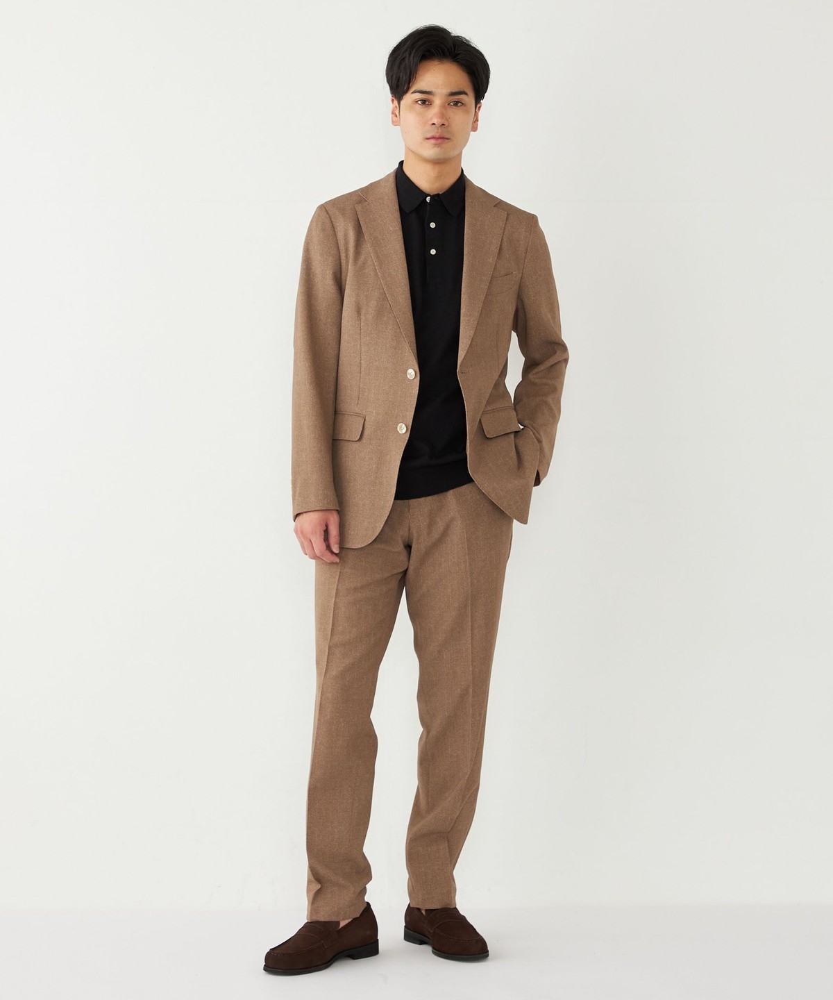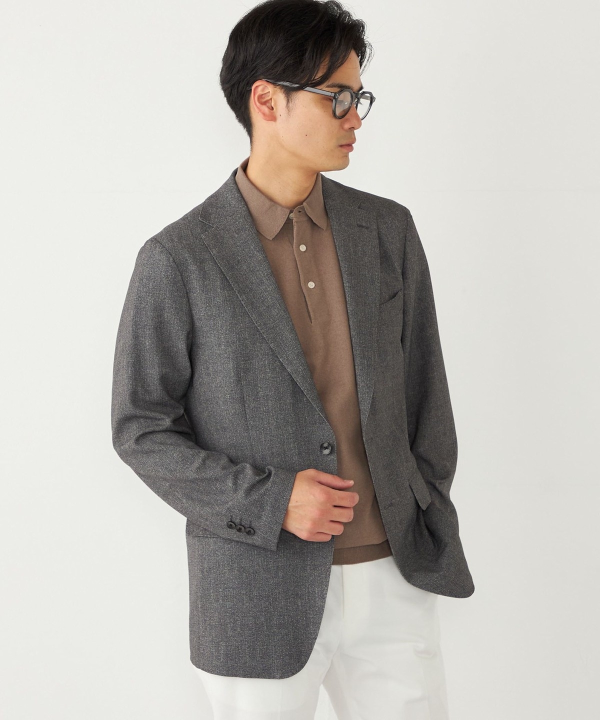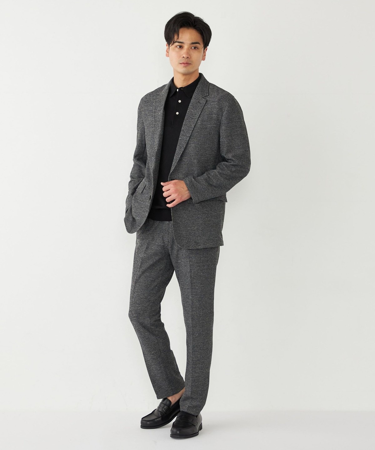 鹿の子素材のポロシャツにくらべ、上品さのあるニットポロはジャケットのインナーにもおすすめです。