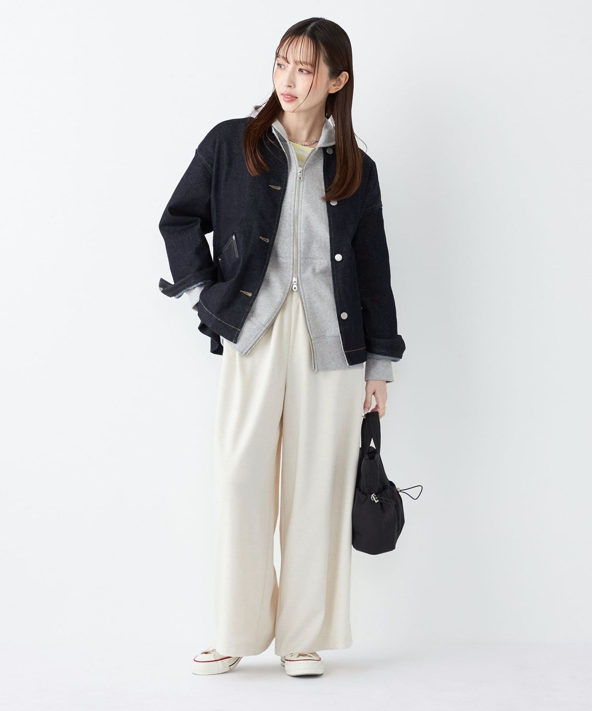 デイリーには、デニムやワイドパンツに合わせてカジュアルに。