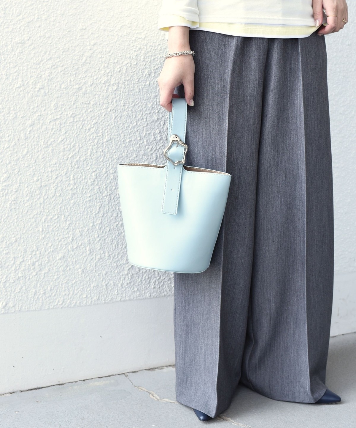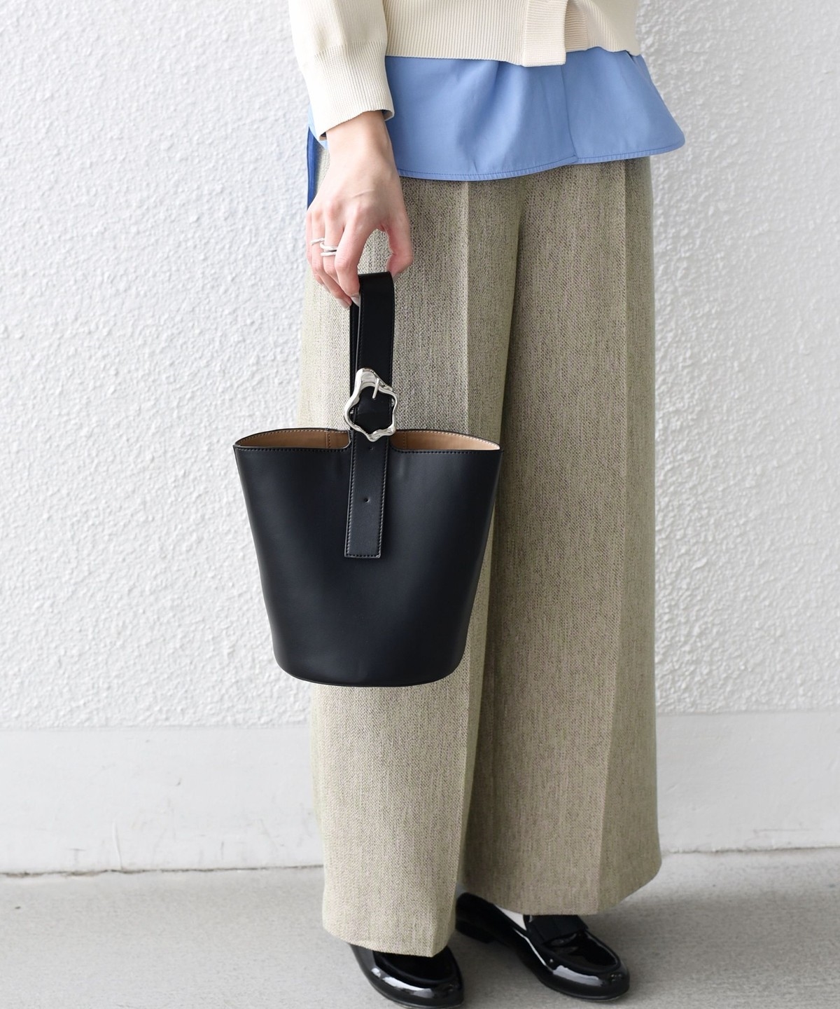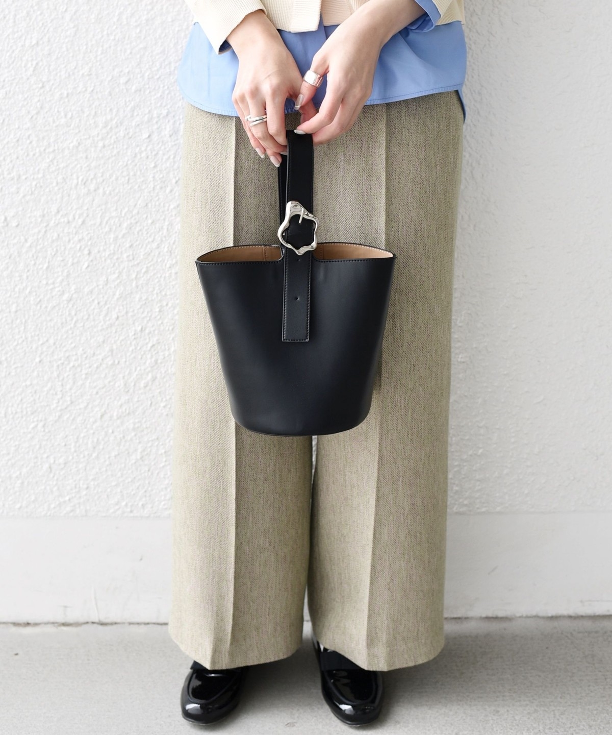 ニュアンス感のあるバックルと、コンパクトなサイズ感が可愛らしいバケットバッグ。