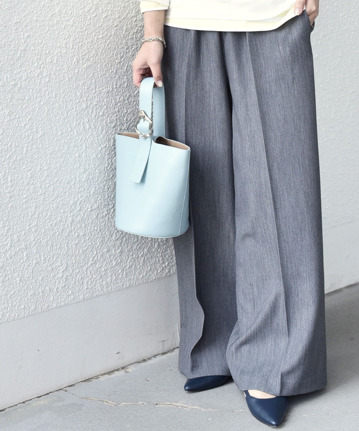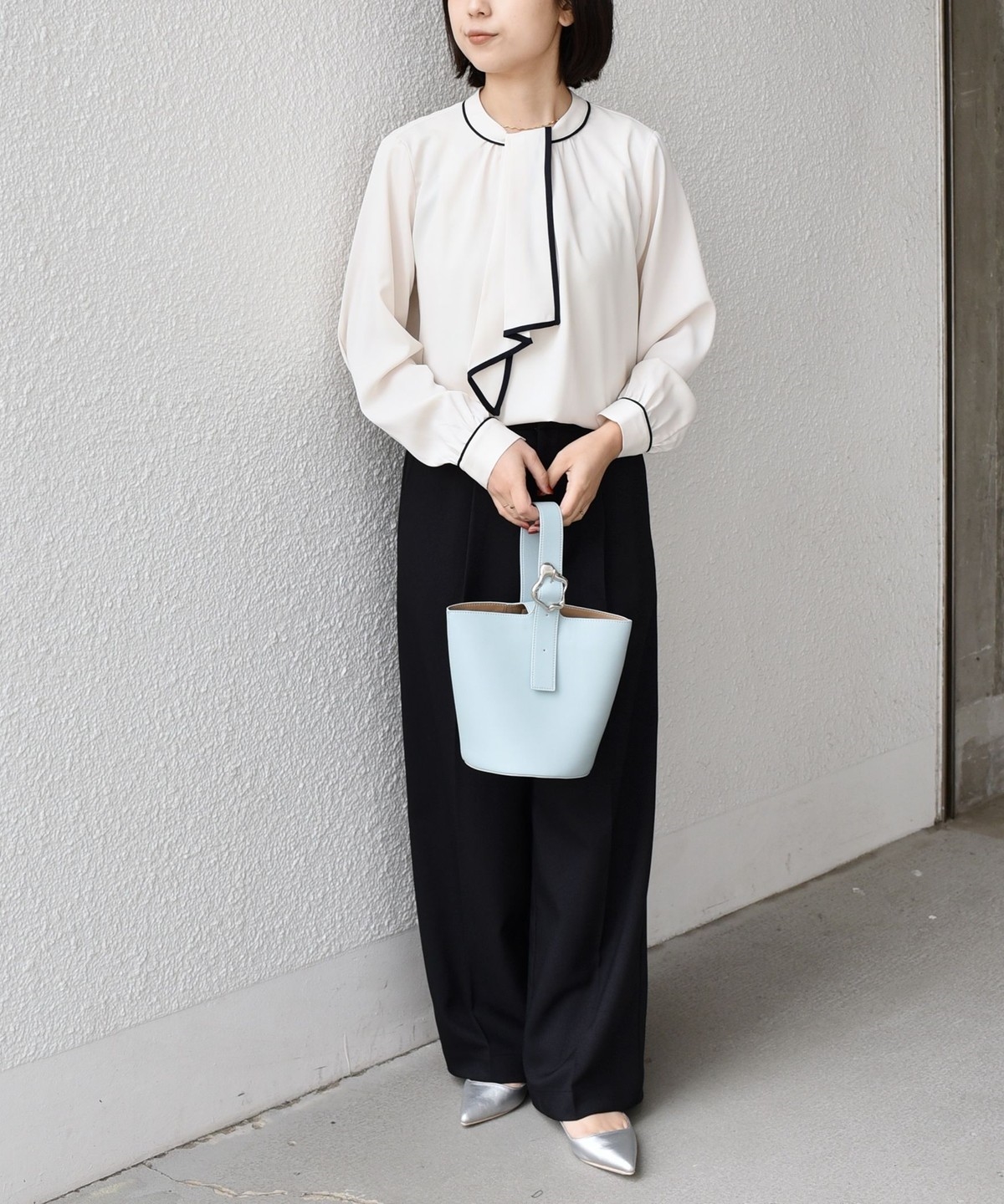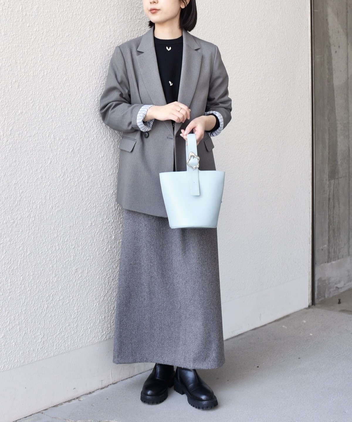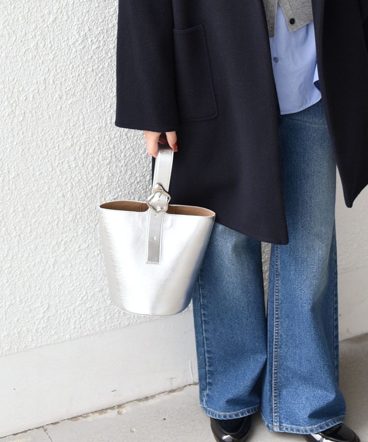 ニュアンス感のあるバックルと、コンパクトなサイズ感が可愛らしいバケットバッグ。