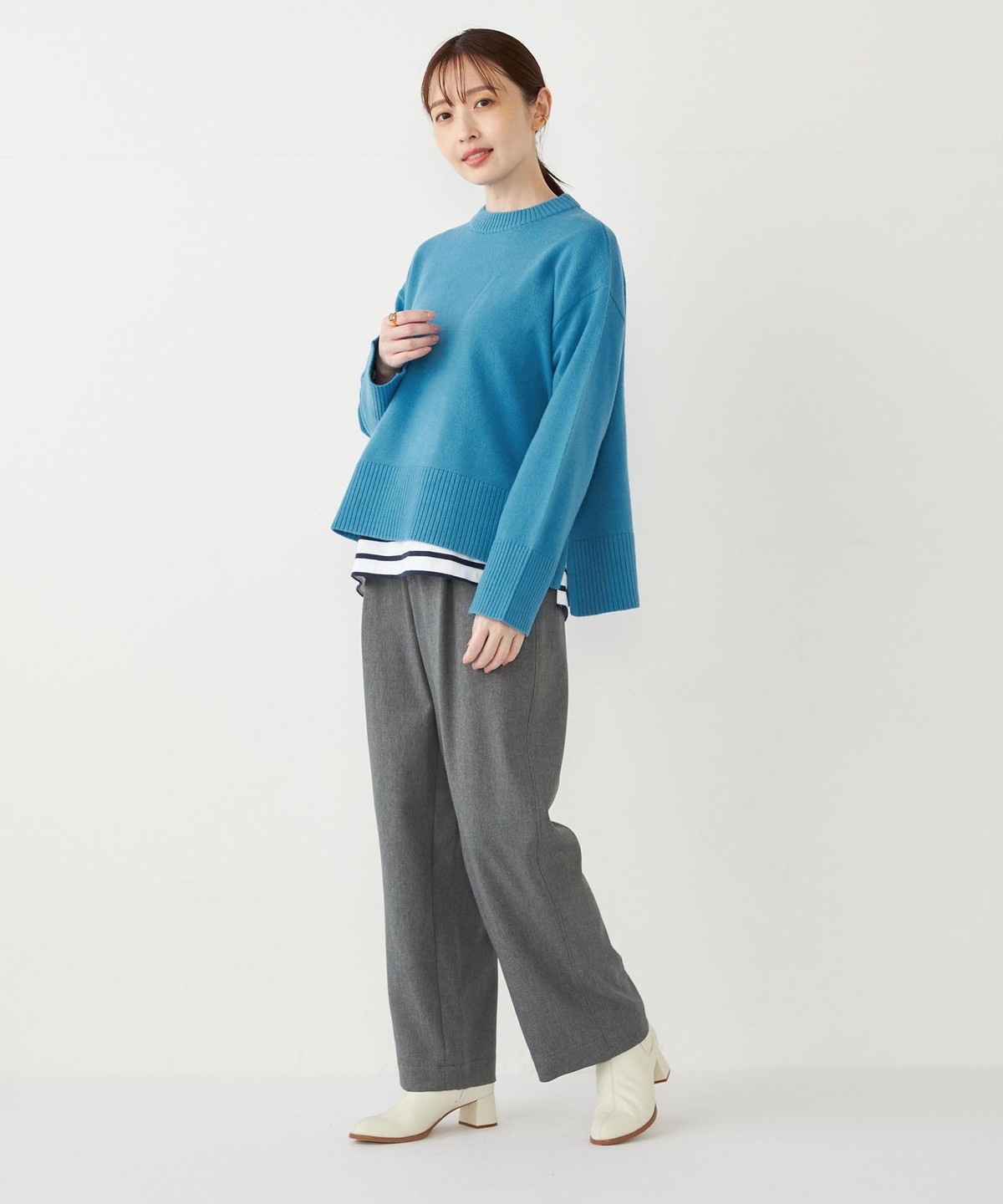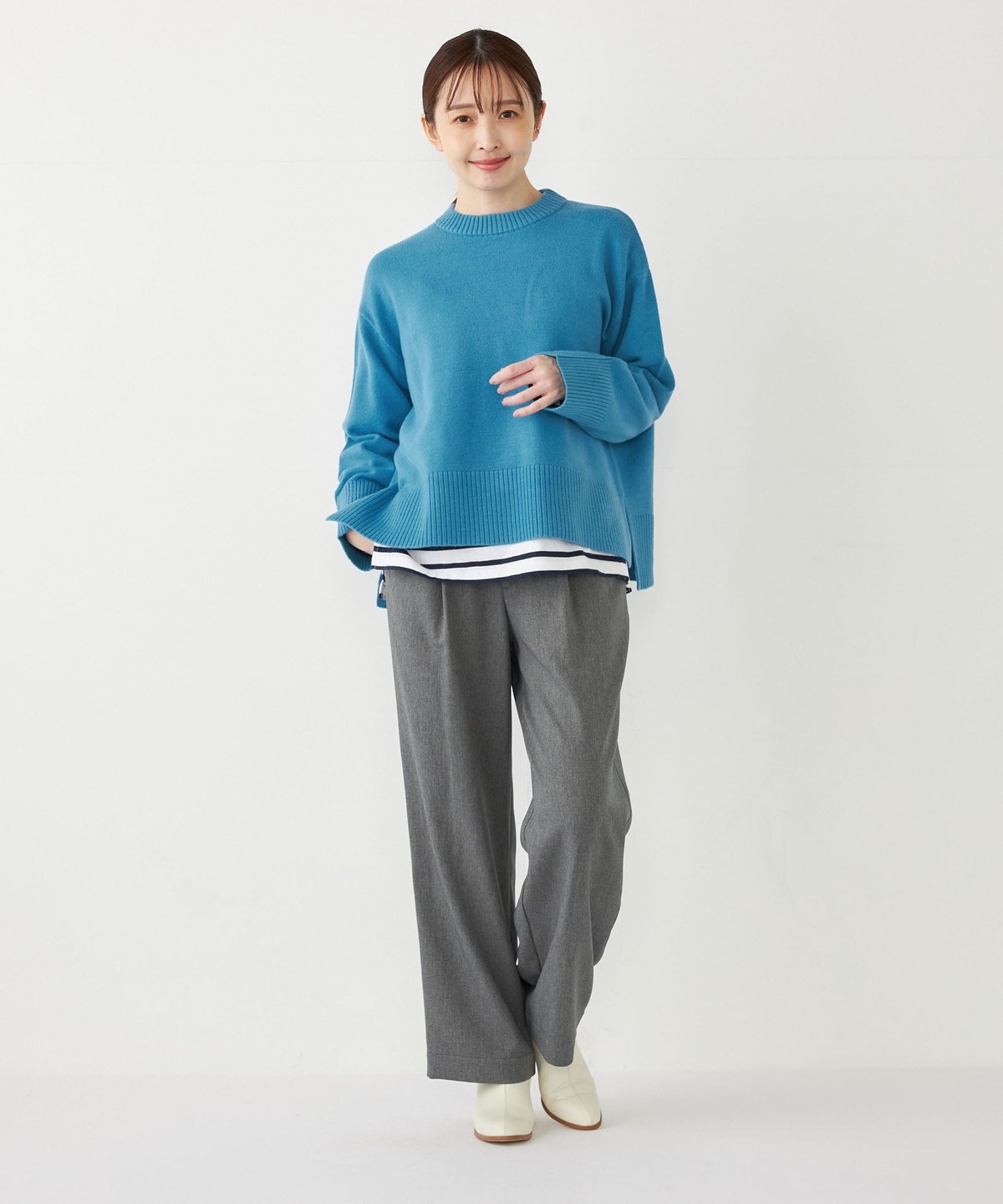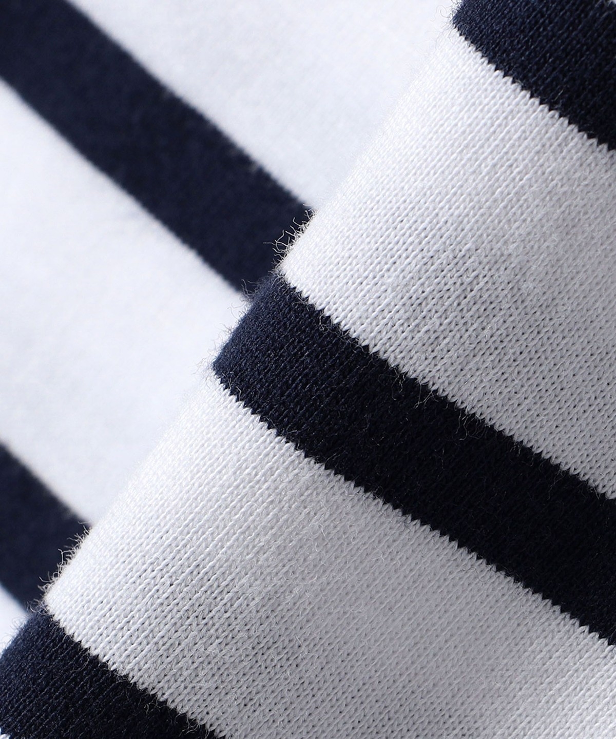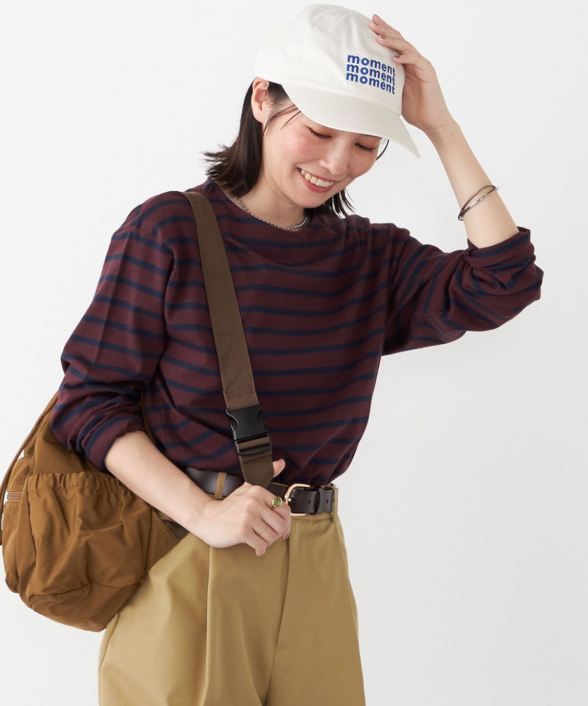 綺麗なツヤのある綿素材を使用し、首回りもボートネックのすっきりとした印象で、女性らしいカジュアルスタイルを演出します。