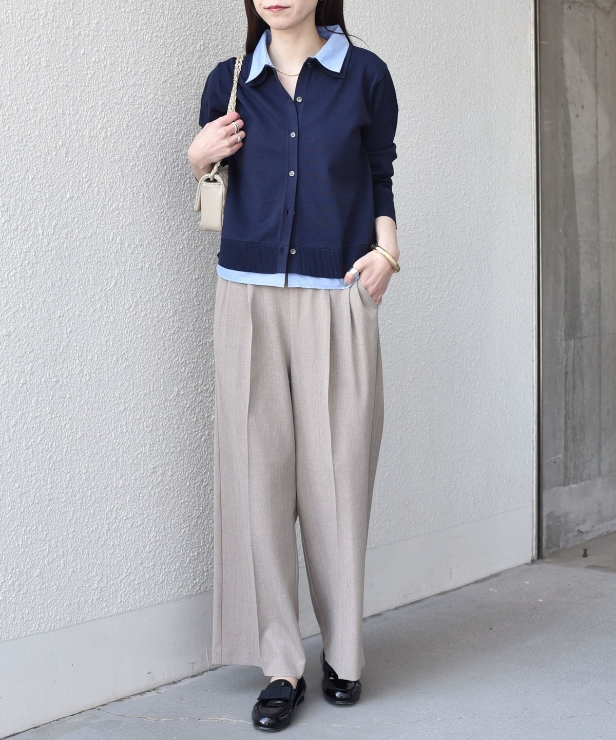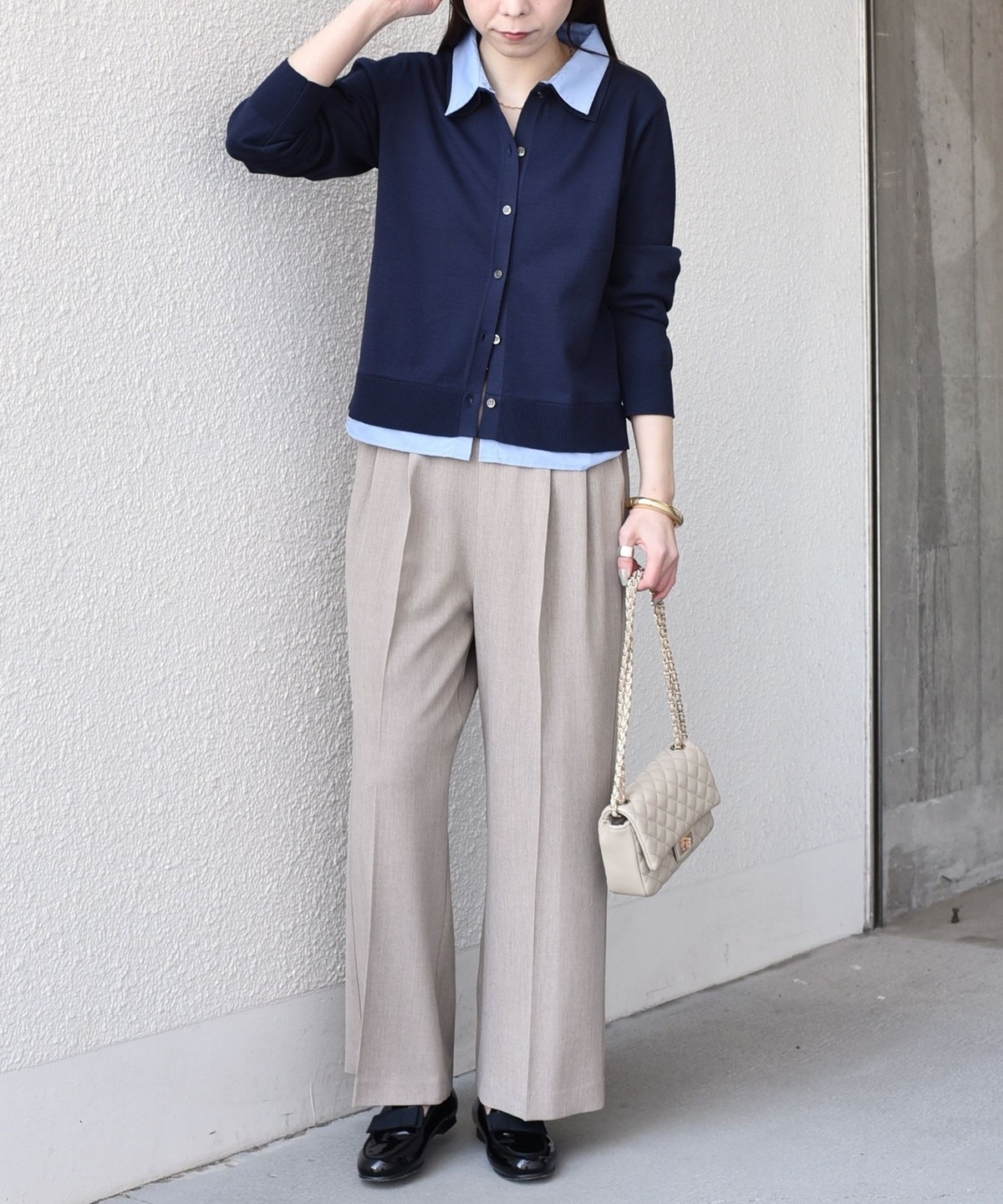 きれいめなスラックスとの合わせはきちんと感のある大人スタイルに。