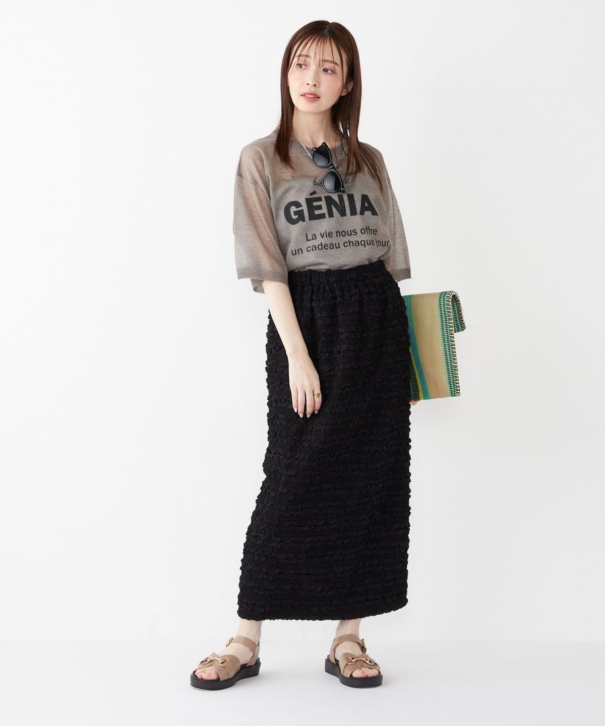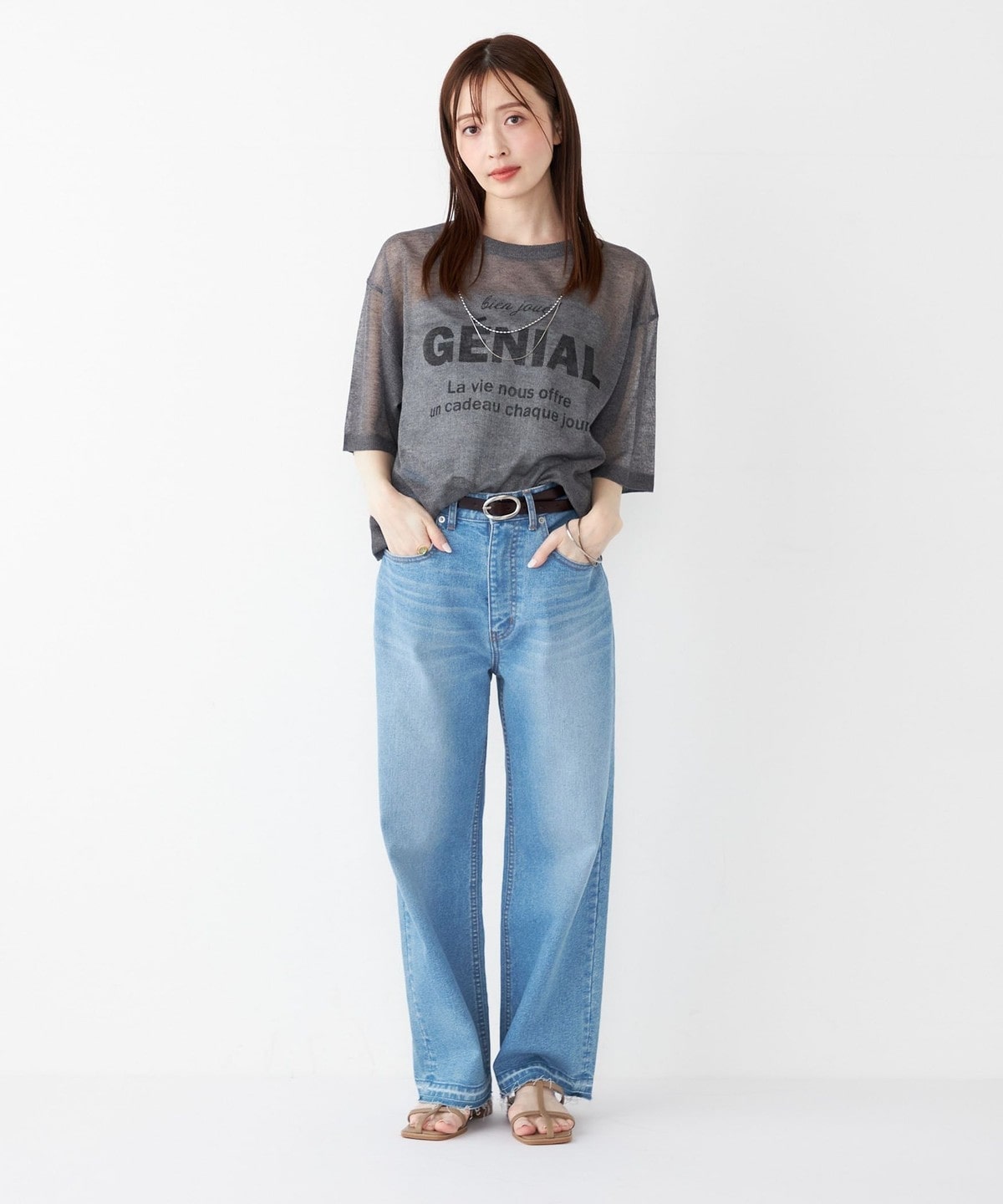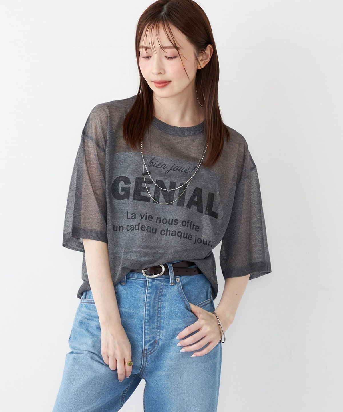 ロゴTシャツのようにラフに着られる、程よい透け感が魅力のシアーニット。