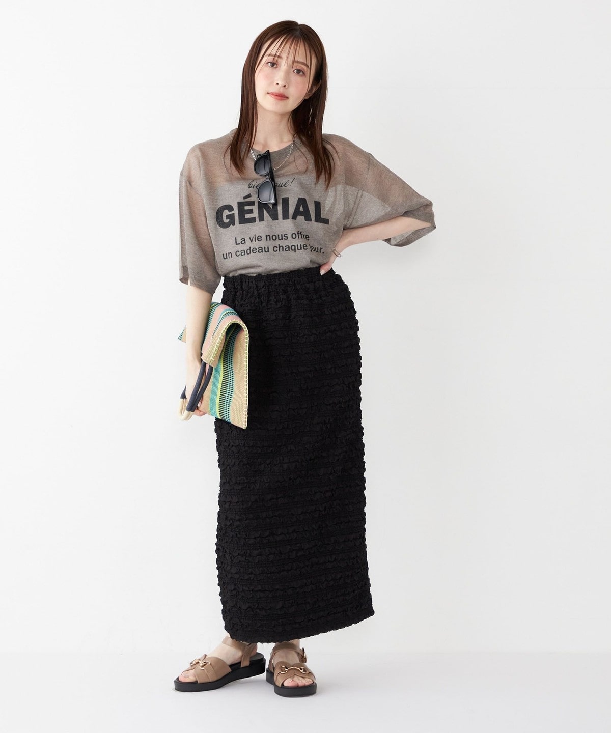 シアー感が女性らしさを引き立て、カジュアルスタイルに抜け感を加えます。