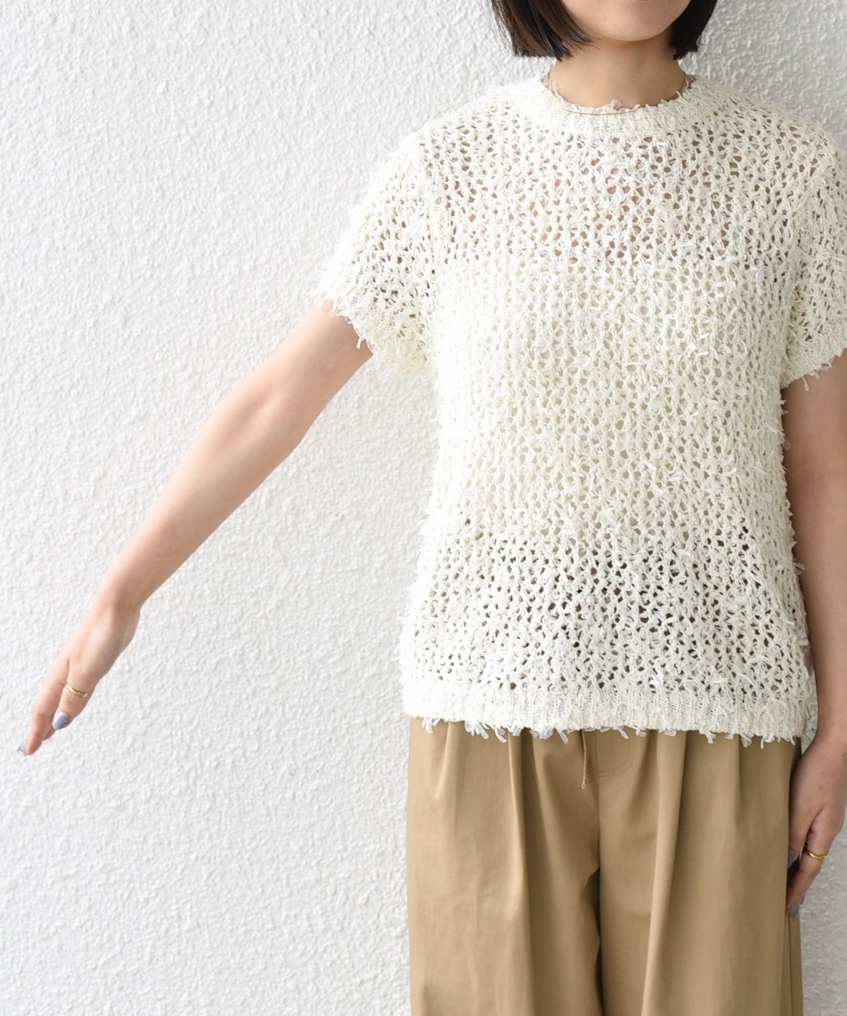SHIPS Colors:〈手洗い可能〉チュールヤーン ミックス ショートスリーブ ニット