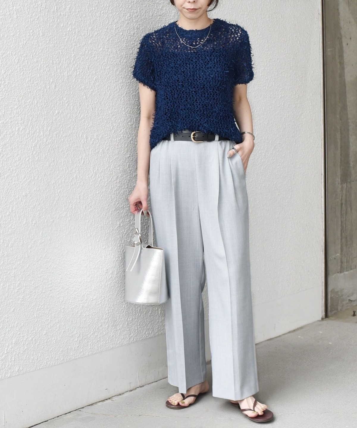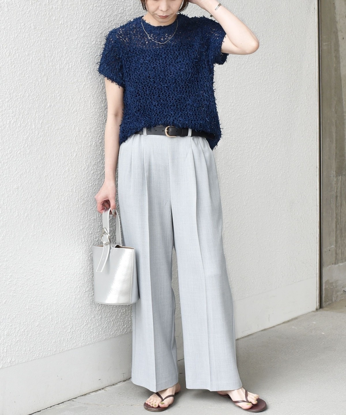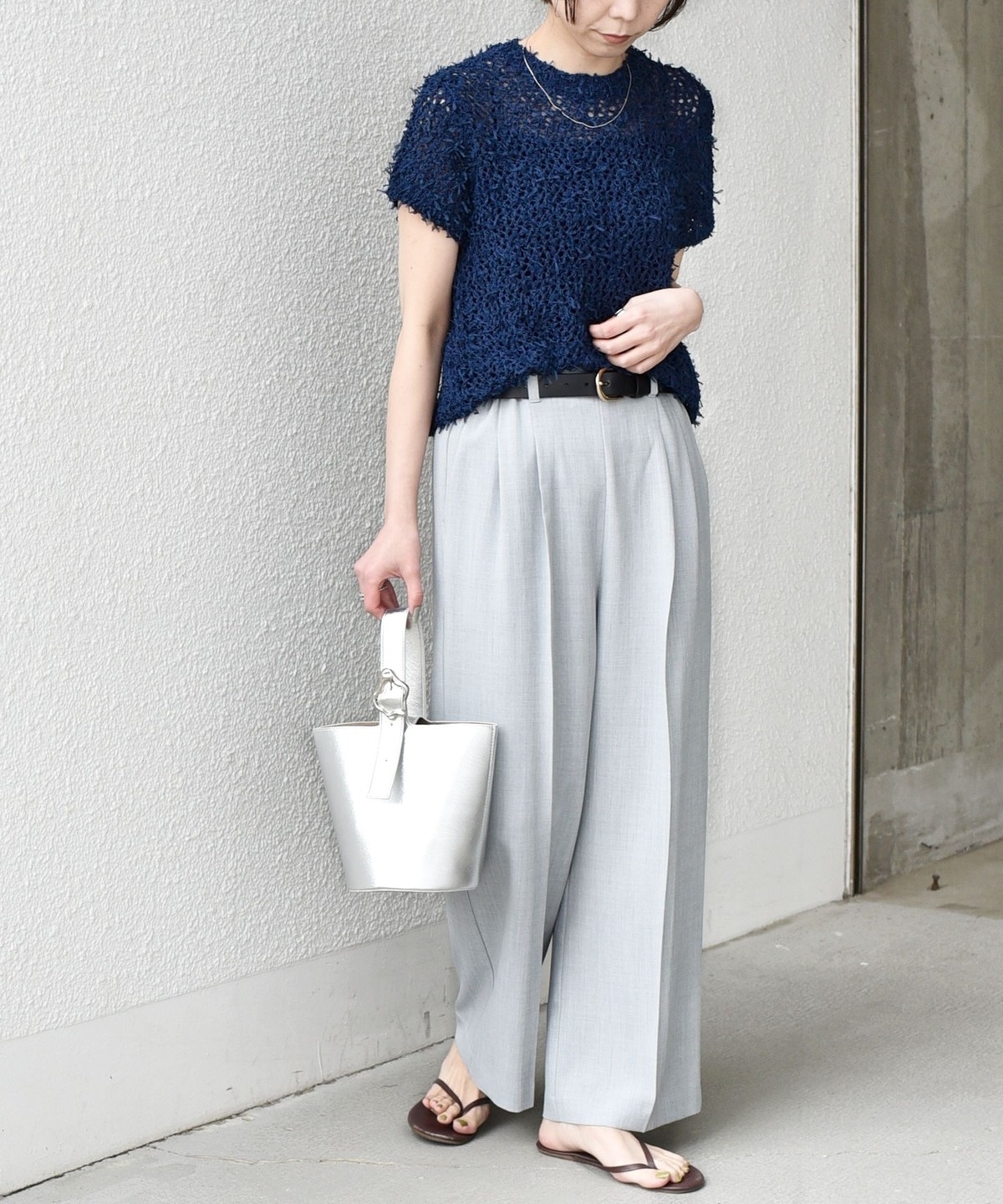 メッシュのような大きめの編地とややシャリ感のある肌触りで、通気性が良く涼しげに着用いただけます。