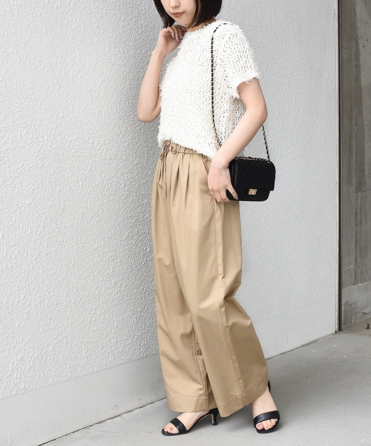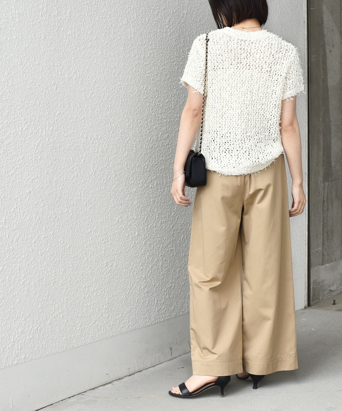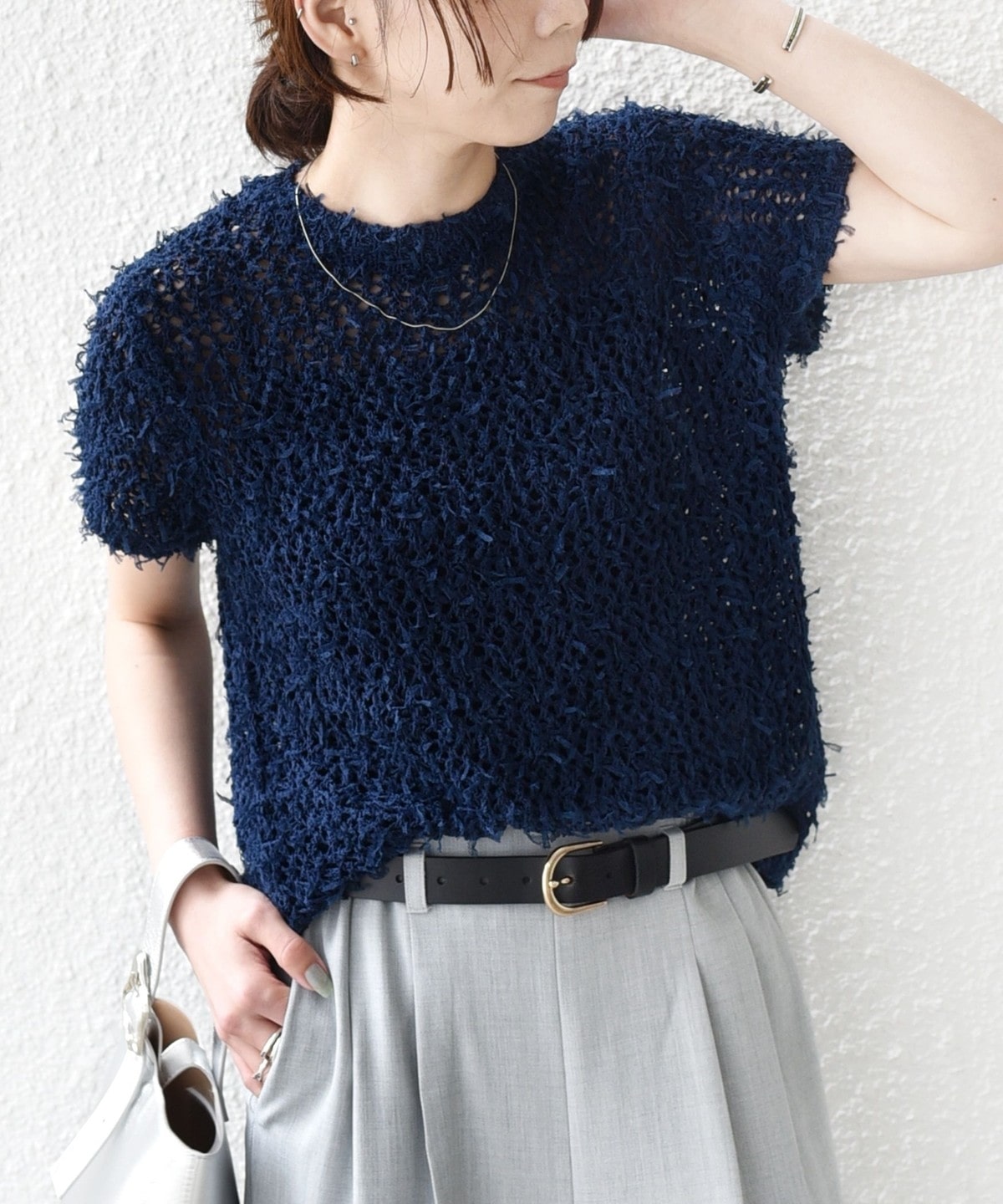 凹凸感のある編地が、スタイリングのアクセントになるショートスリーブニット。