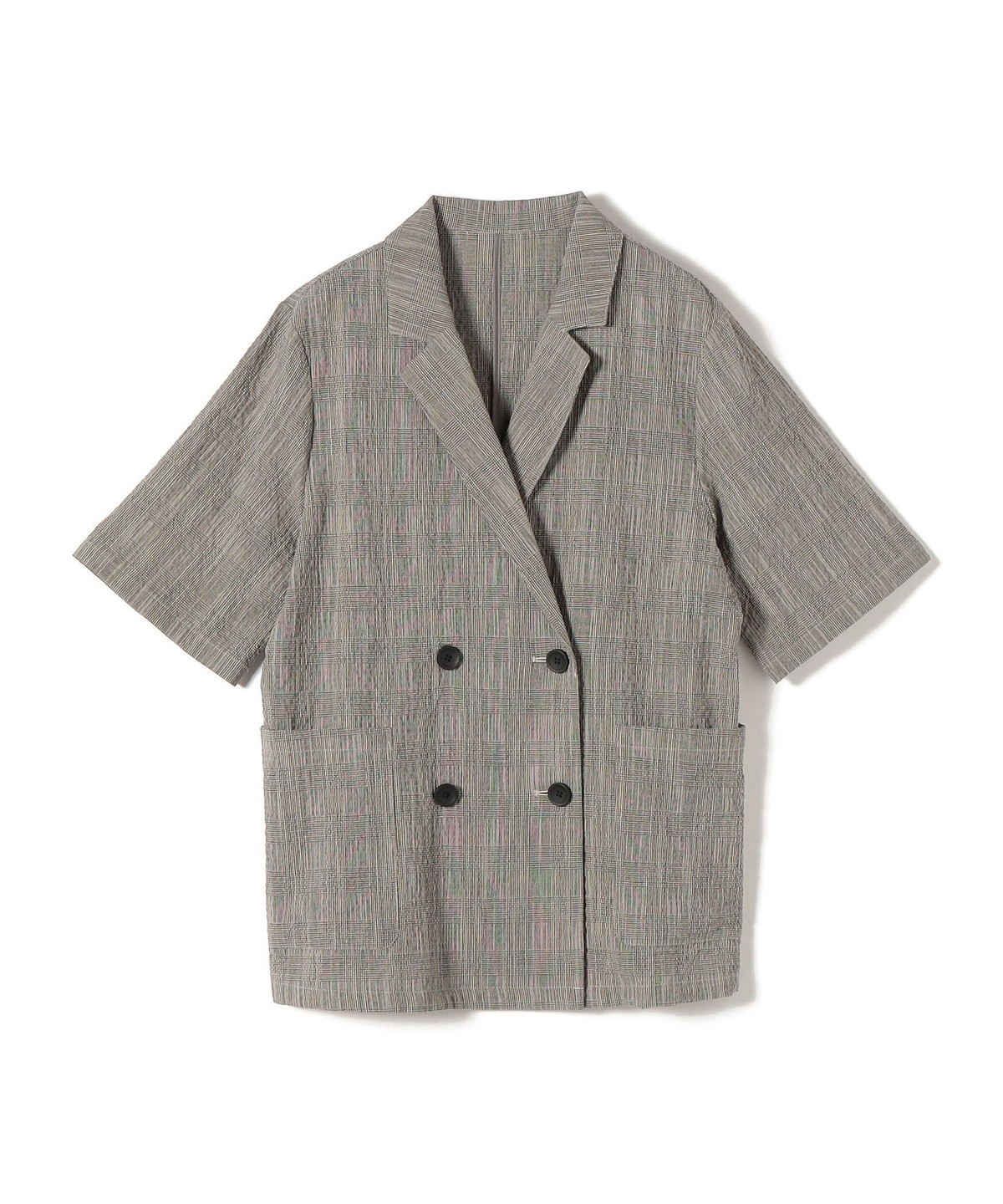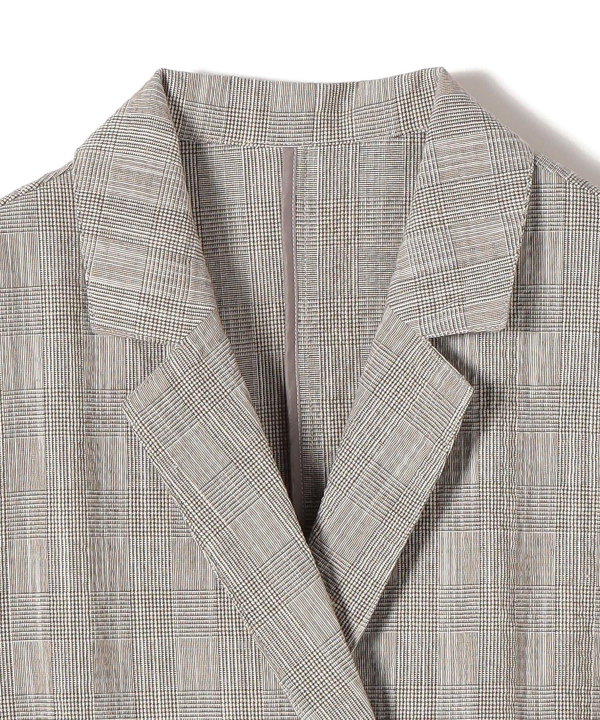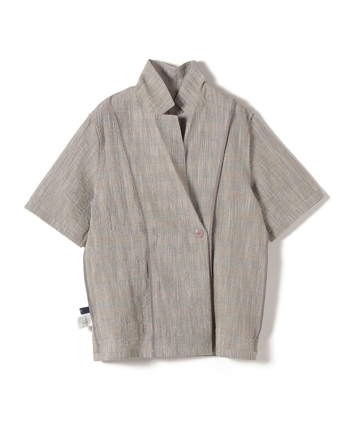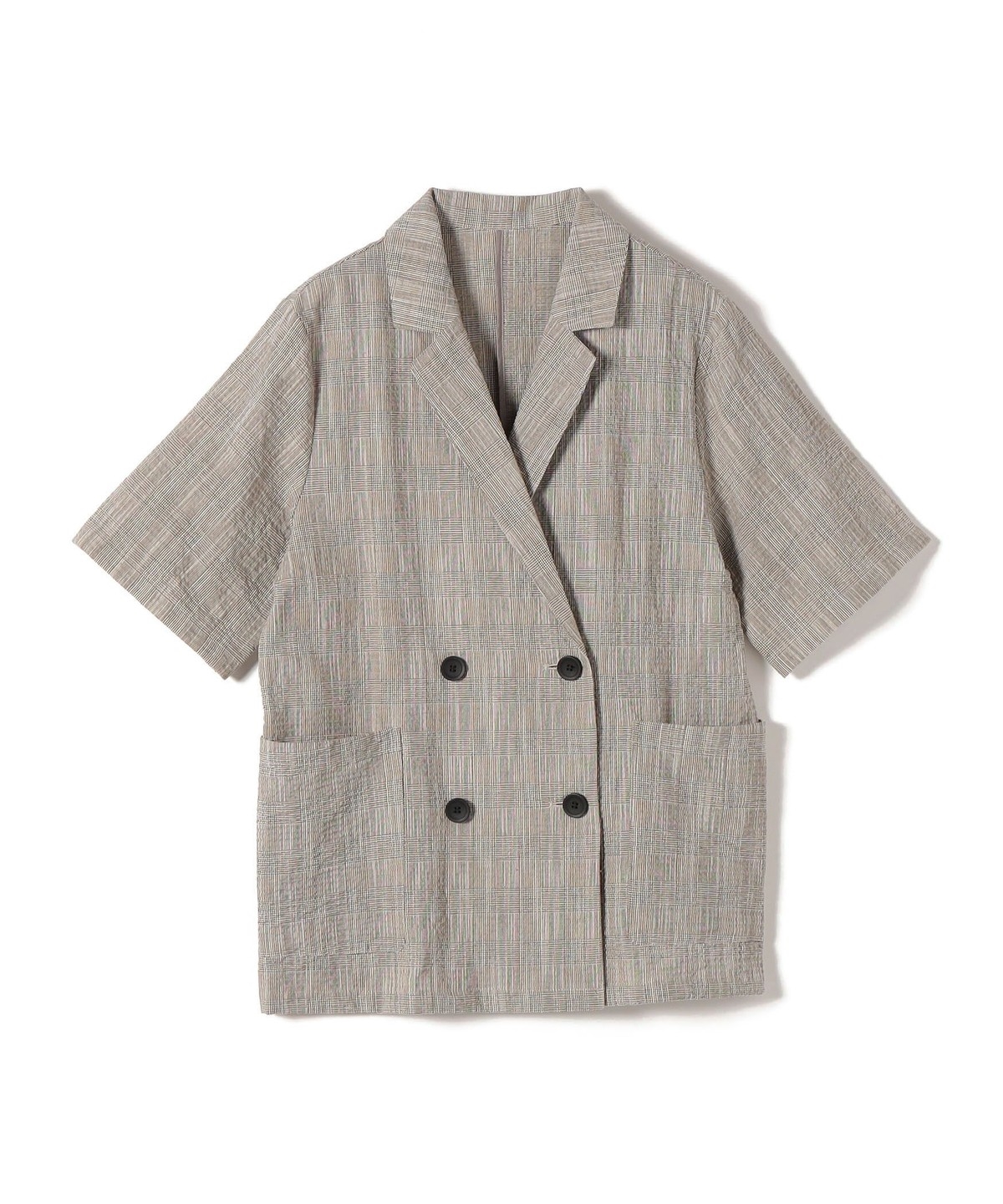 表面感のあるチェック柄生地が特徴の半袖ジャケット。
