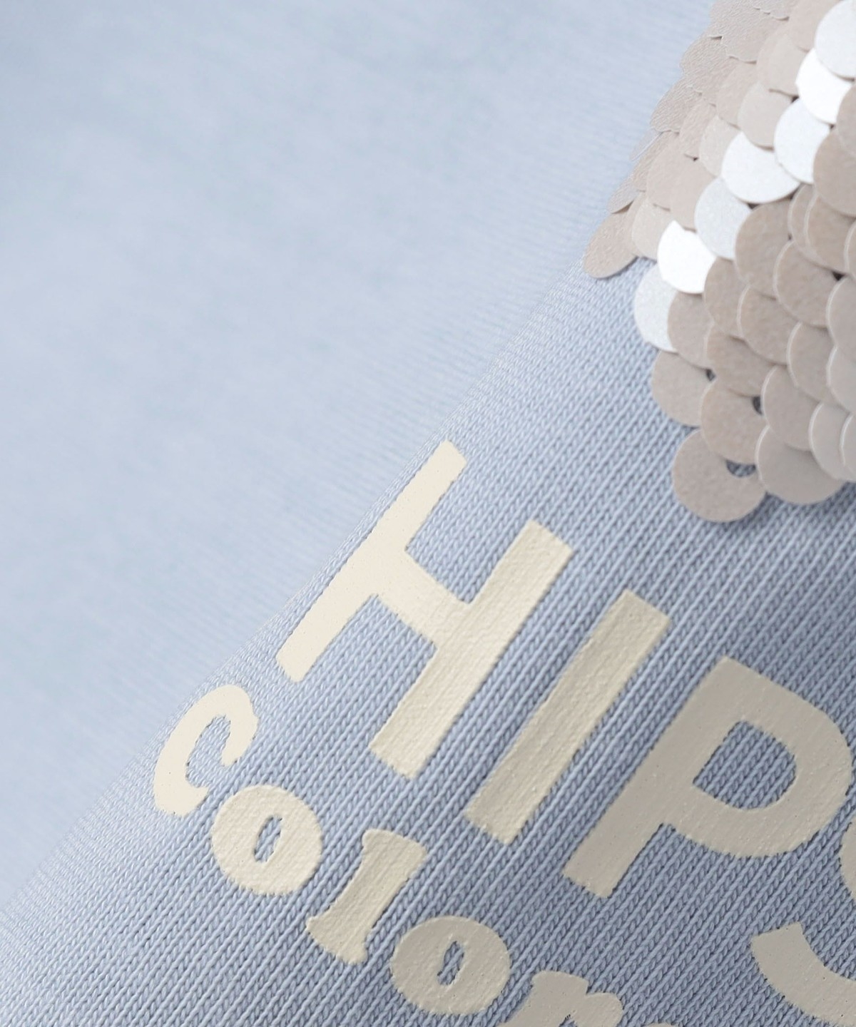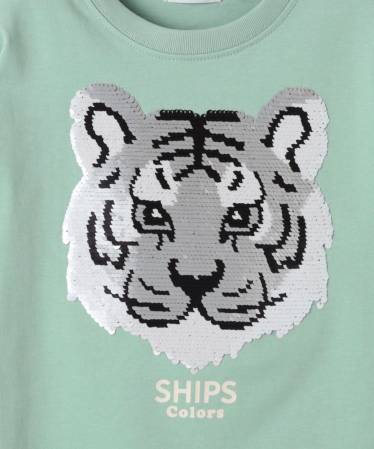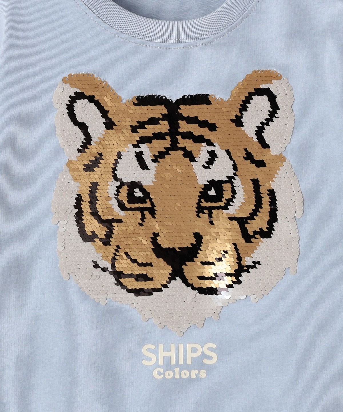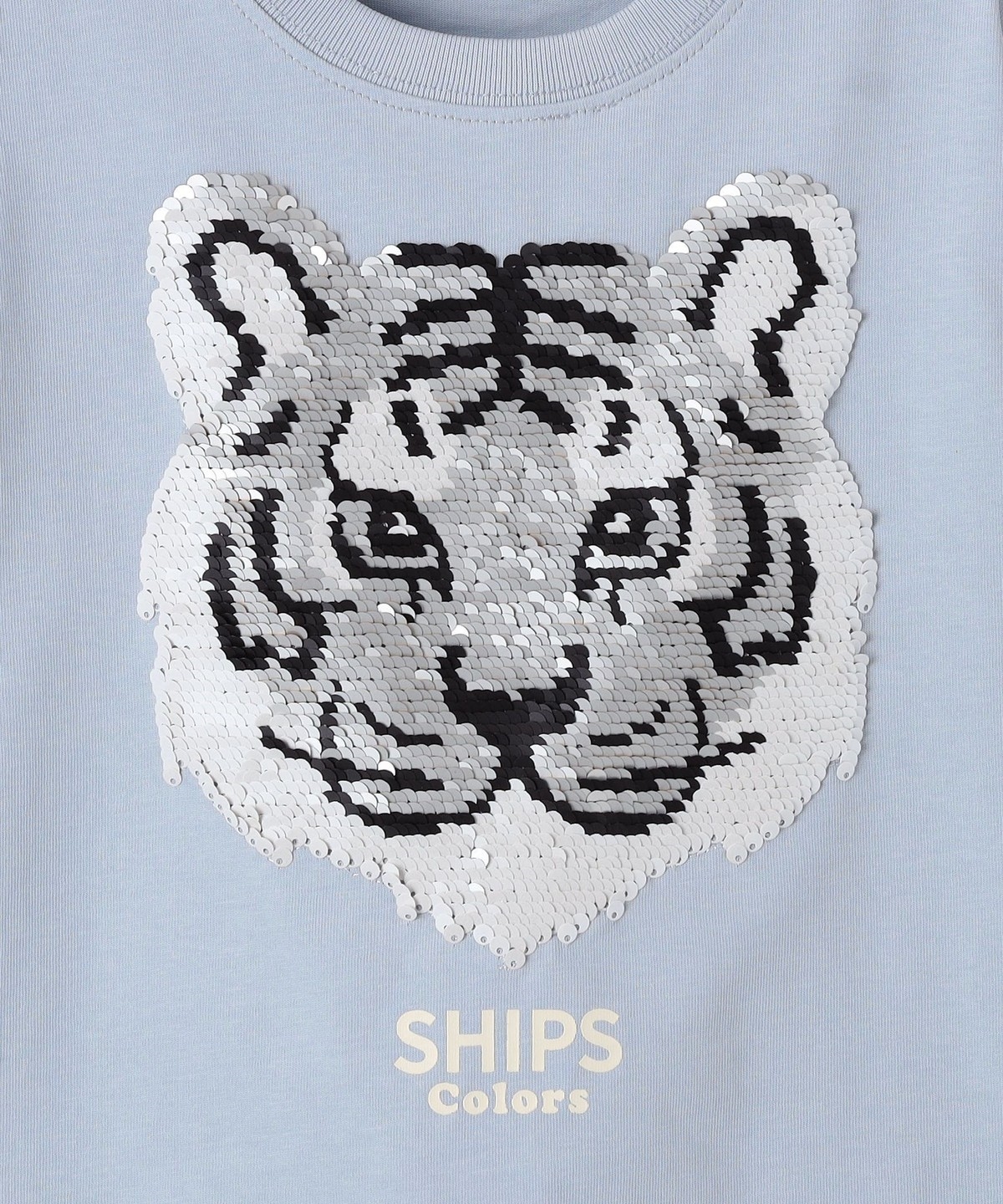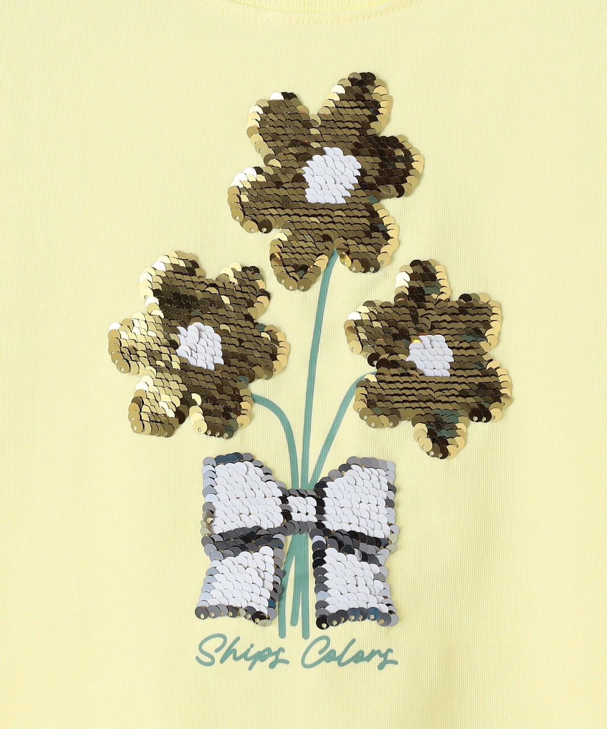スパンコールの向きによってデザインのカラーが変化する、遊び心のあるカットソー。