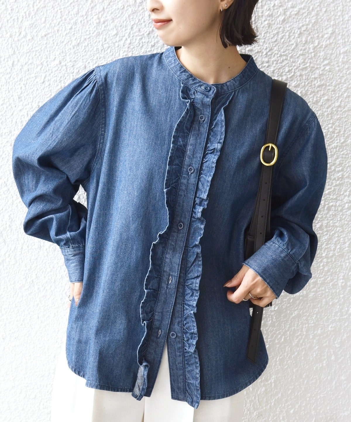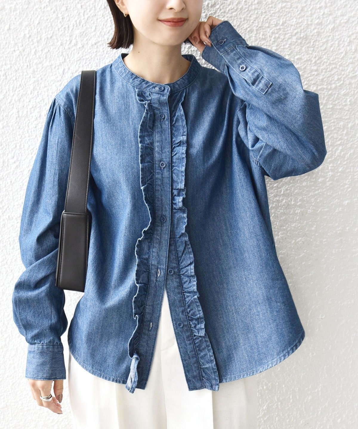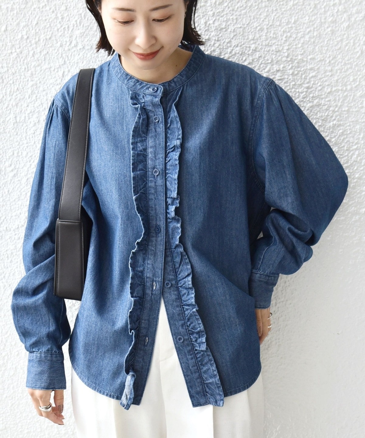 デニム素材×フリルで甘くなりすぎない大人のデニムシャツ