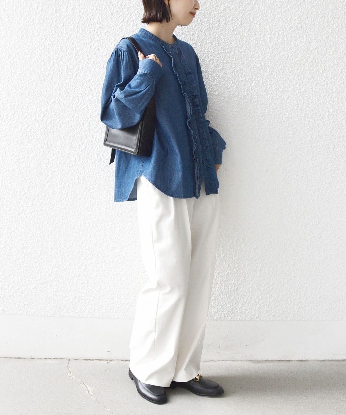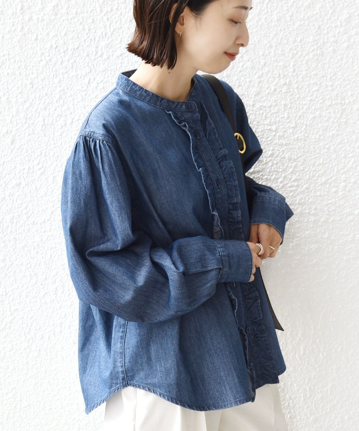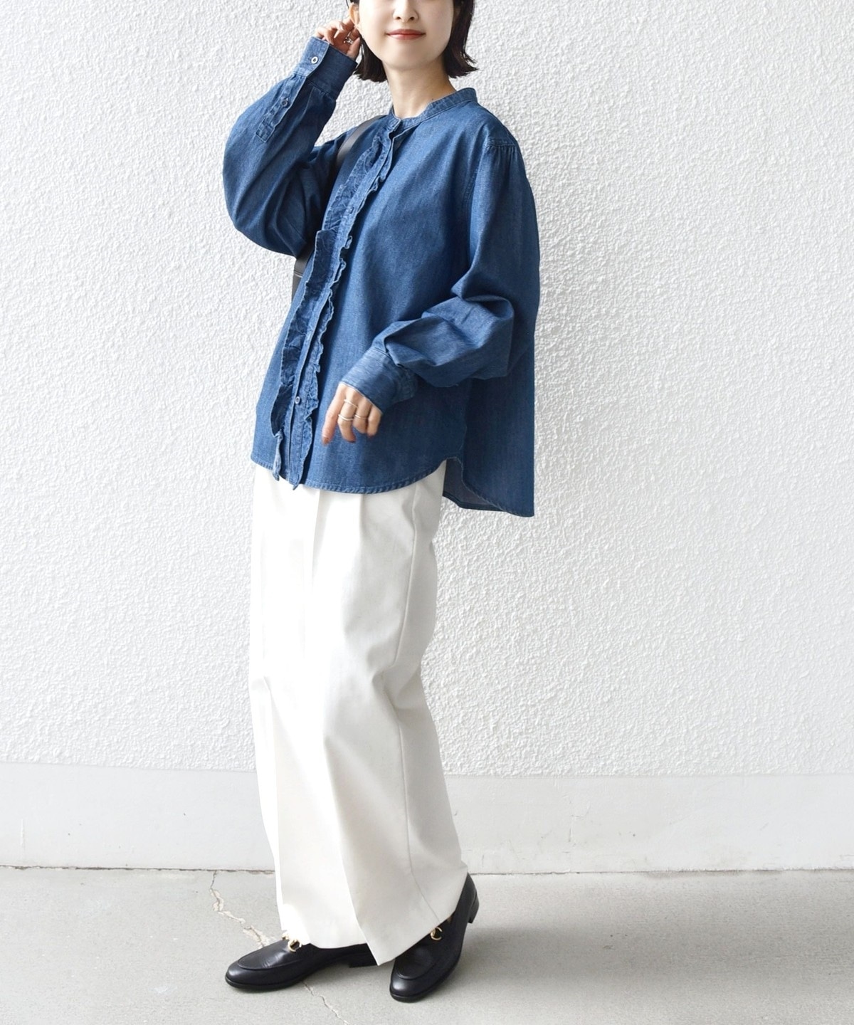 デニム素材×フリルで甘くなりすぎない大人のデニムシャツ