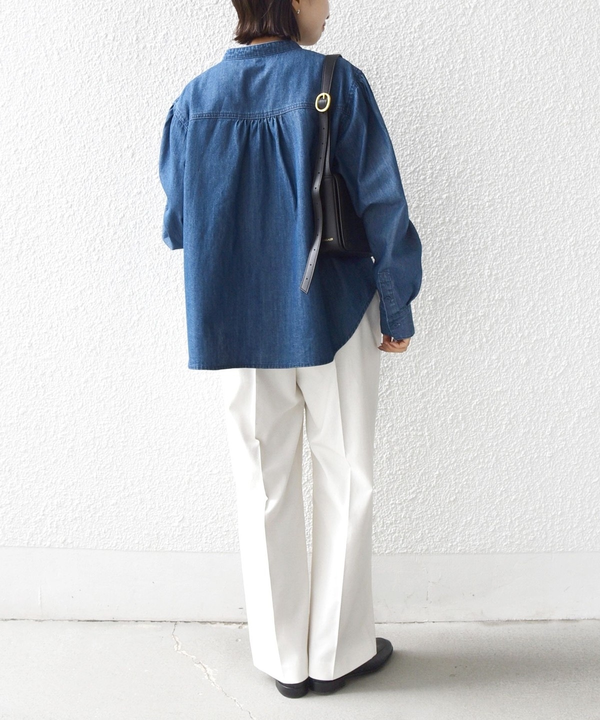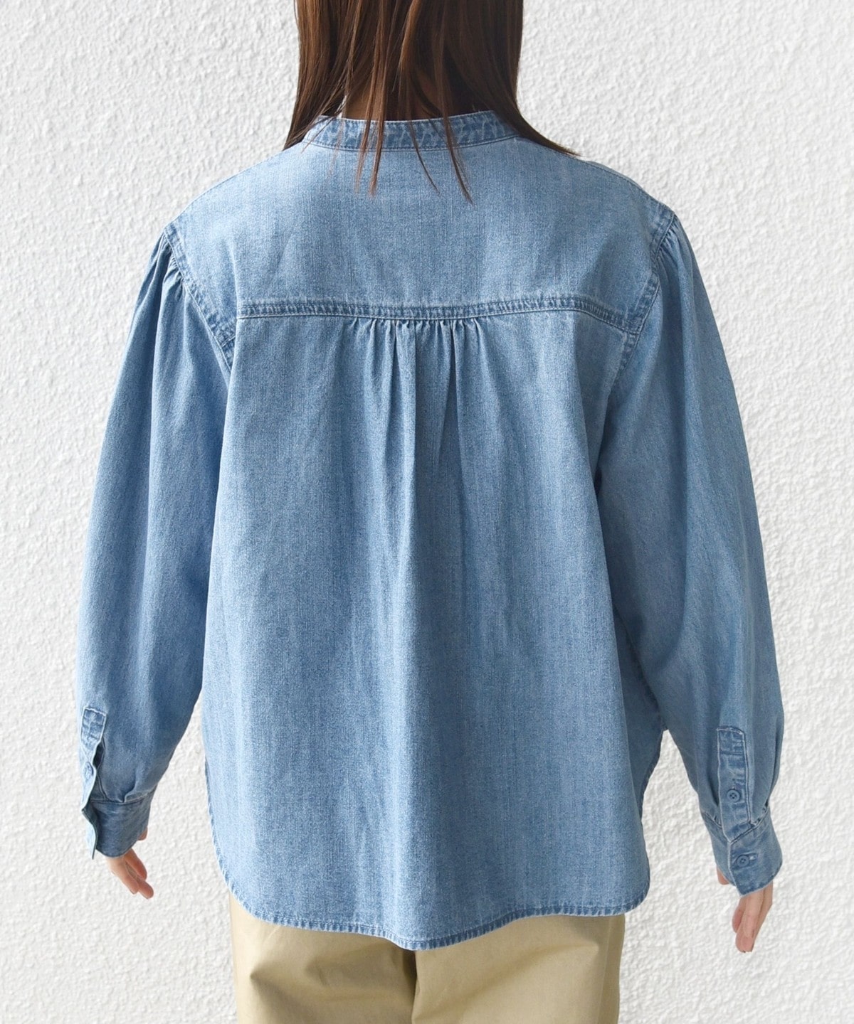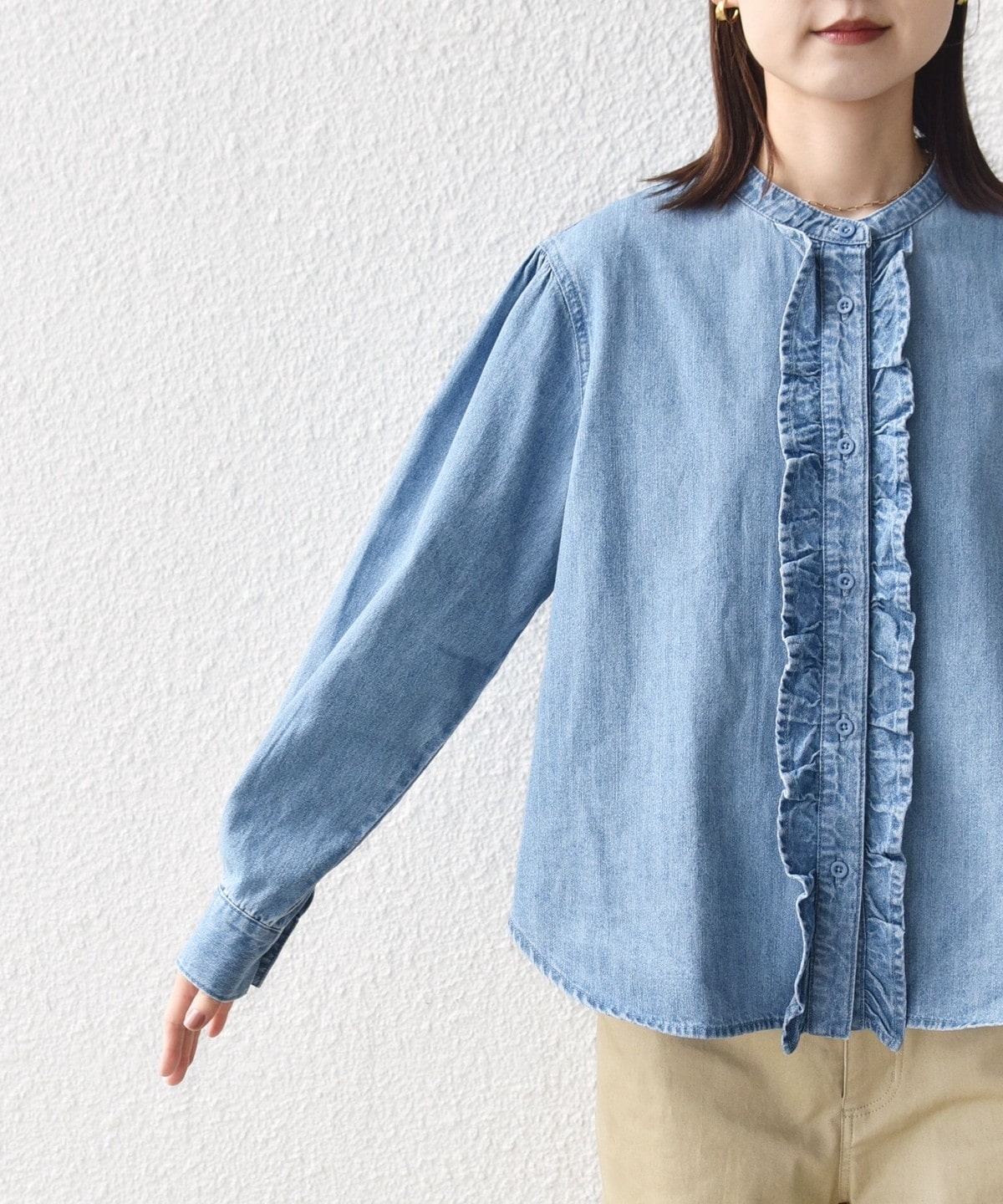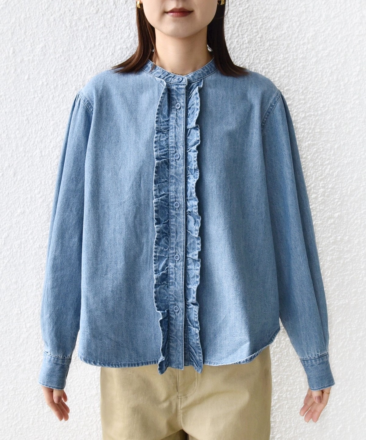 《追加予約》【WEB限定】〈洗濯機可能〉ライトオンス フリル デニム シャツ