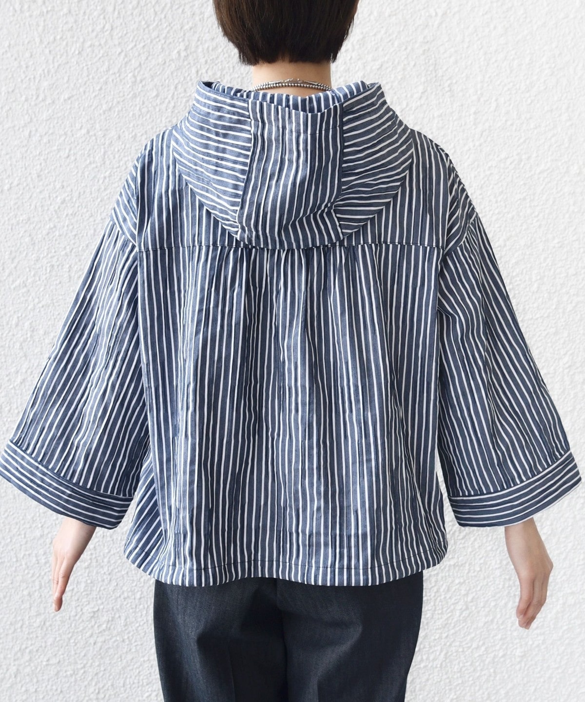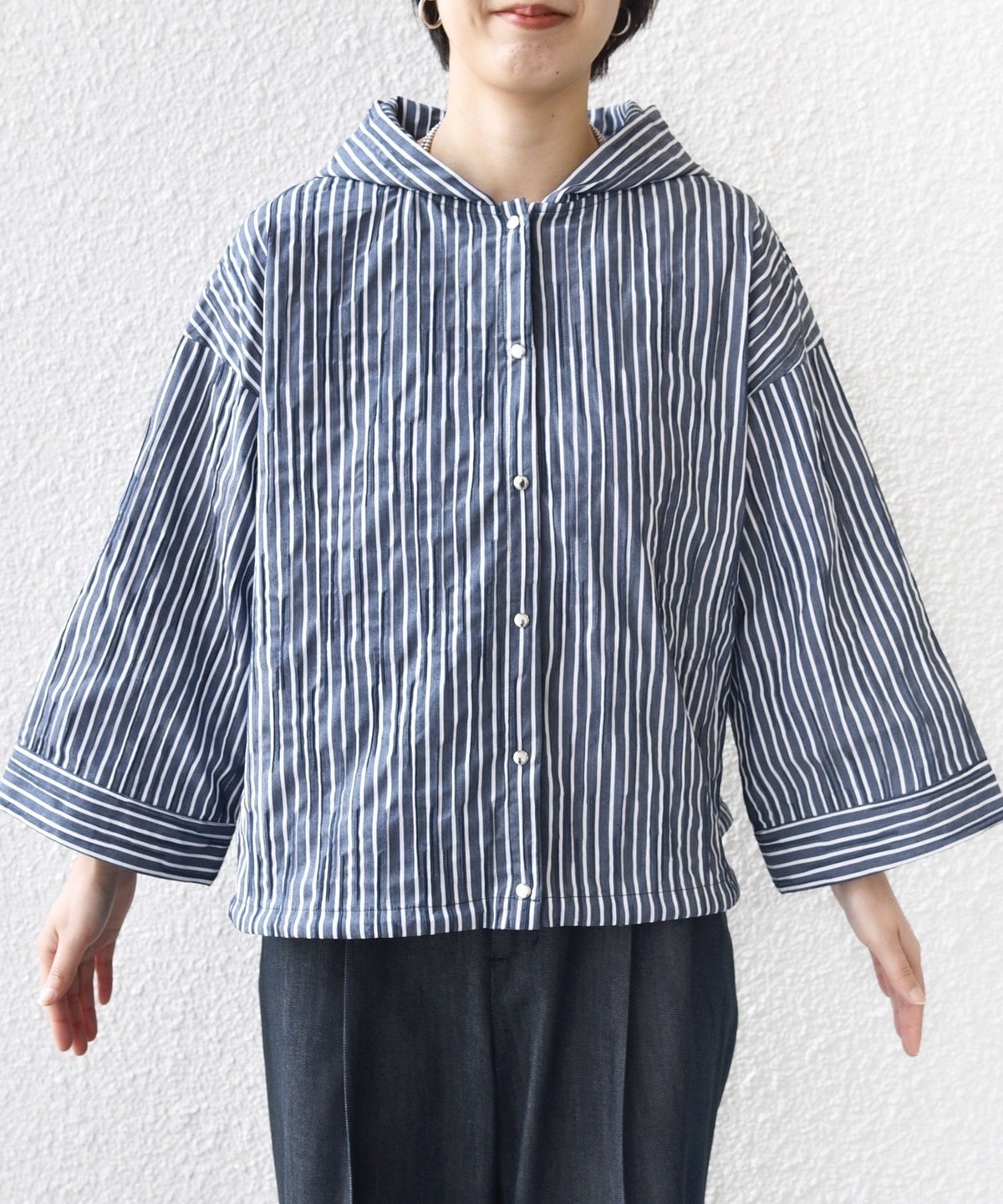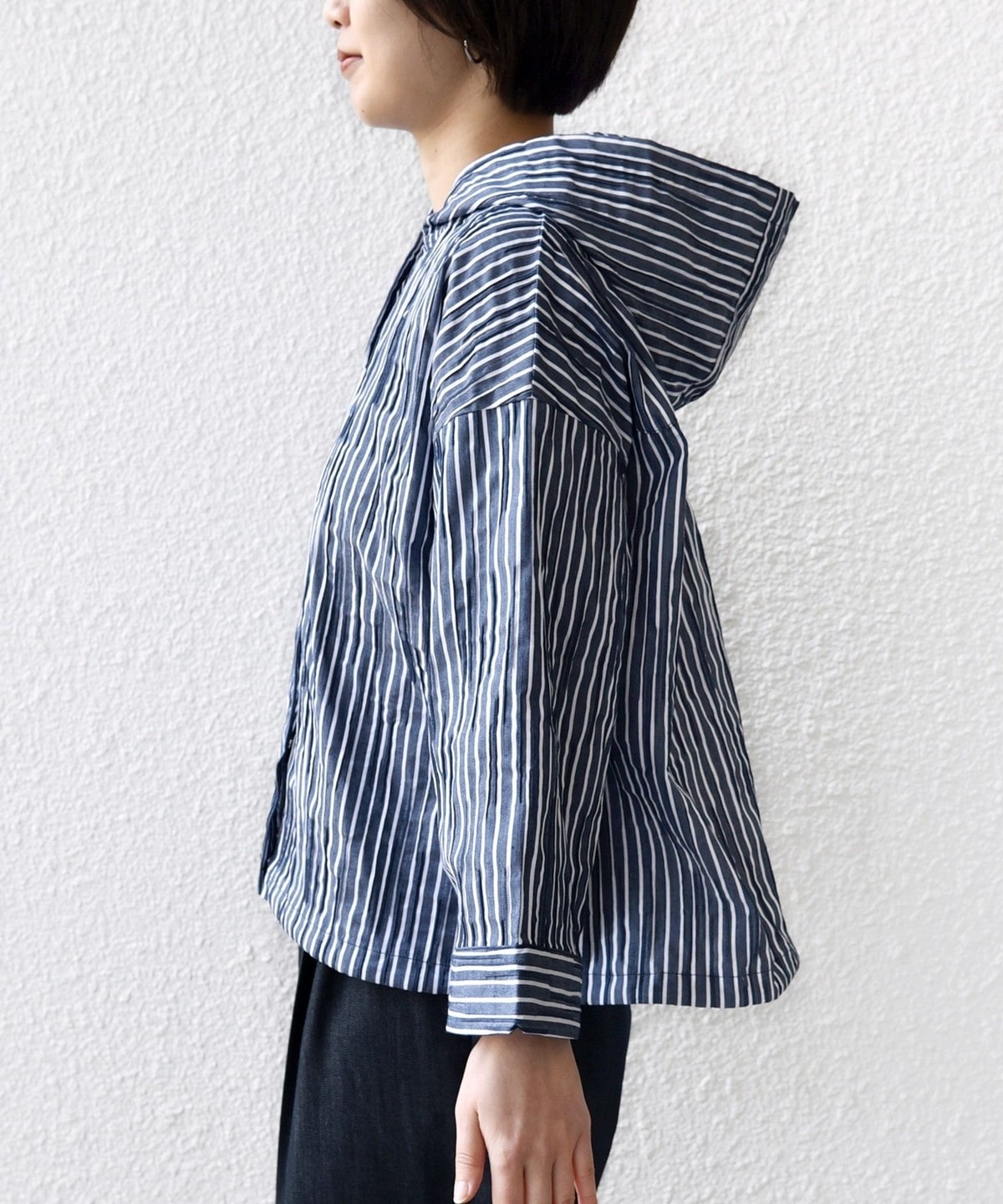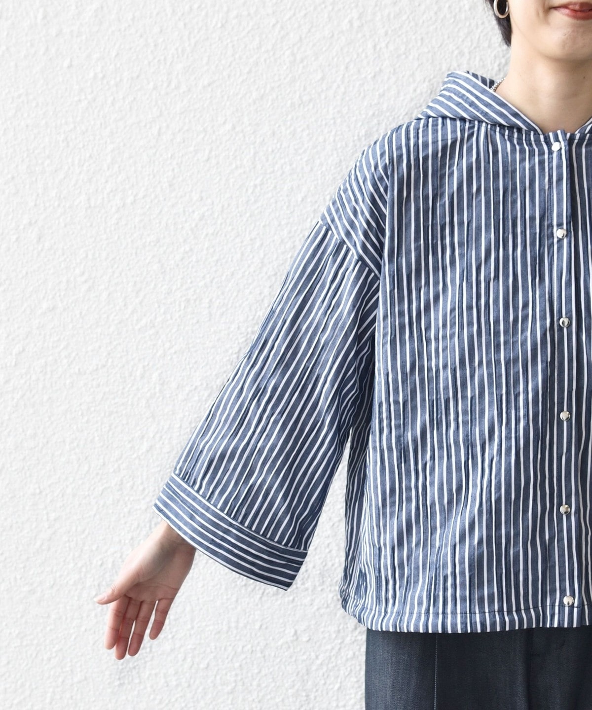 【WEB限定】〈手洗い可能〉ストライプ フード 羽織り シャツ