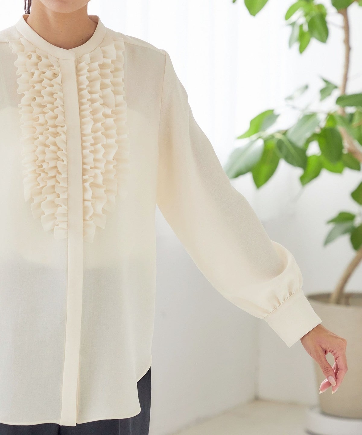 〈洗濯機可能〉ポリエステル カルゼ フリル ブラウス